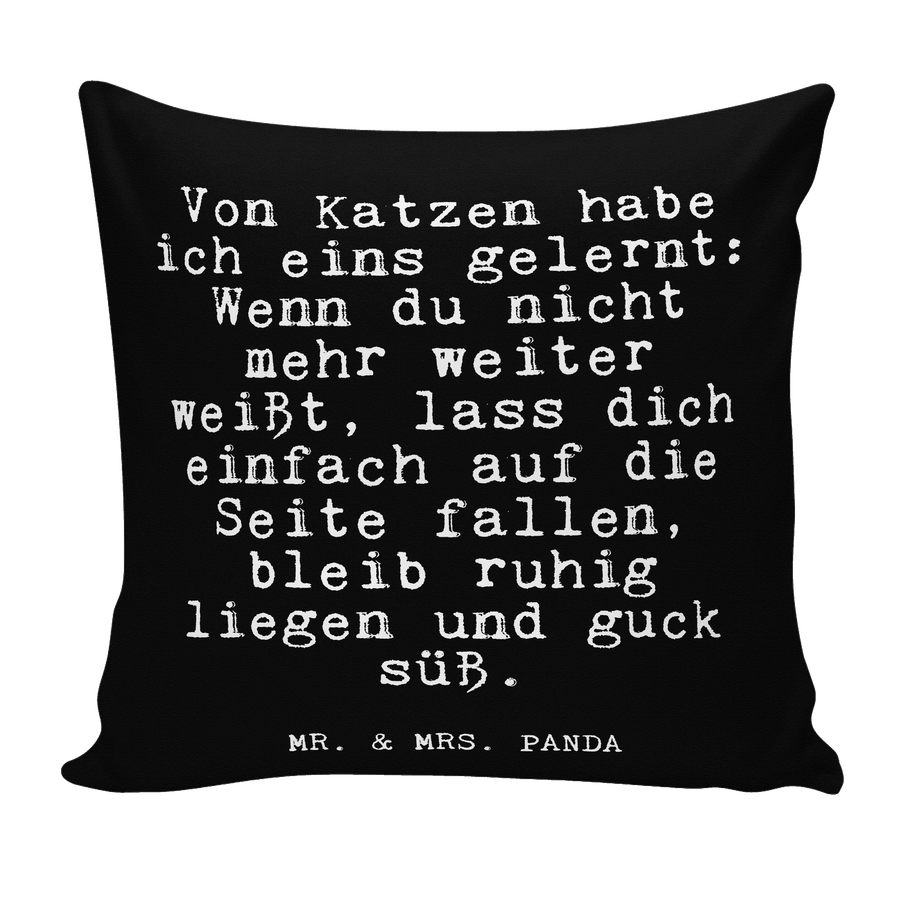 40x40 Kissen Fun Talk Von Katzen habe ich eins gelernt: Wenn du nicht mehr weiter weißt, lass dich einfach auf die Seite fallen, bleib ruhig liegen und guck süß.