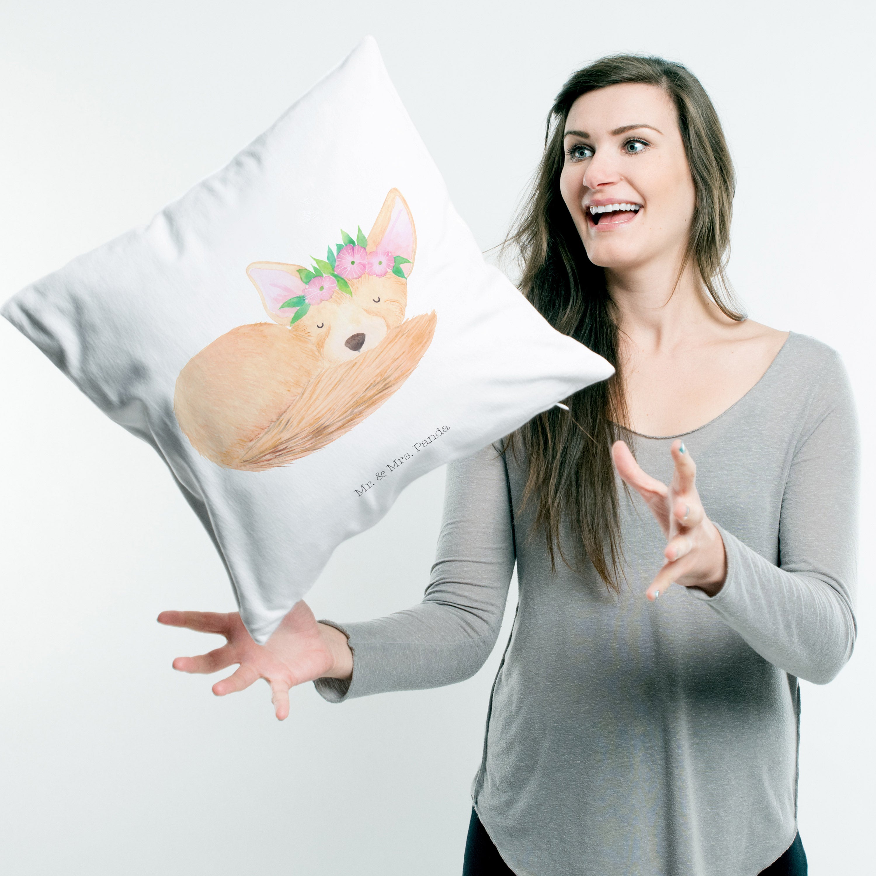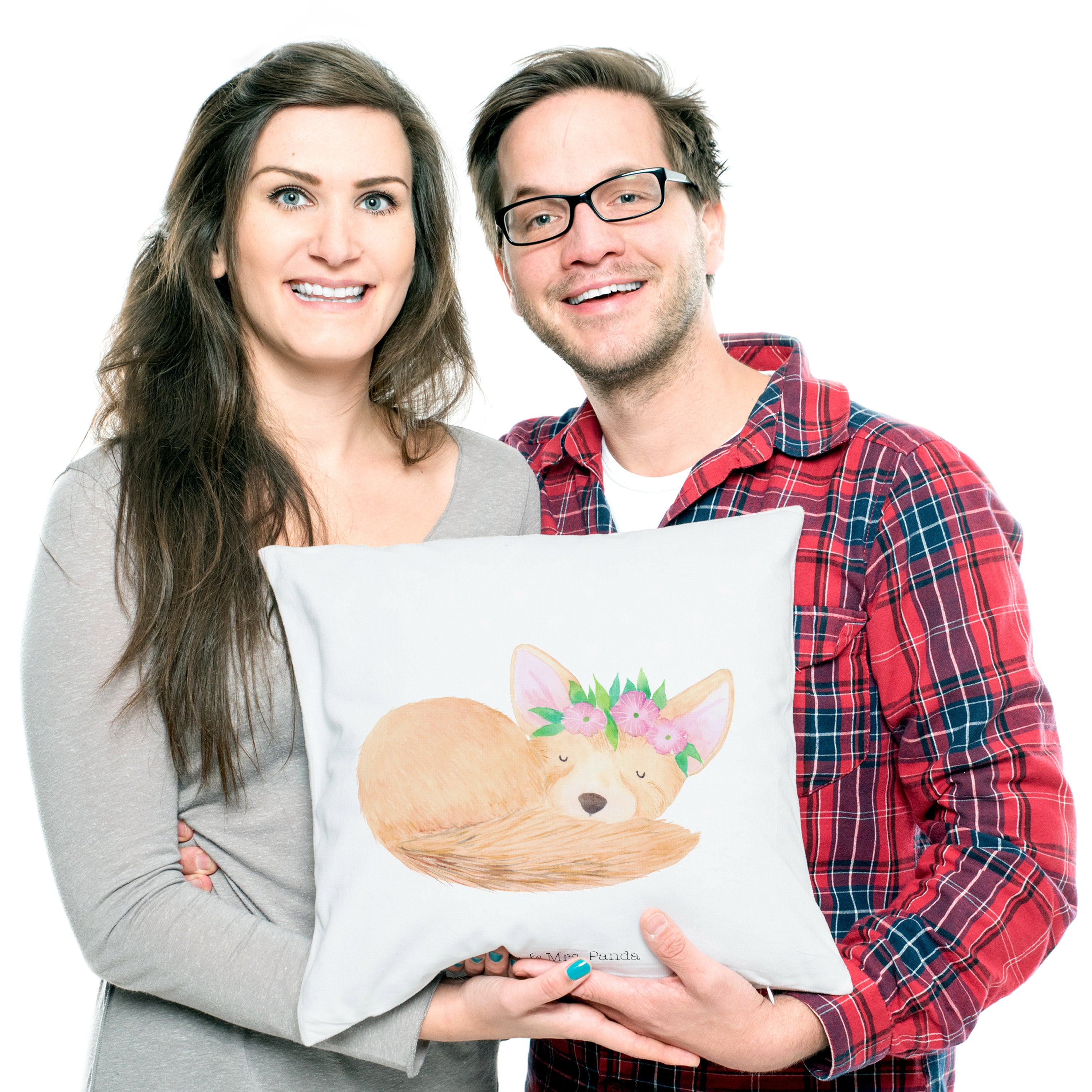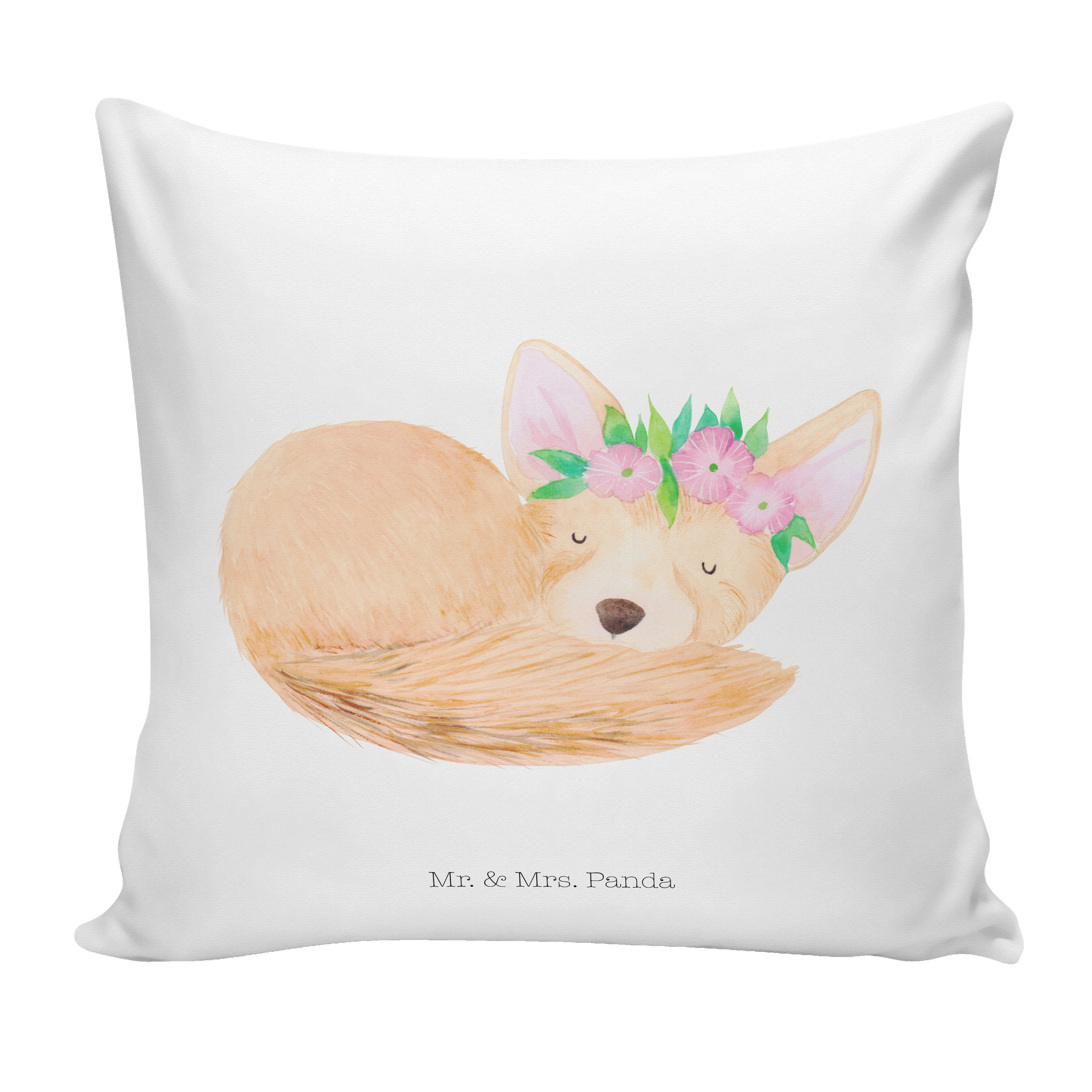 40x40 Kissen Wüstenfuchs Blumenkranz Kissenhülle, Kopfkissen, Sofakissen, Dekokissen, Motivkissen, Afrika, Wildtiere, Wüste, Wüstenfuchs, Blumen, Blumenkranz, Glücklich
