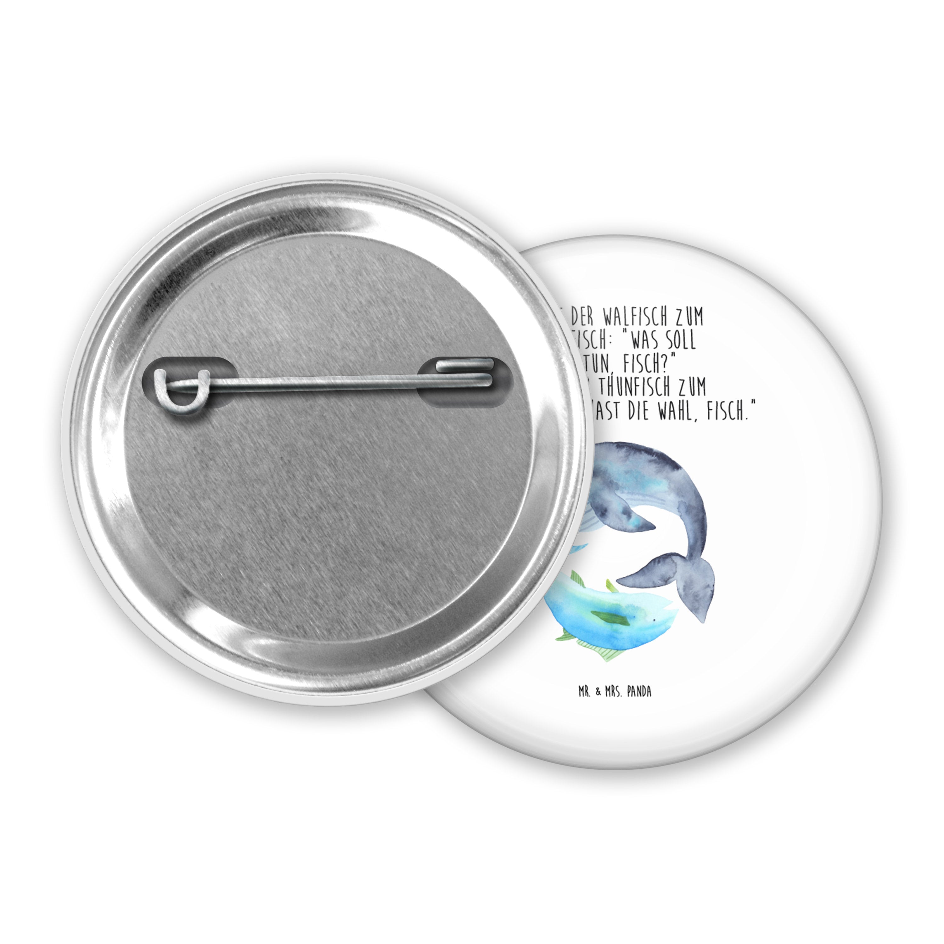 50mm Button Walfisch & Thunfisch - mit Spruch - Weiß