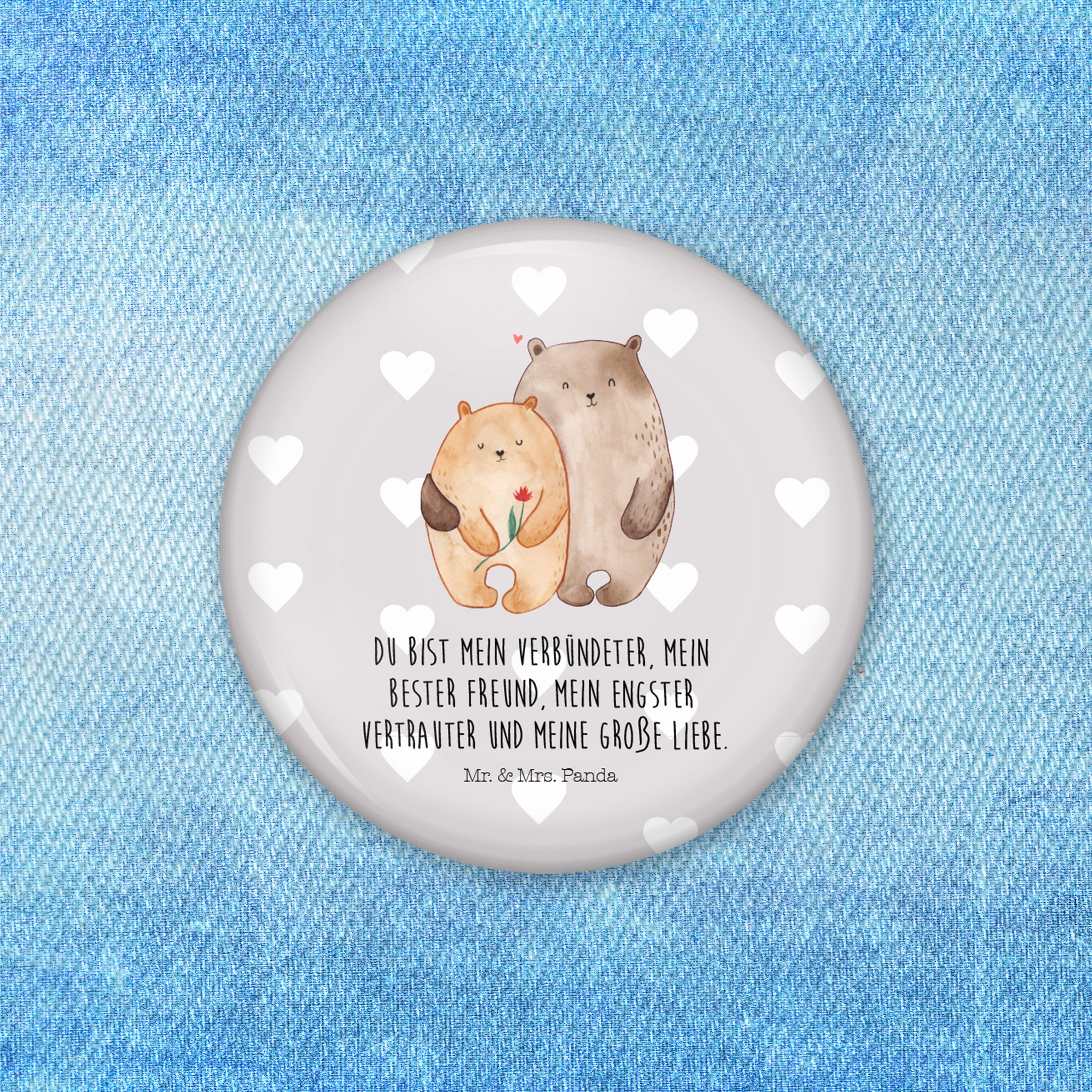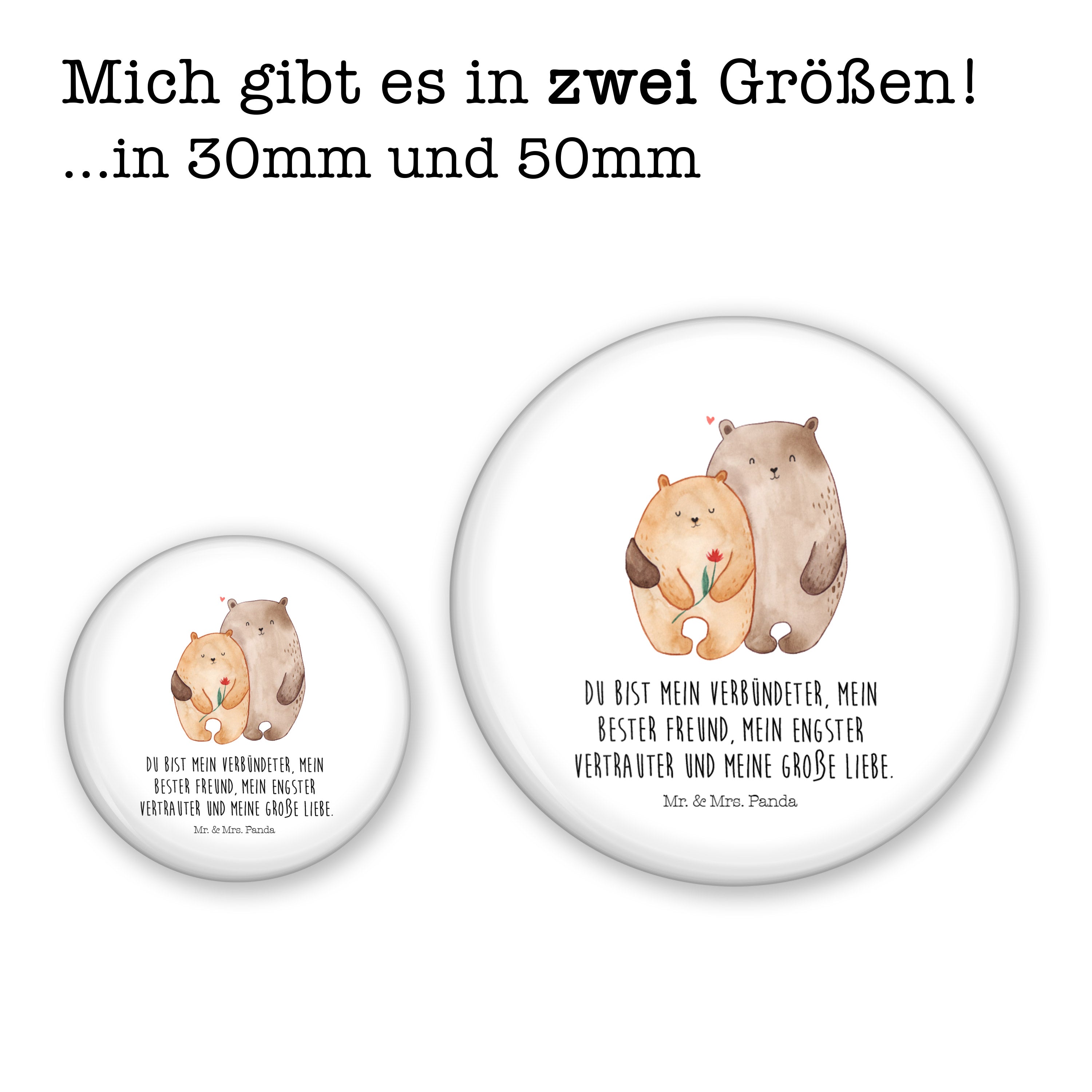 50mm Button Bären Liebe - mit Spruch - Weiß