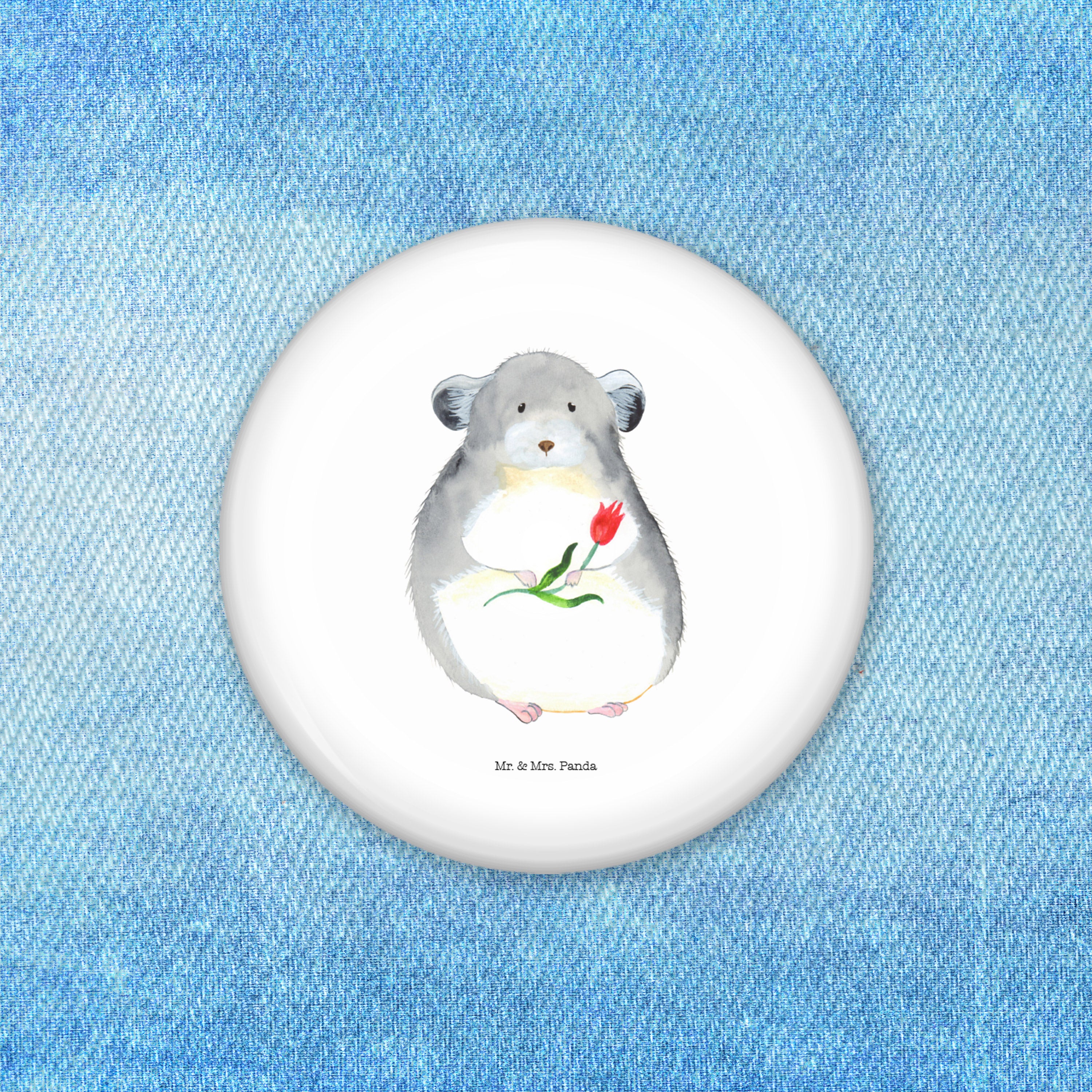 50mm Button Chinchilla mit Blume - mit Spruch - Weiß