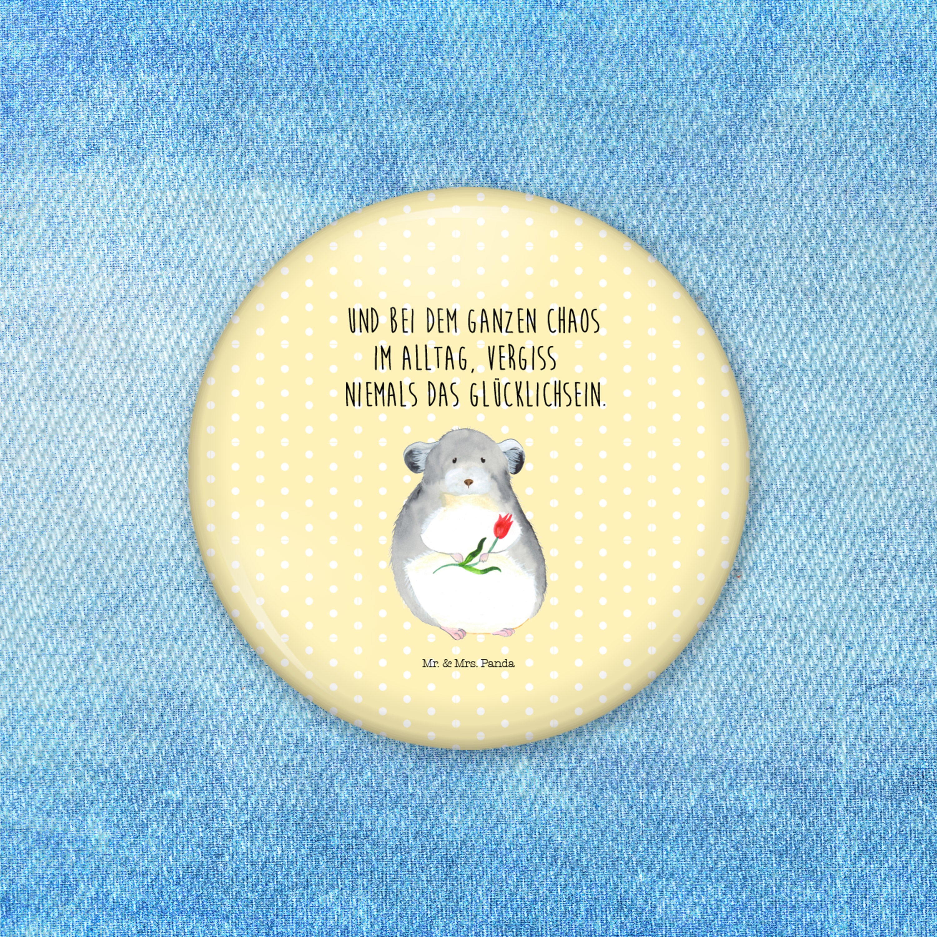 Du kannst dich dem niedlichen Chinchilla nicht entziehen, der dich mit großen Augen und einem Blumenstrauß in der Hand anschaut. Schon allein sein flauschiges Fell und seine niedliche Nase strahlen pure Herzenswärme aus. Das Design "Chinchilla mit Blume" von Mr. & Mrs. Panda ist das perfekte Accessoire für alle Tierfreunde.