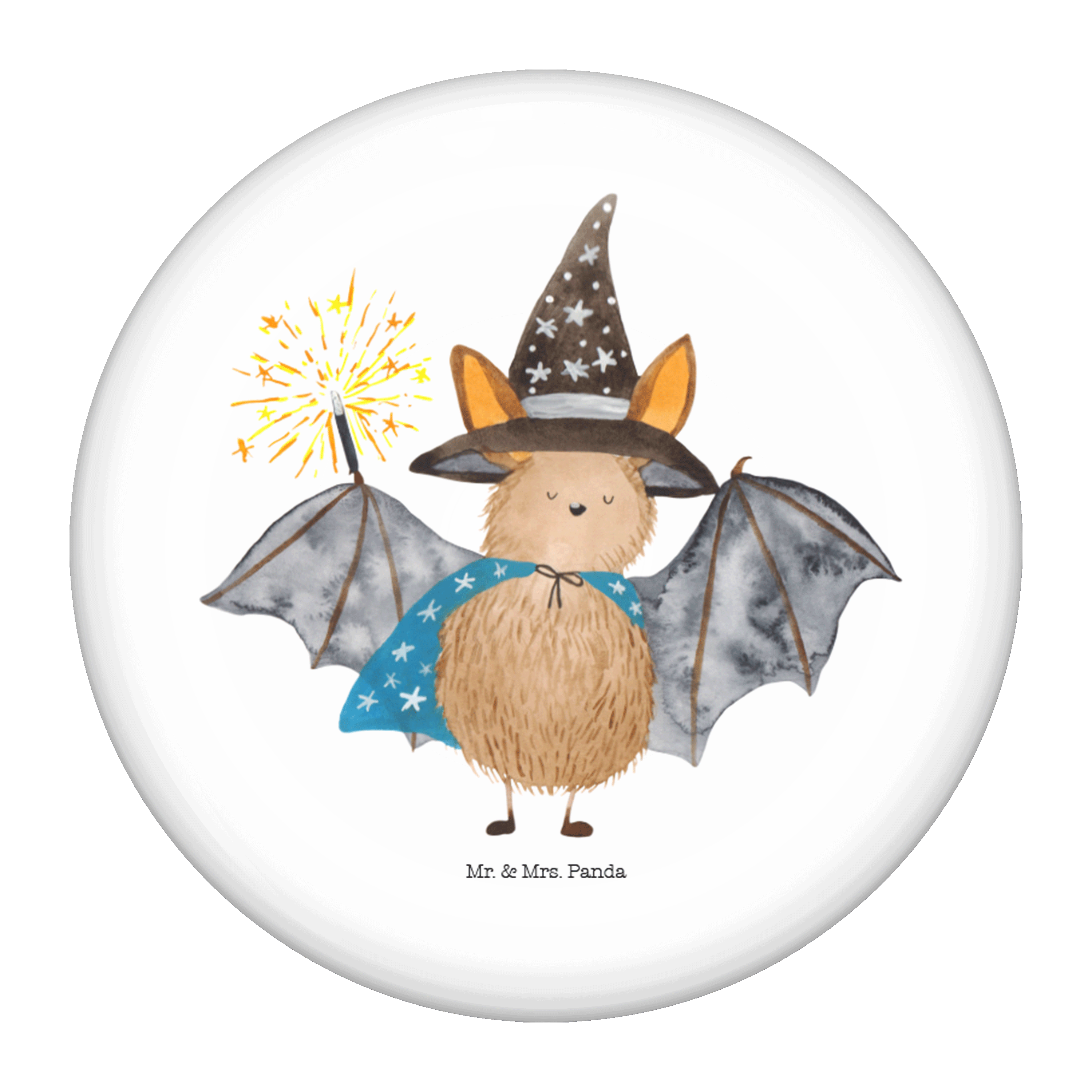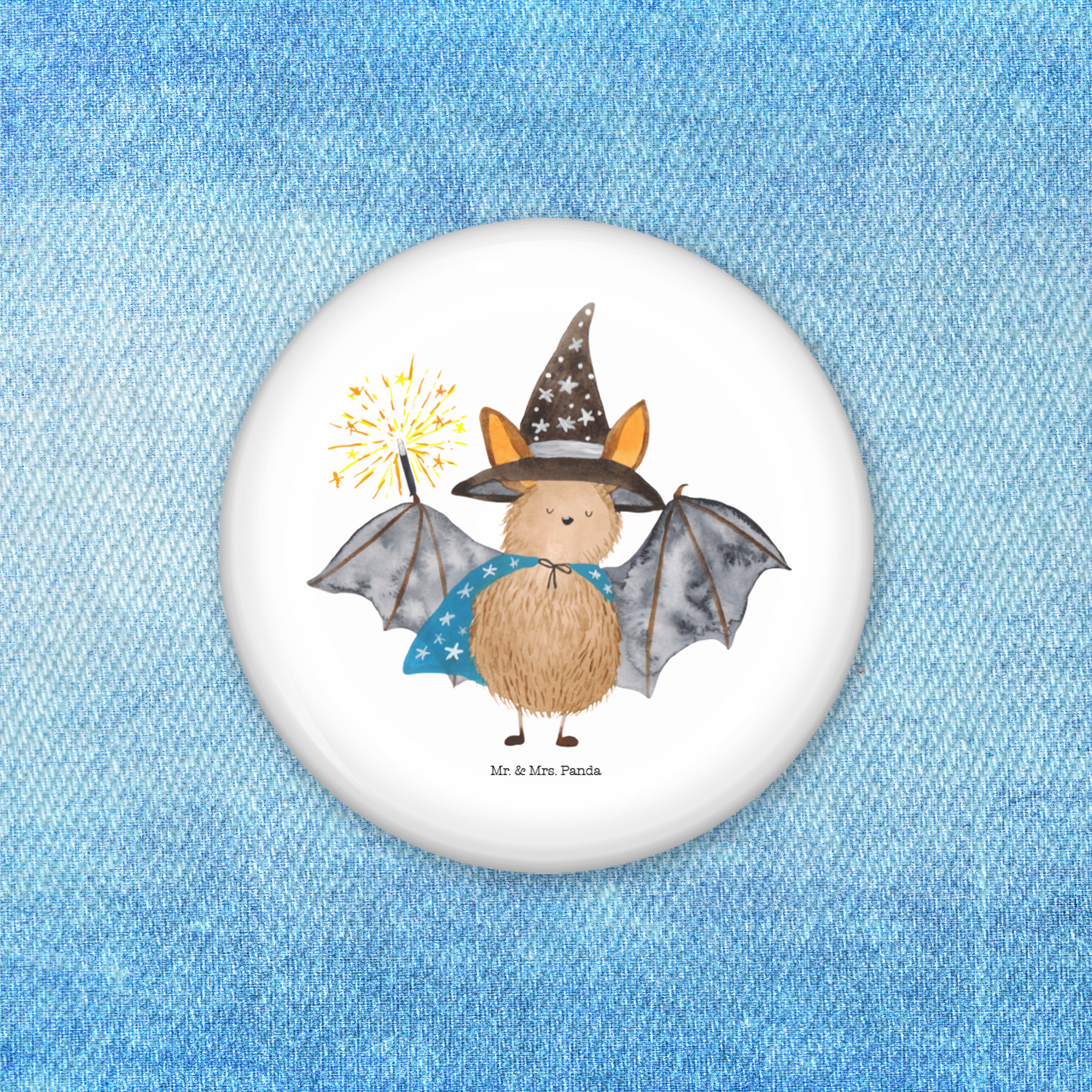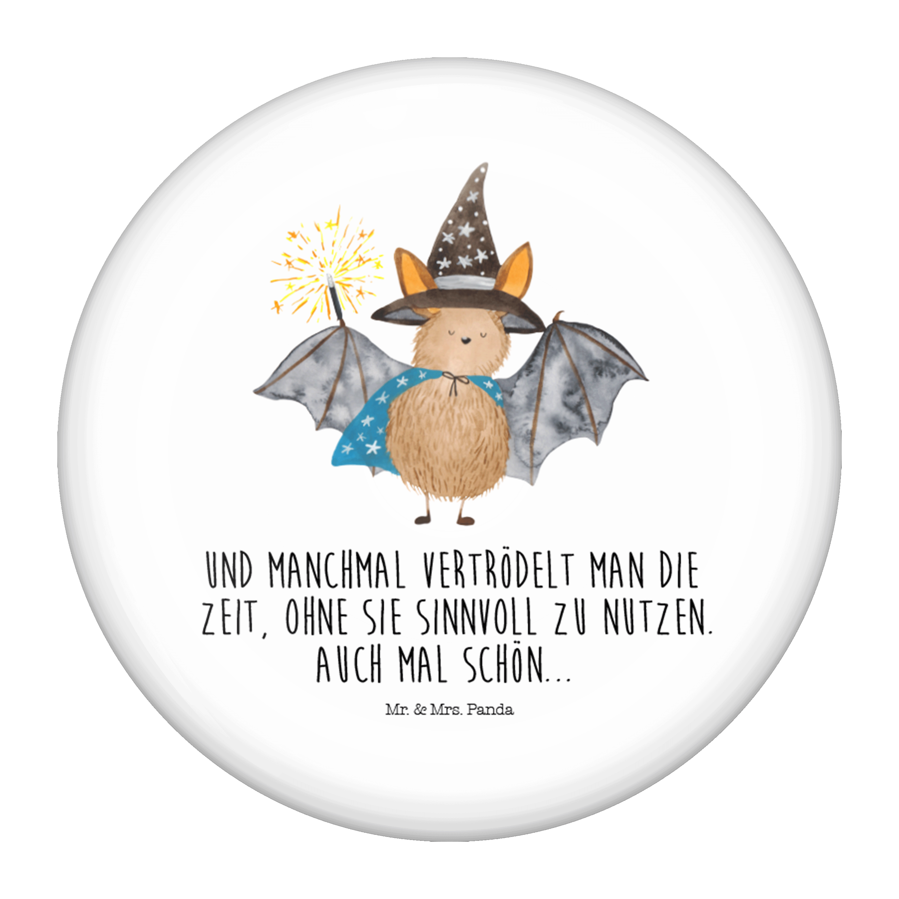 50mm Button Fledermaus Zauberer - mit Spruch - Weiß