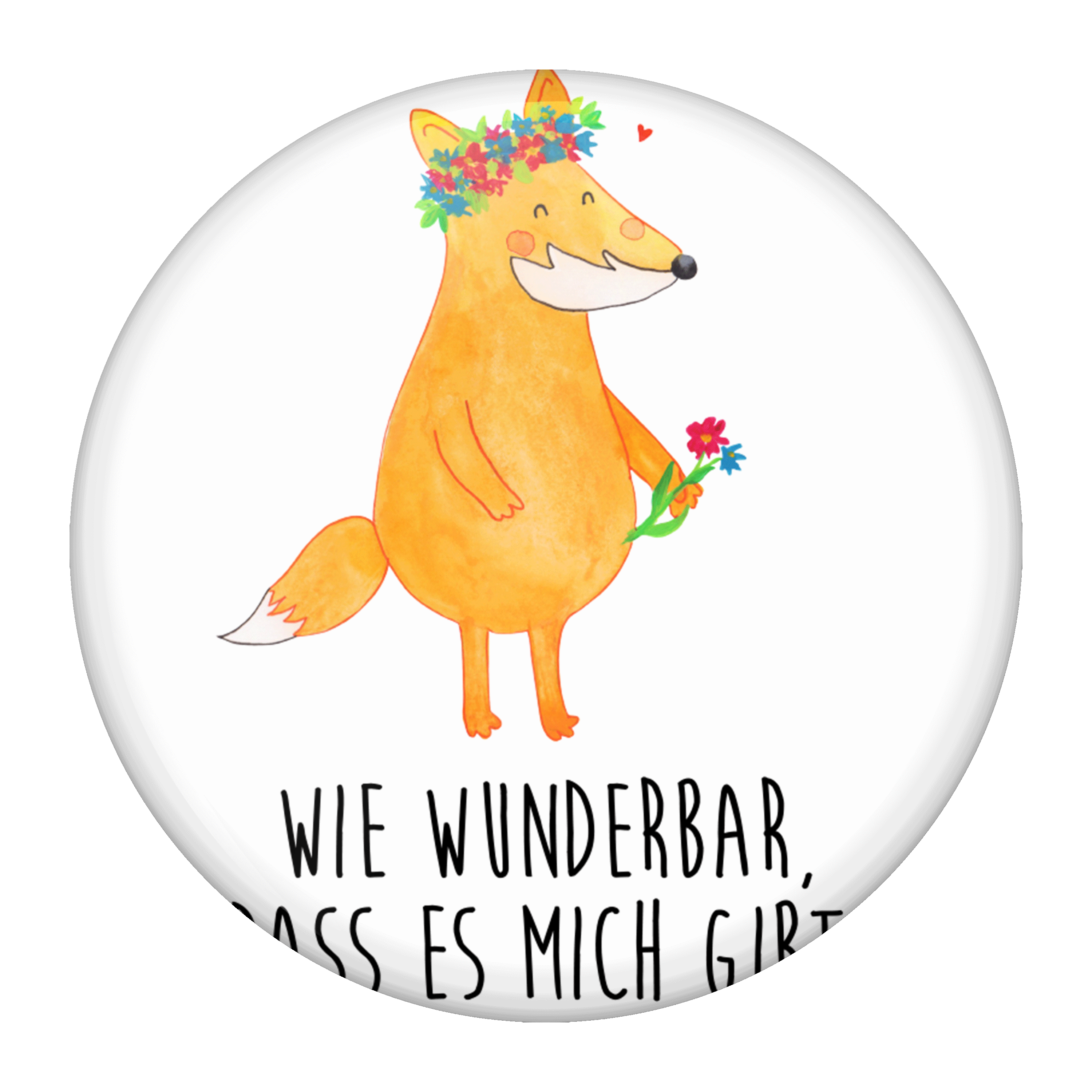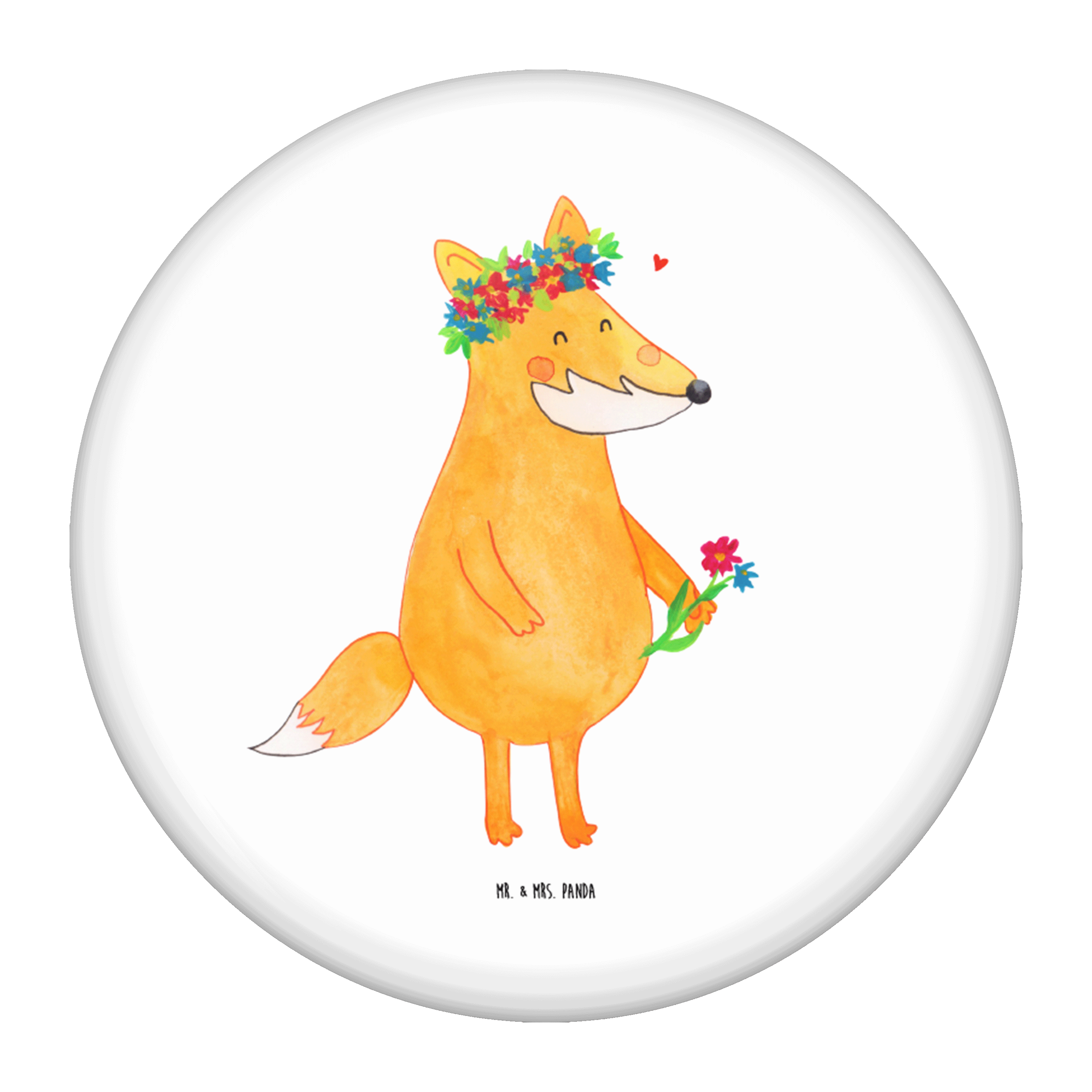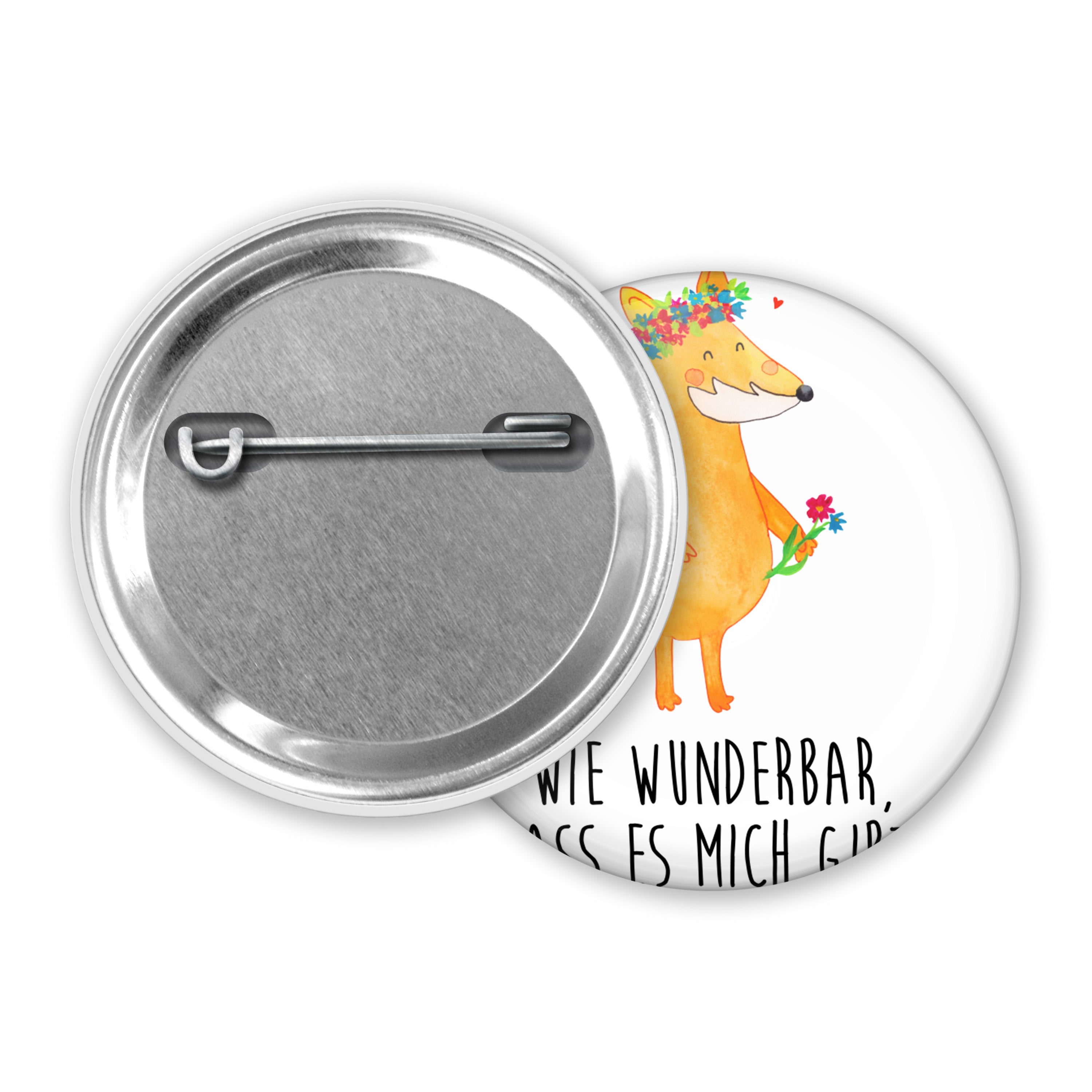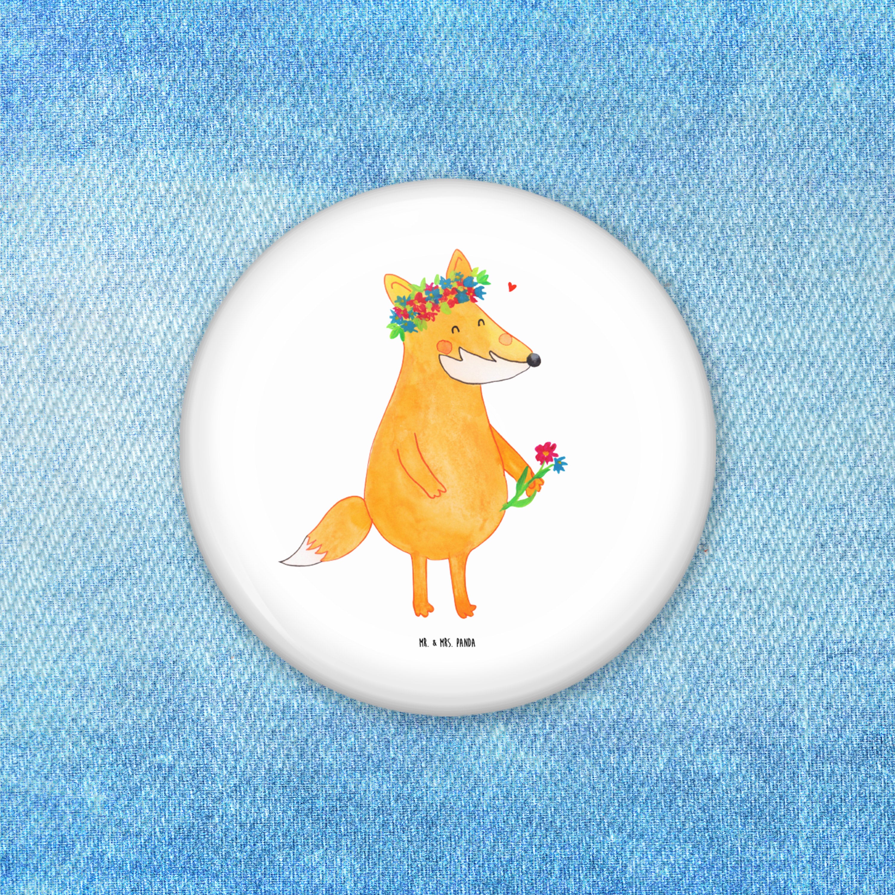 50mm Button Fuchs Blumenliebe - mit Spruch - Weiß