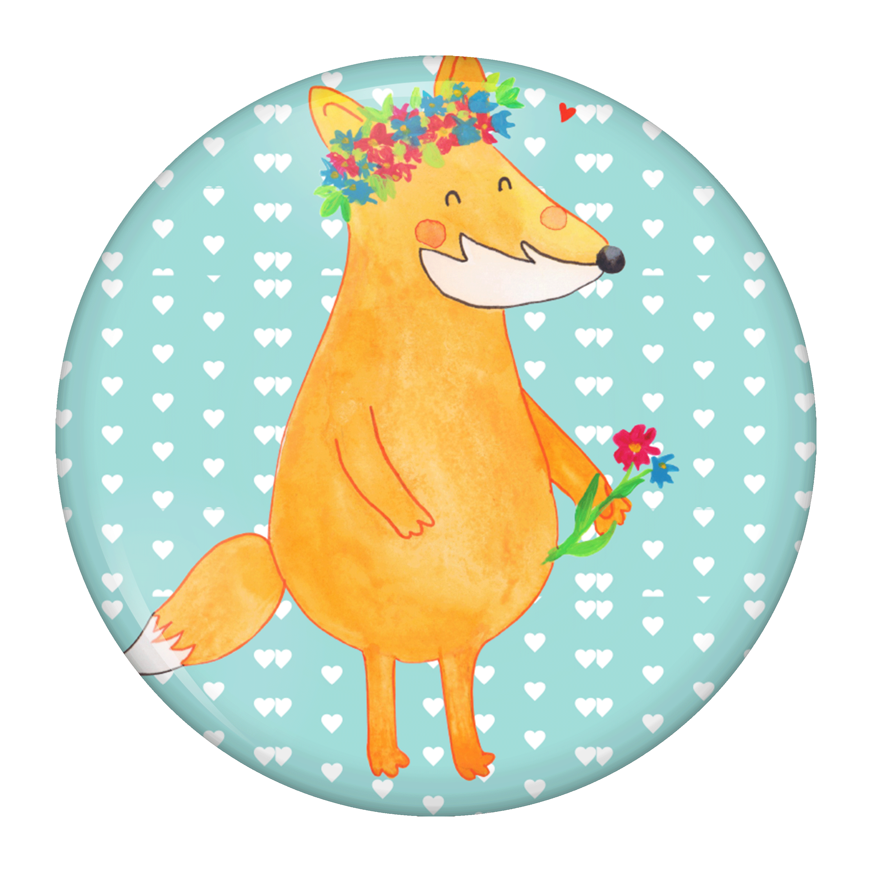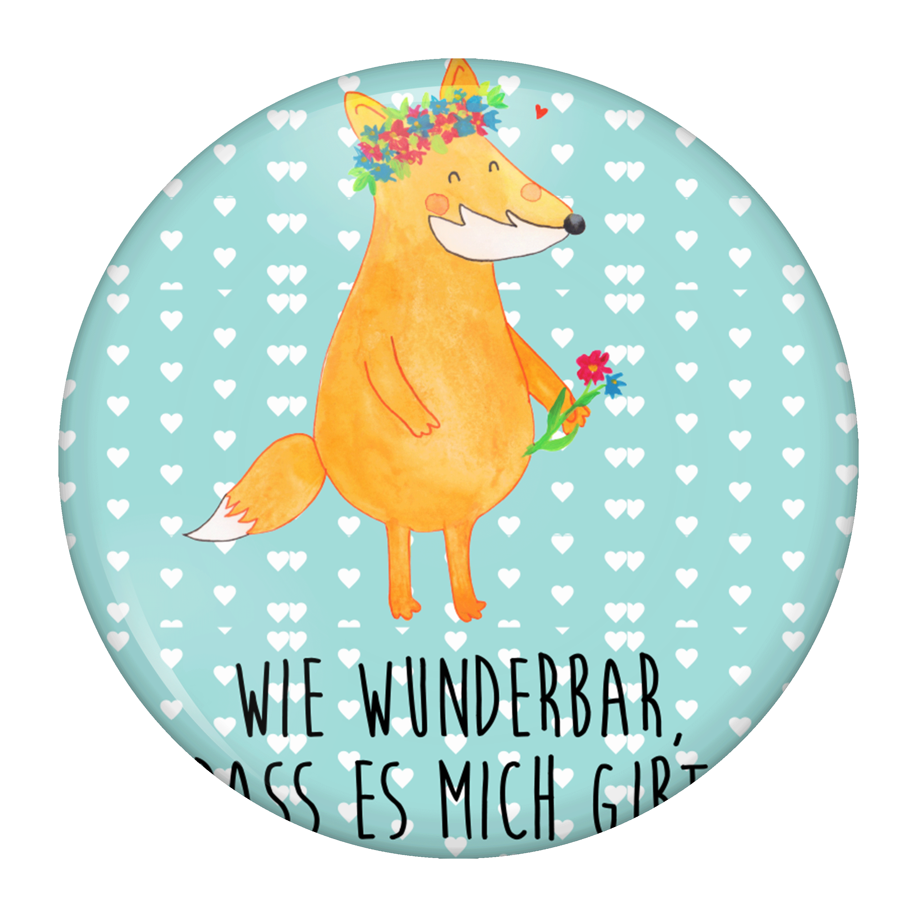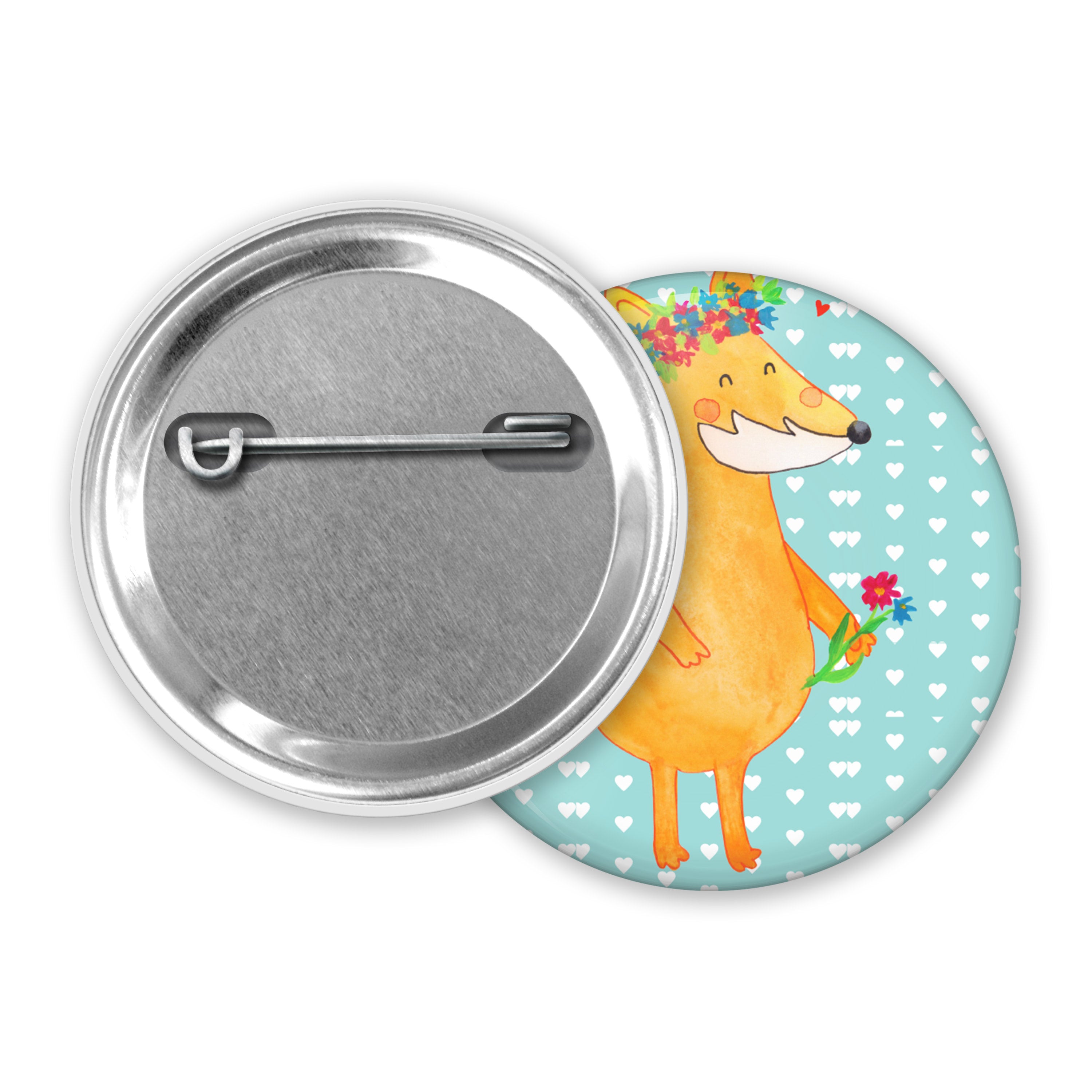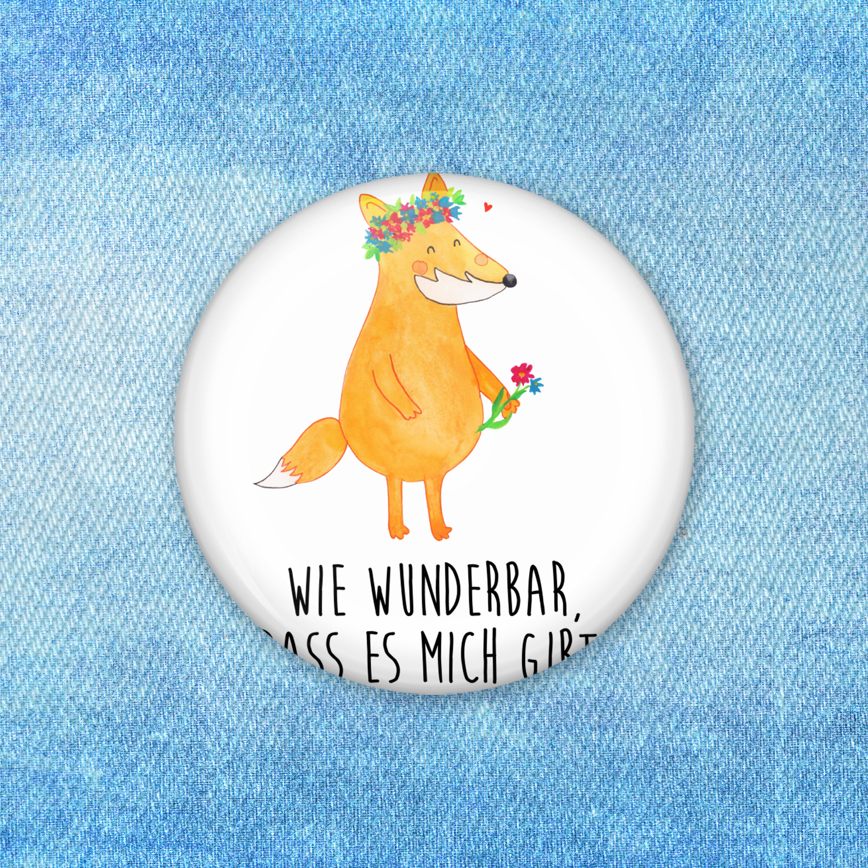 50mm Button Fuchs Blumenliebe - mit Spruch - Weiß