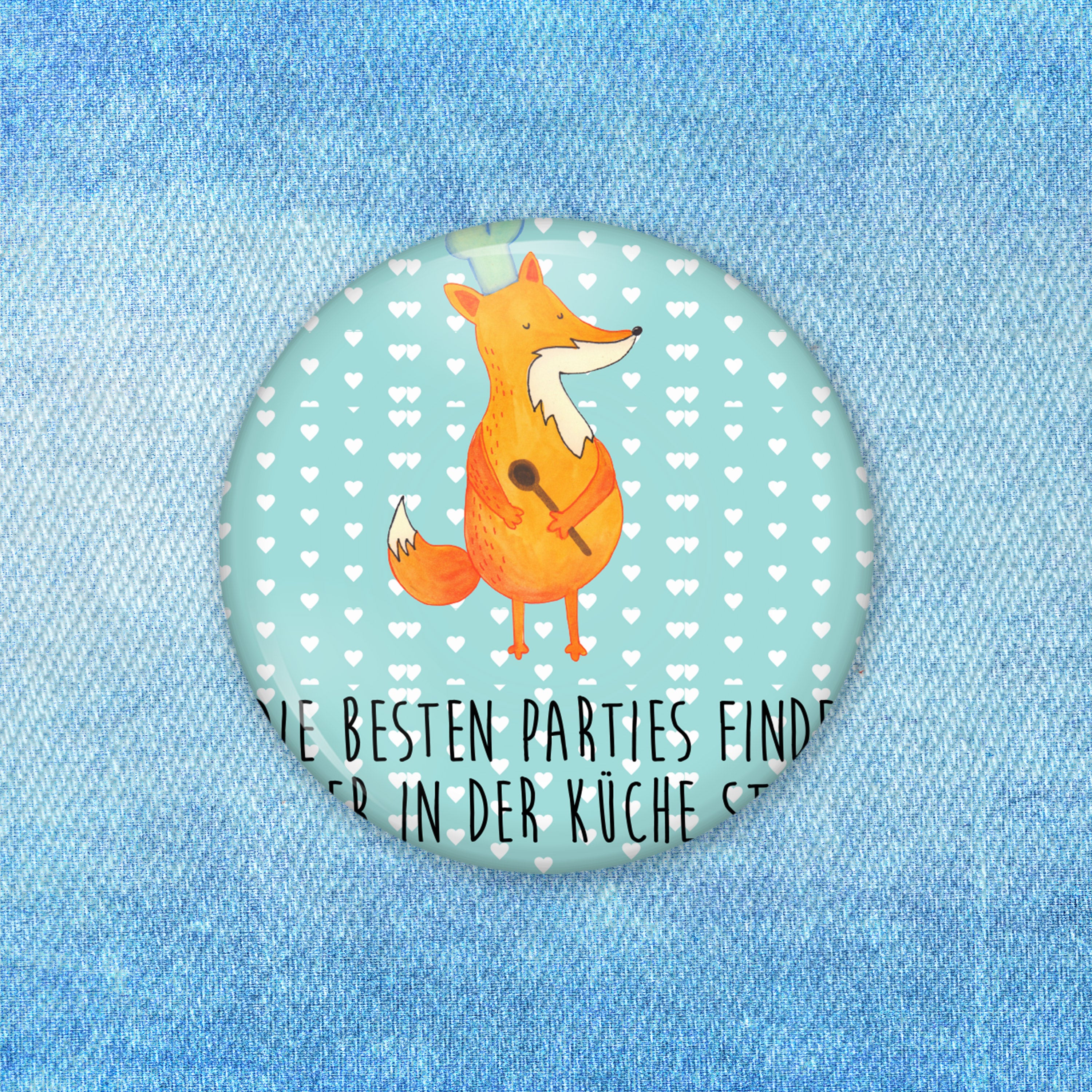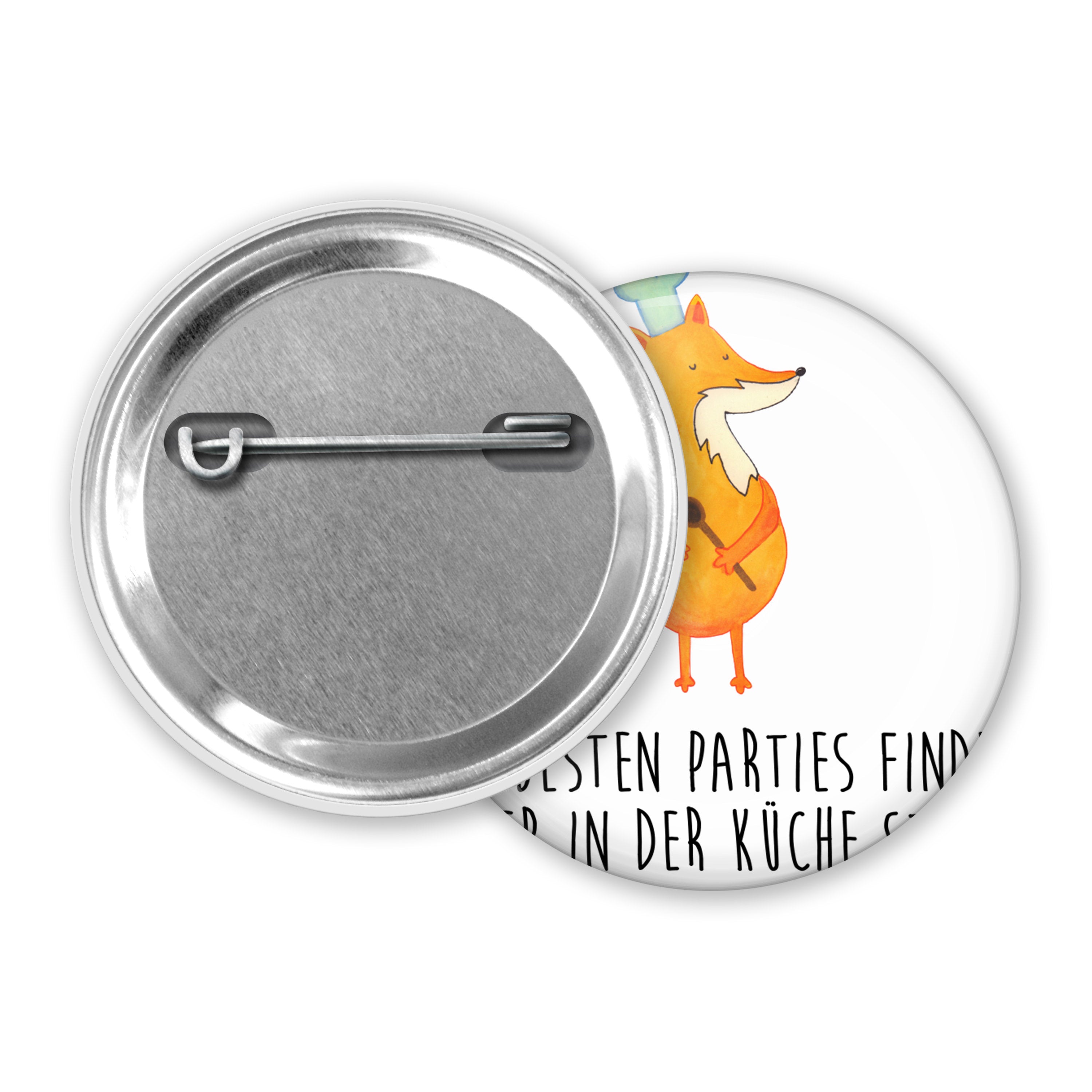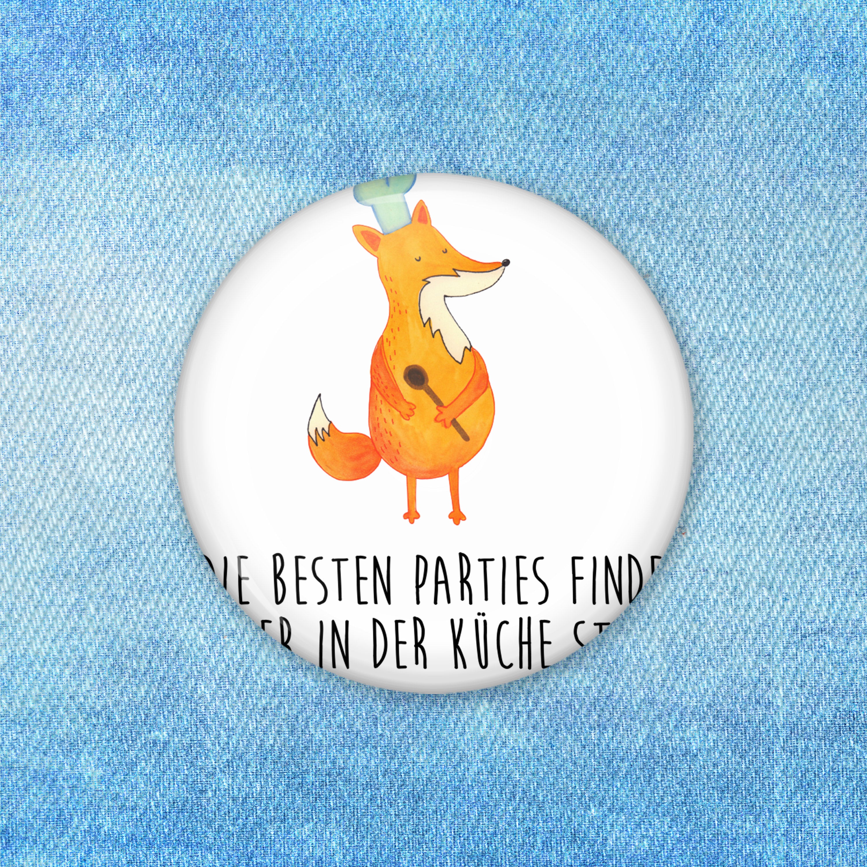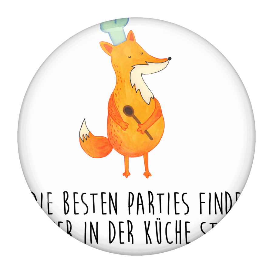 50mm Button Fuchs Koch - mit Spruch - Weiß