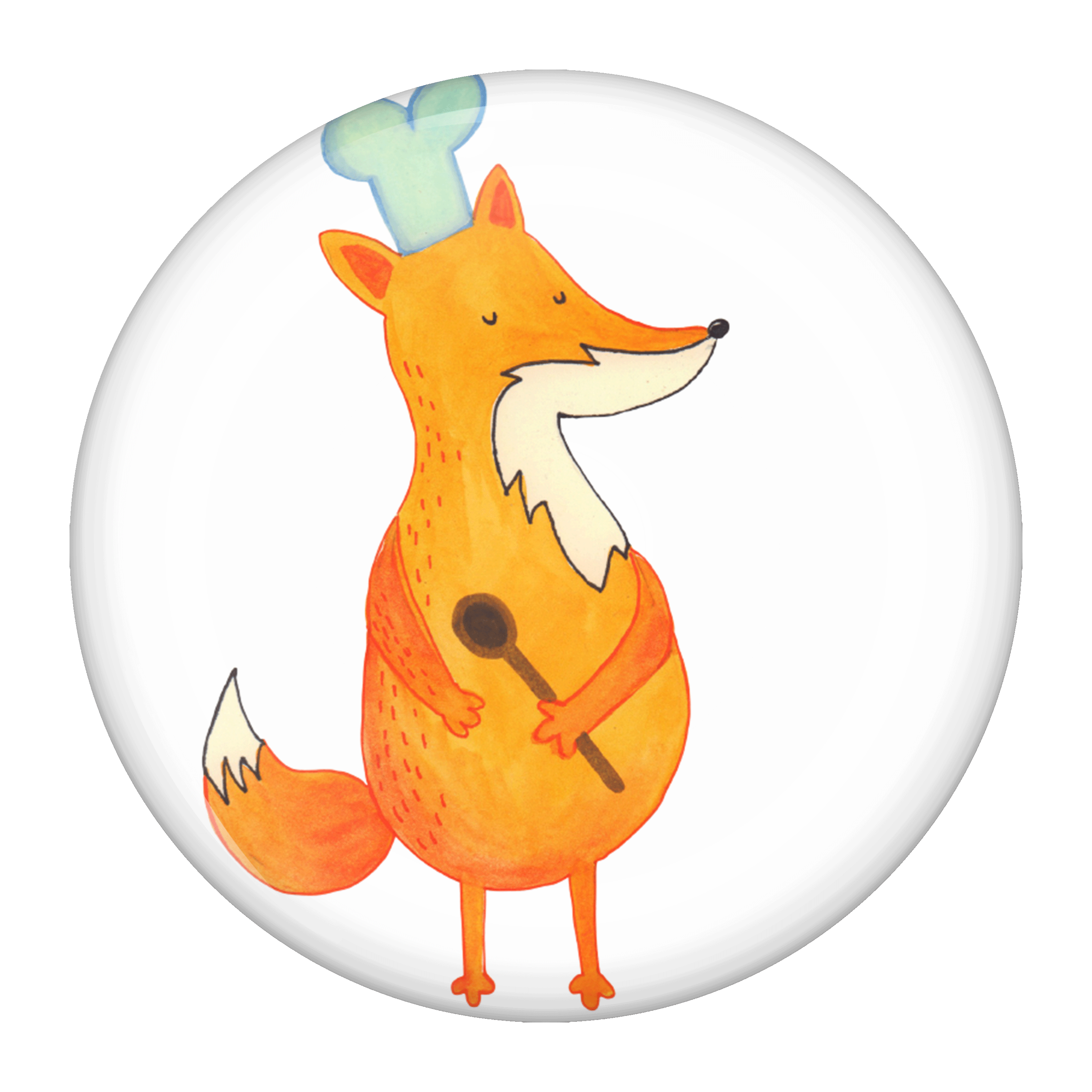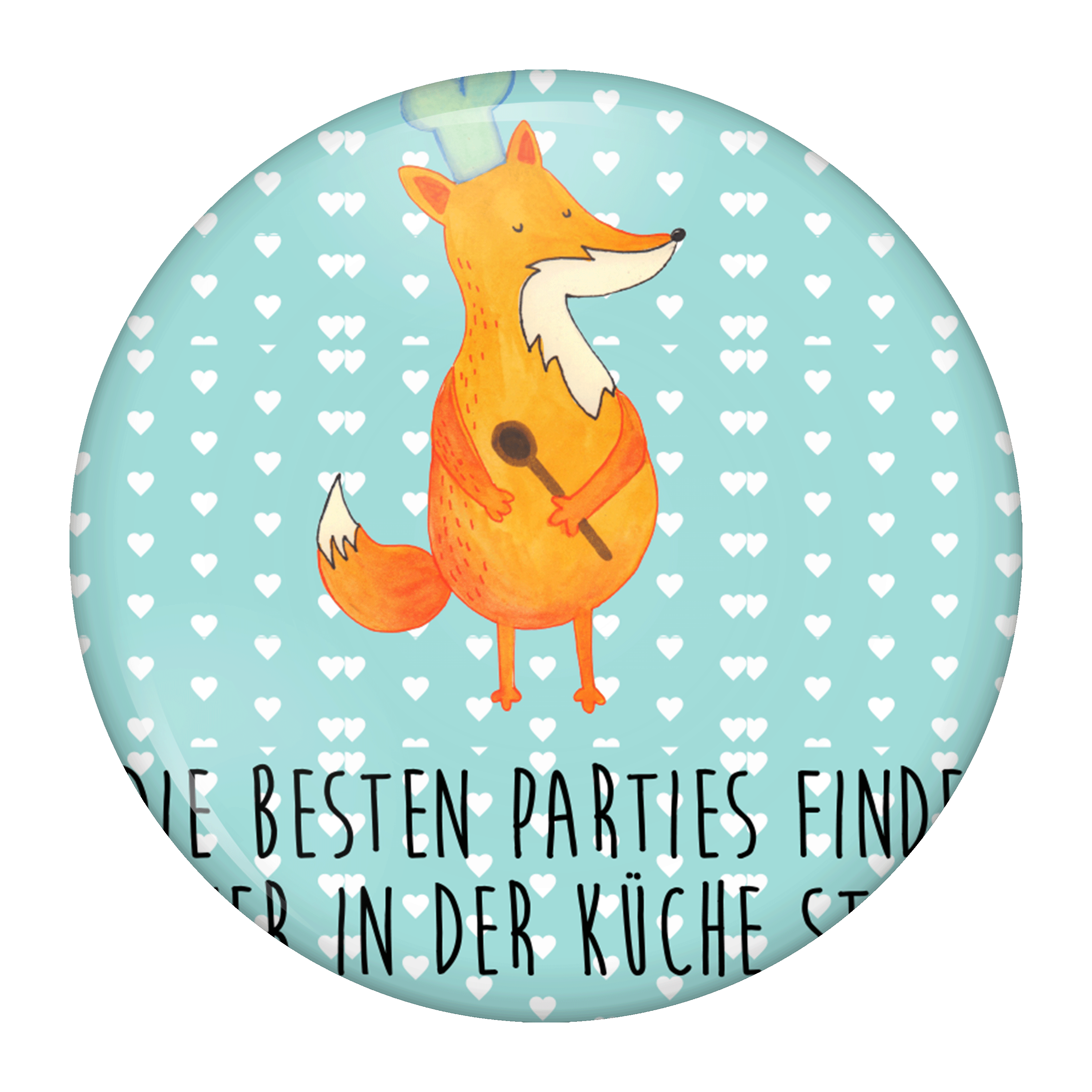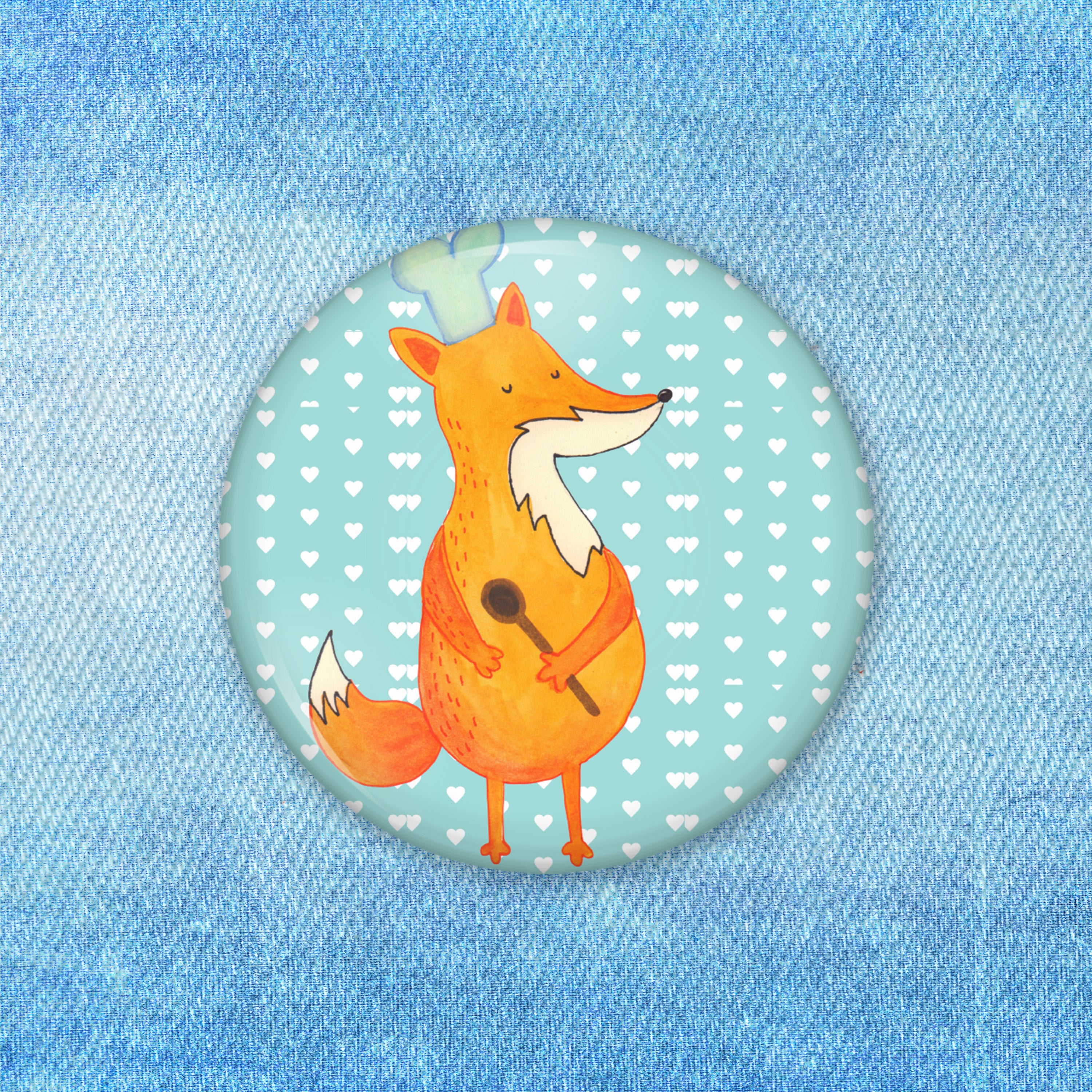 50mm Button Fuchs Koch - mit Spruch - Weiß