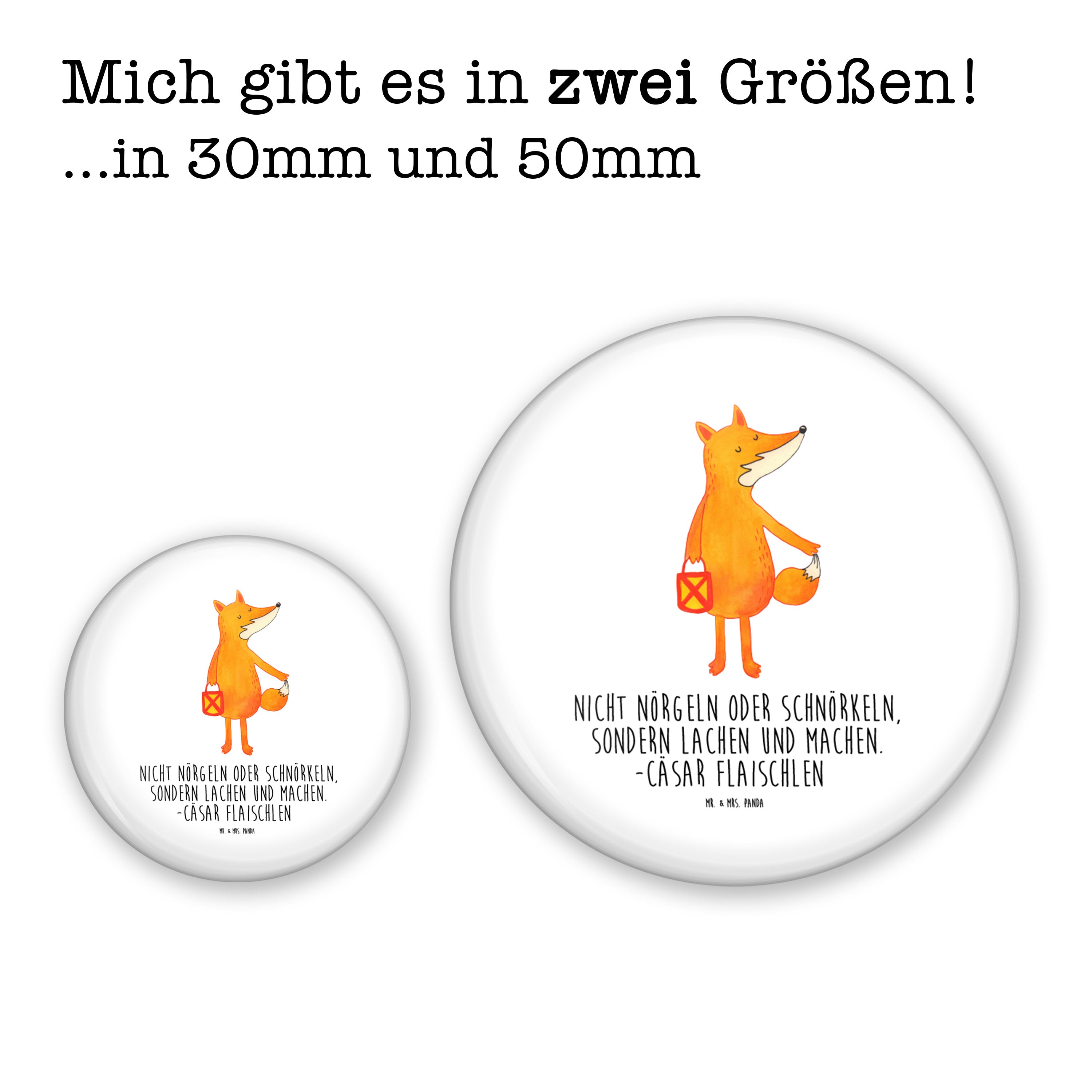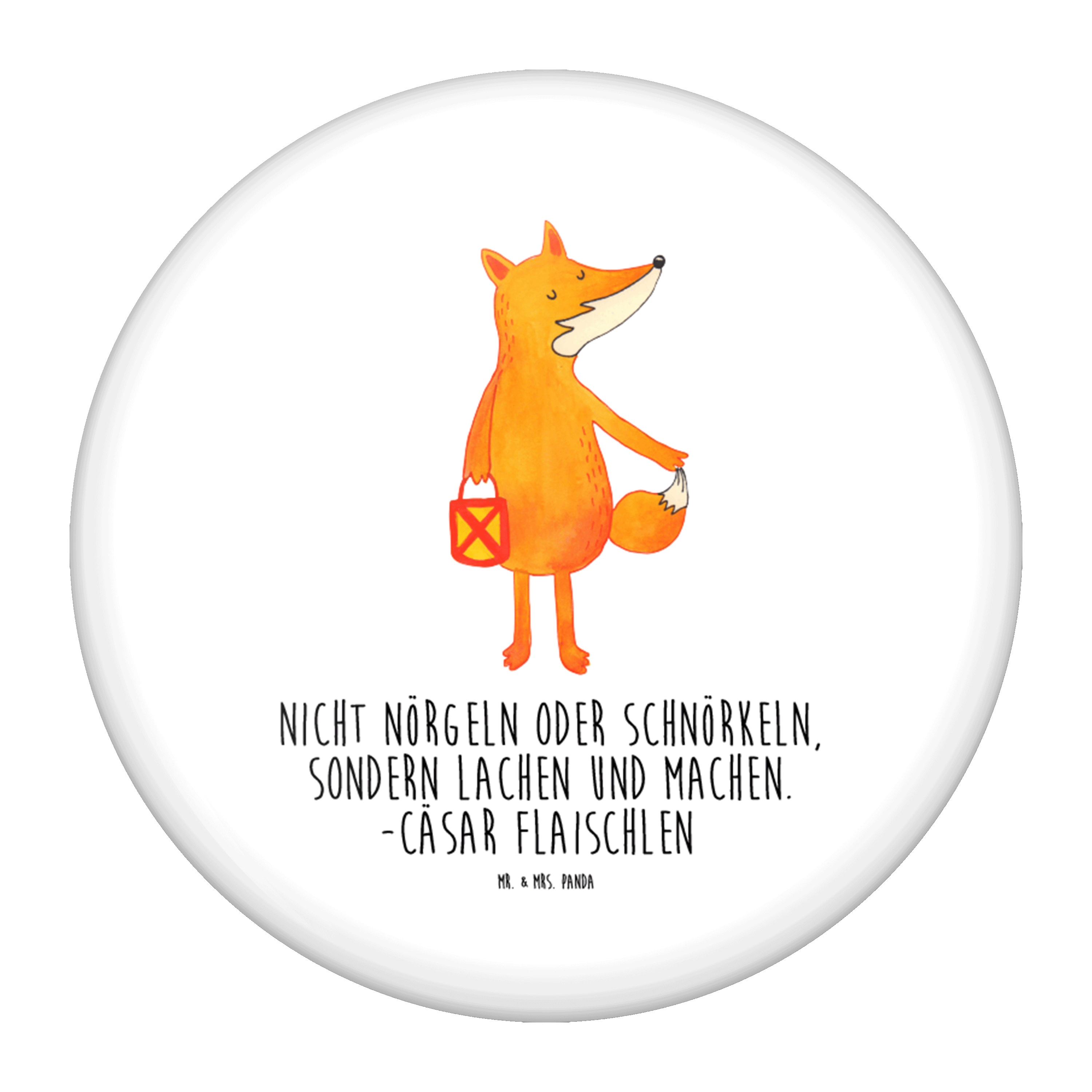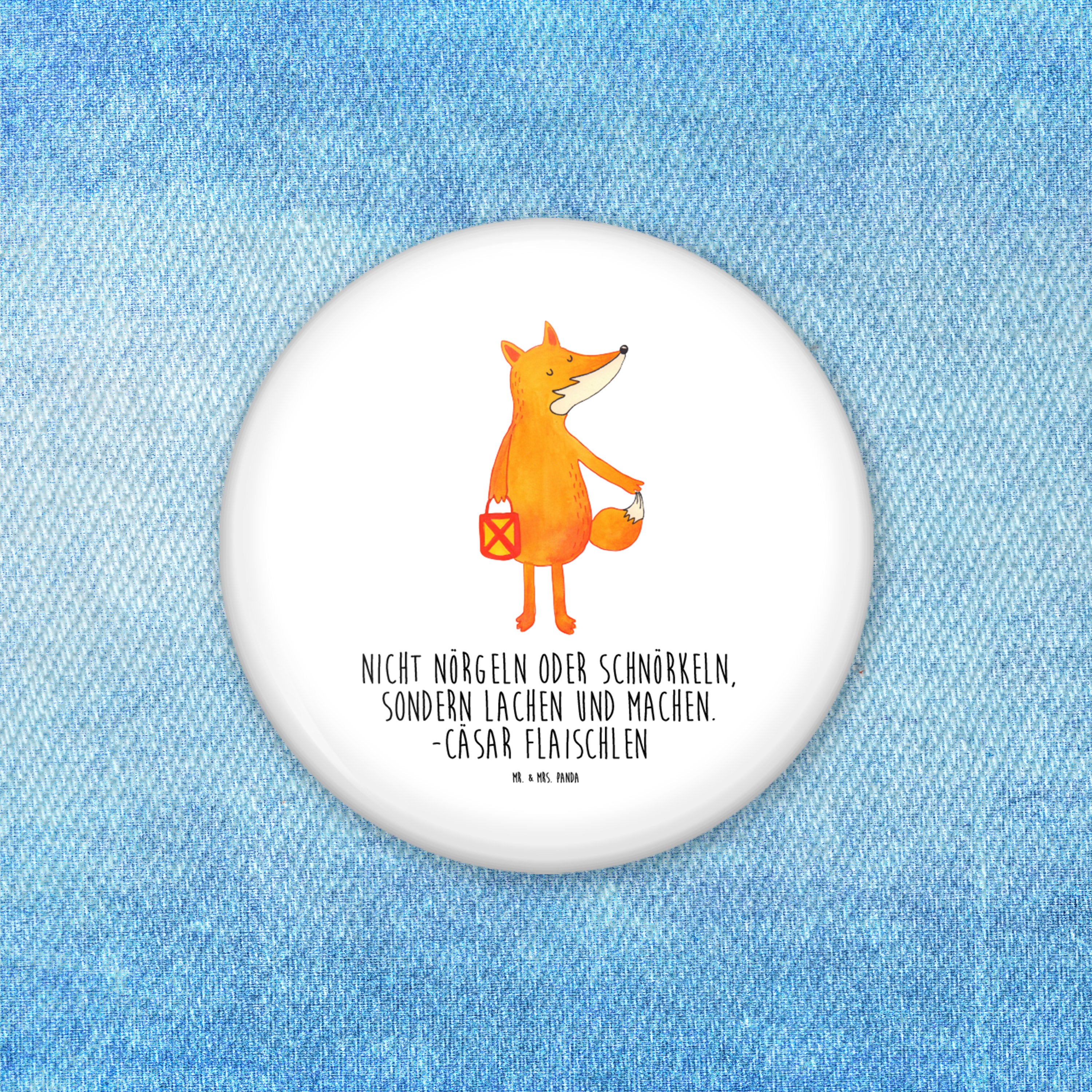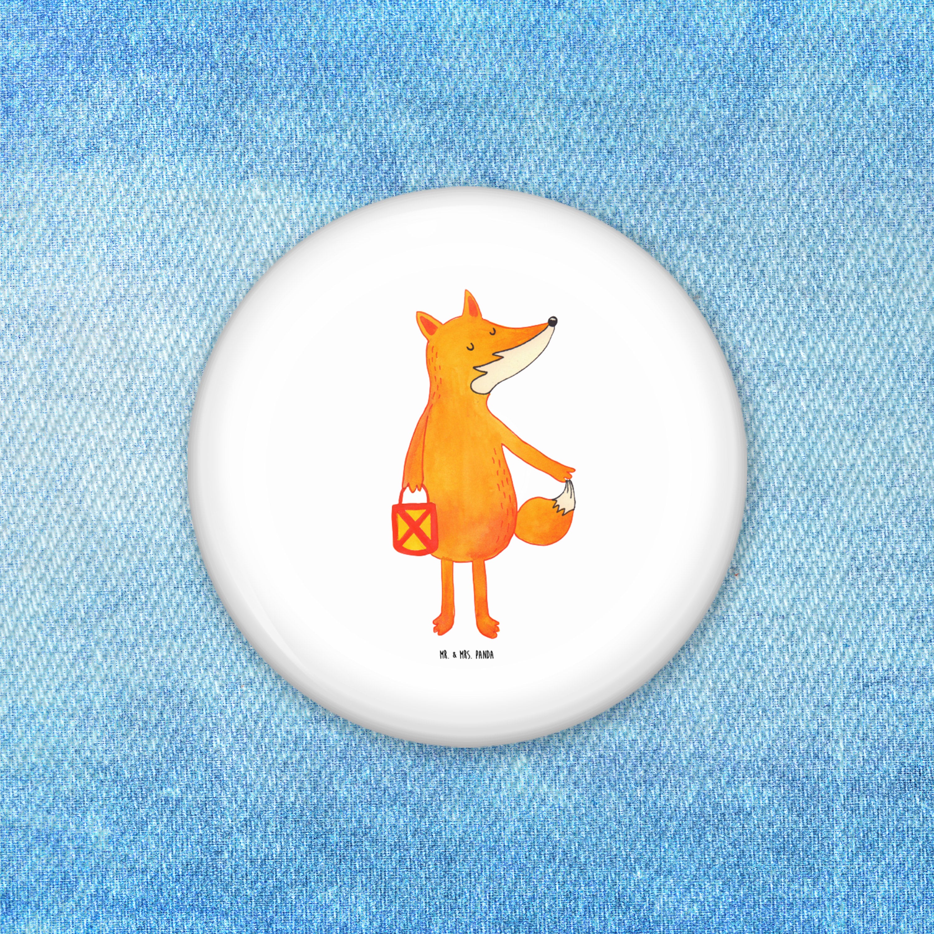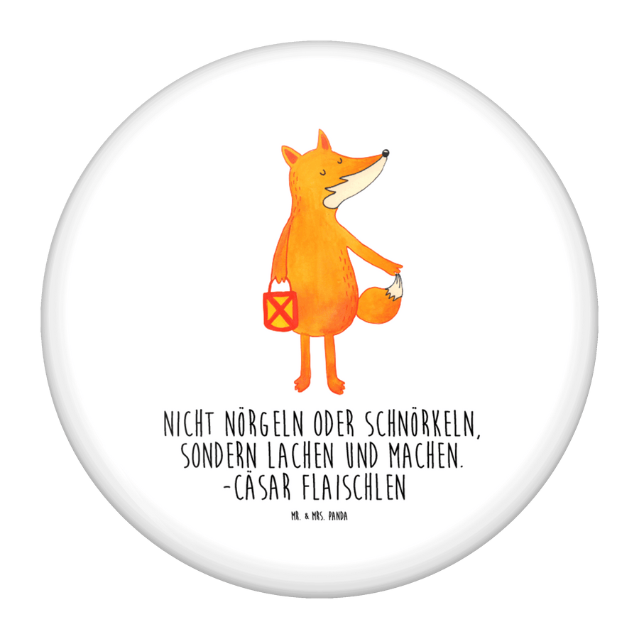 50mm Button Fuchs Laterne - mit Spruch - Weiß