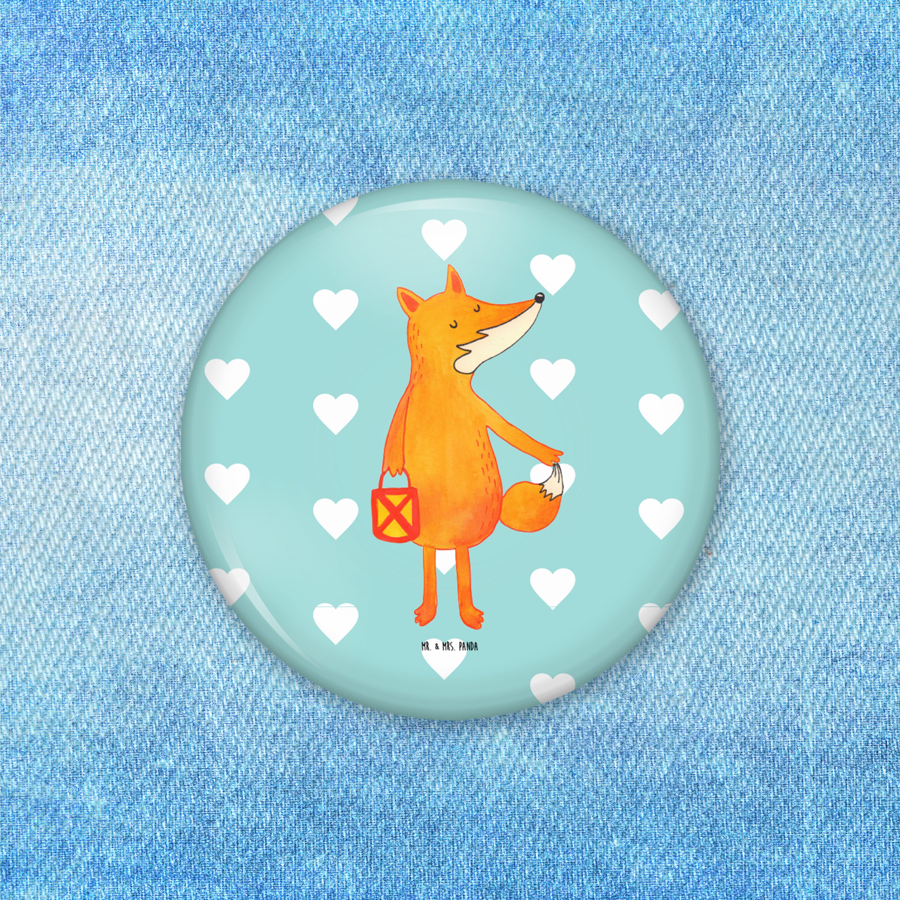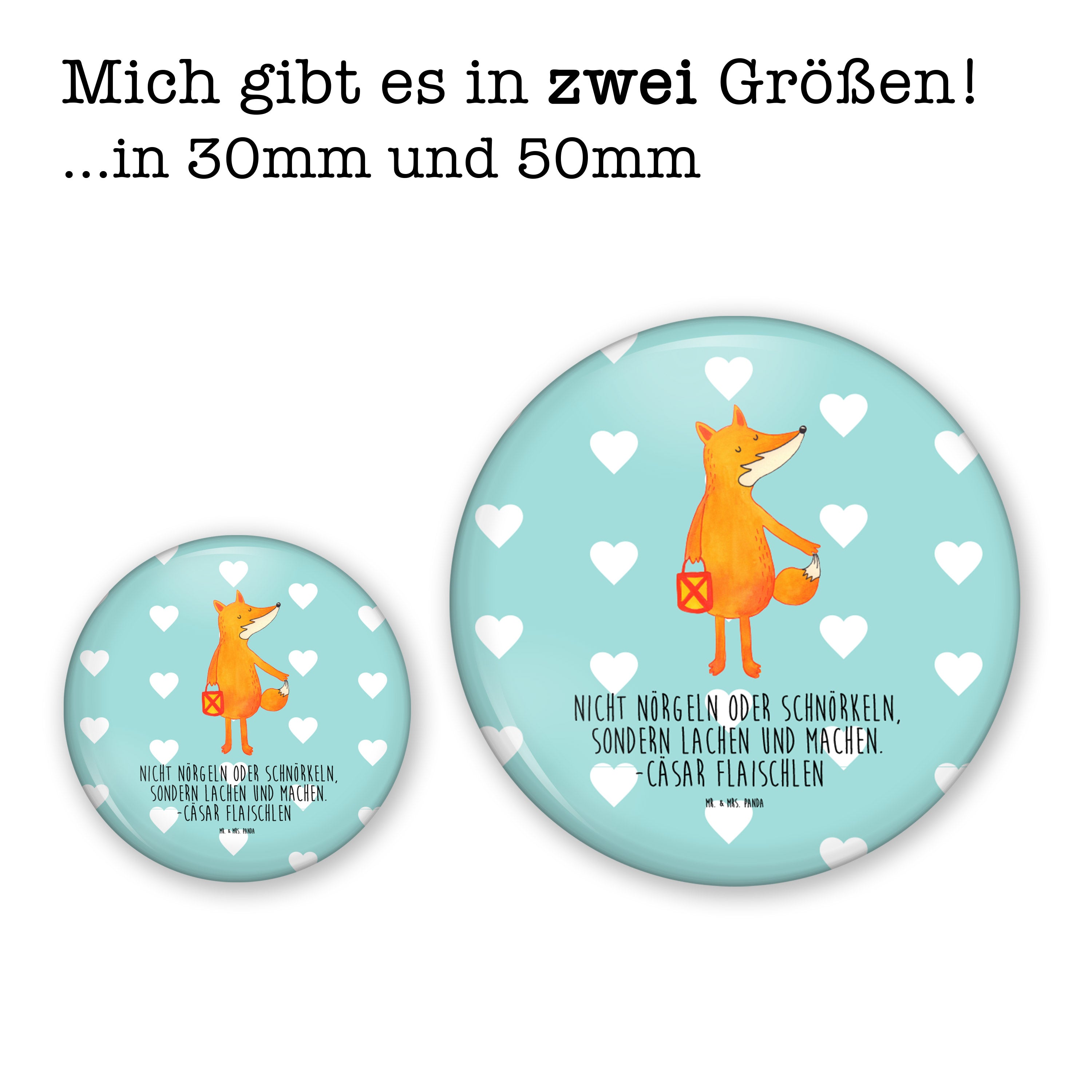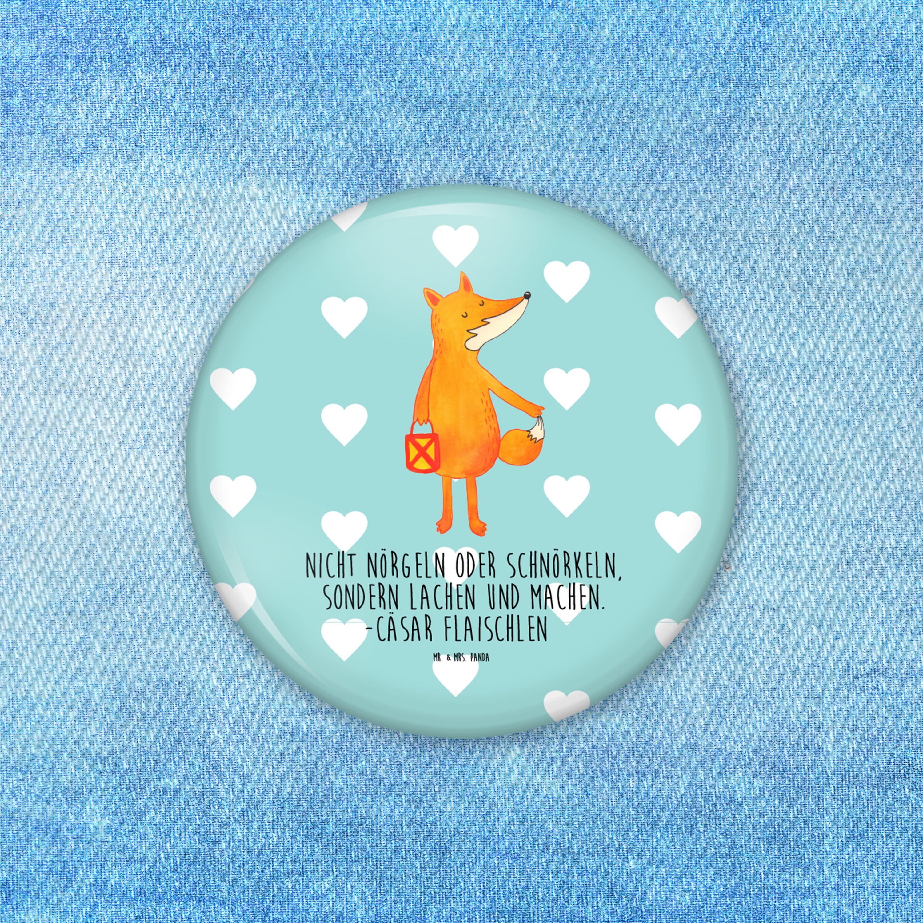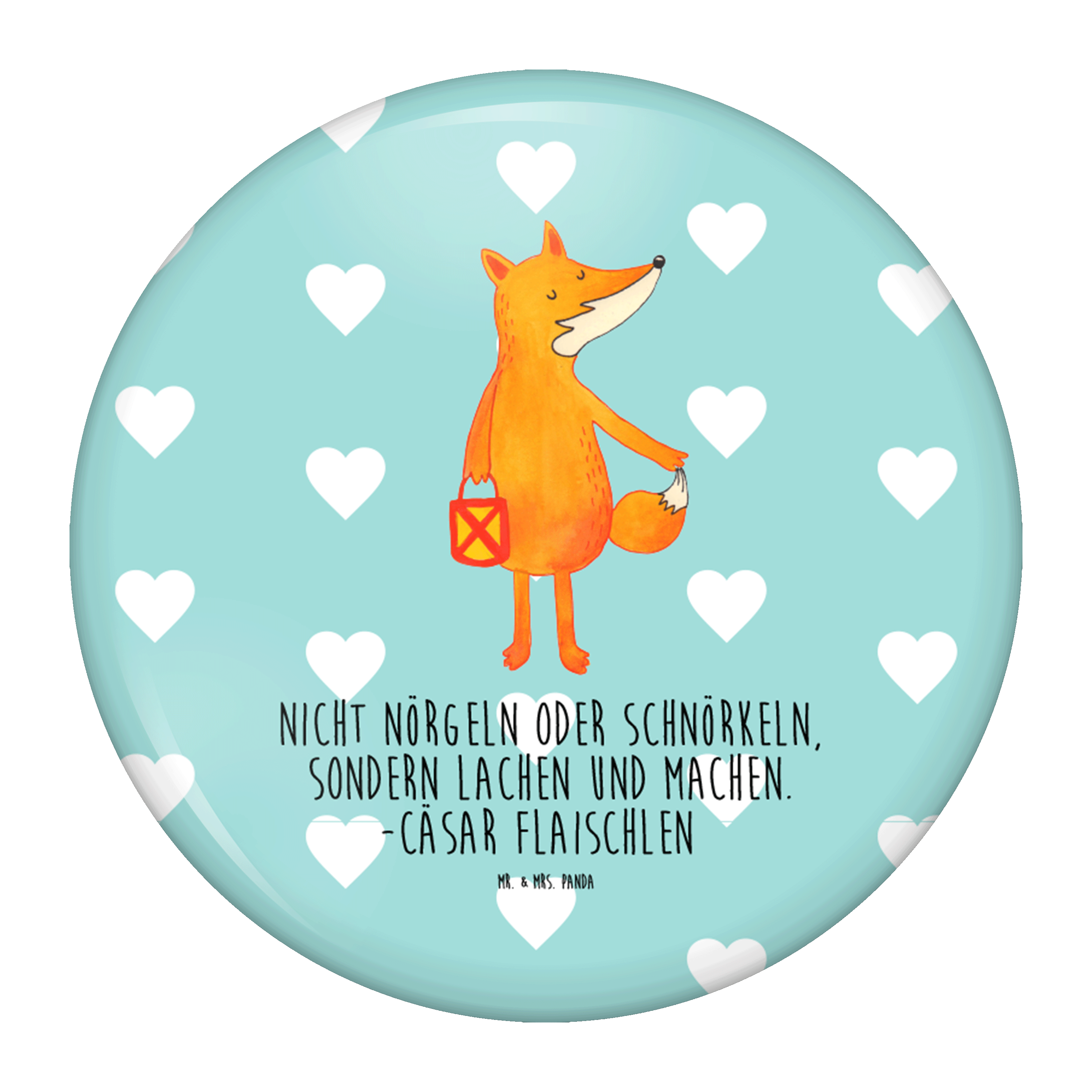 50mm Button Fuchs Laterne - mit Spruch - Weiß