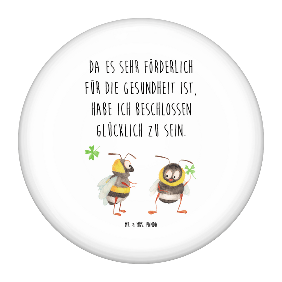 50mm Button Hummeln mit Kleeblatt - mit Spruch - Weiß