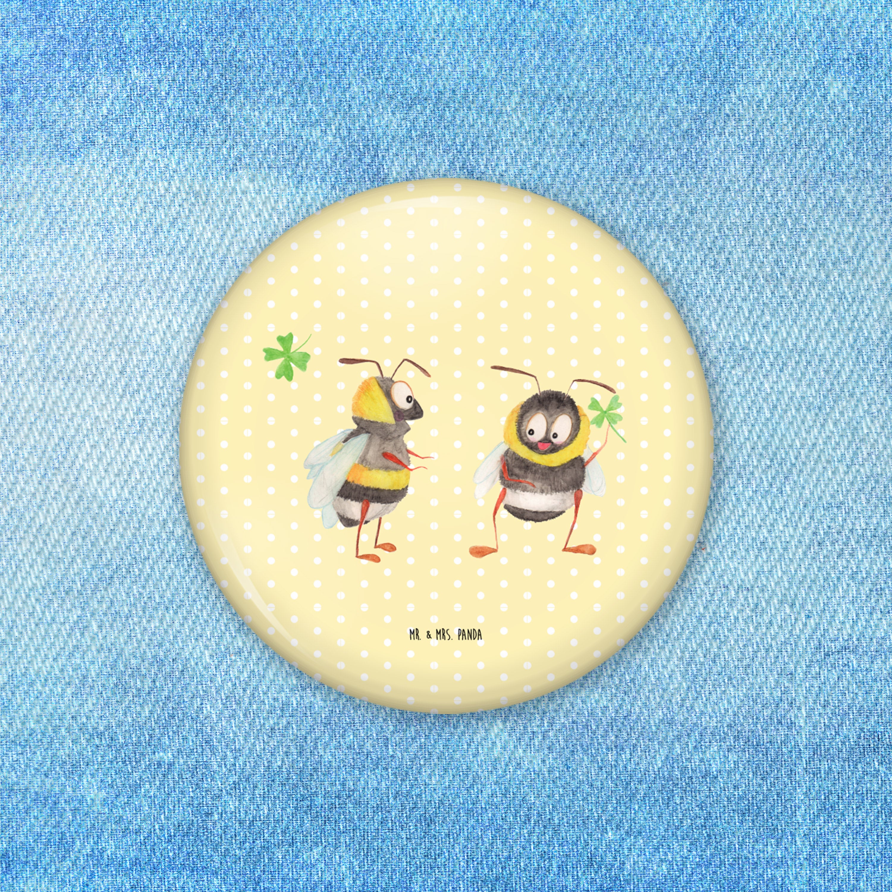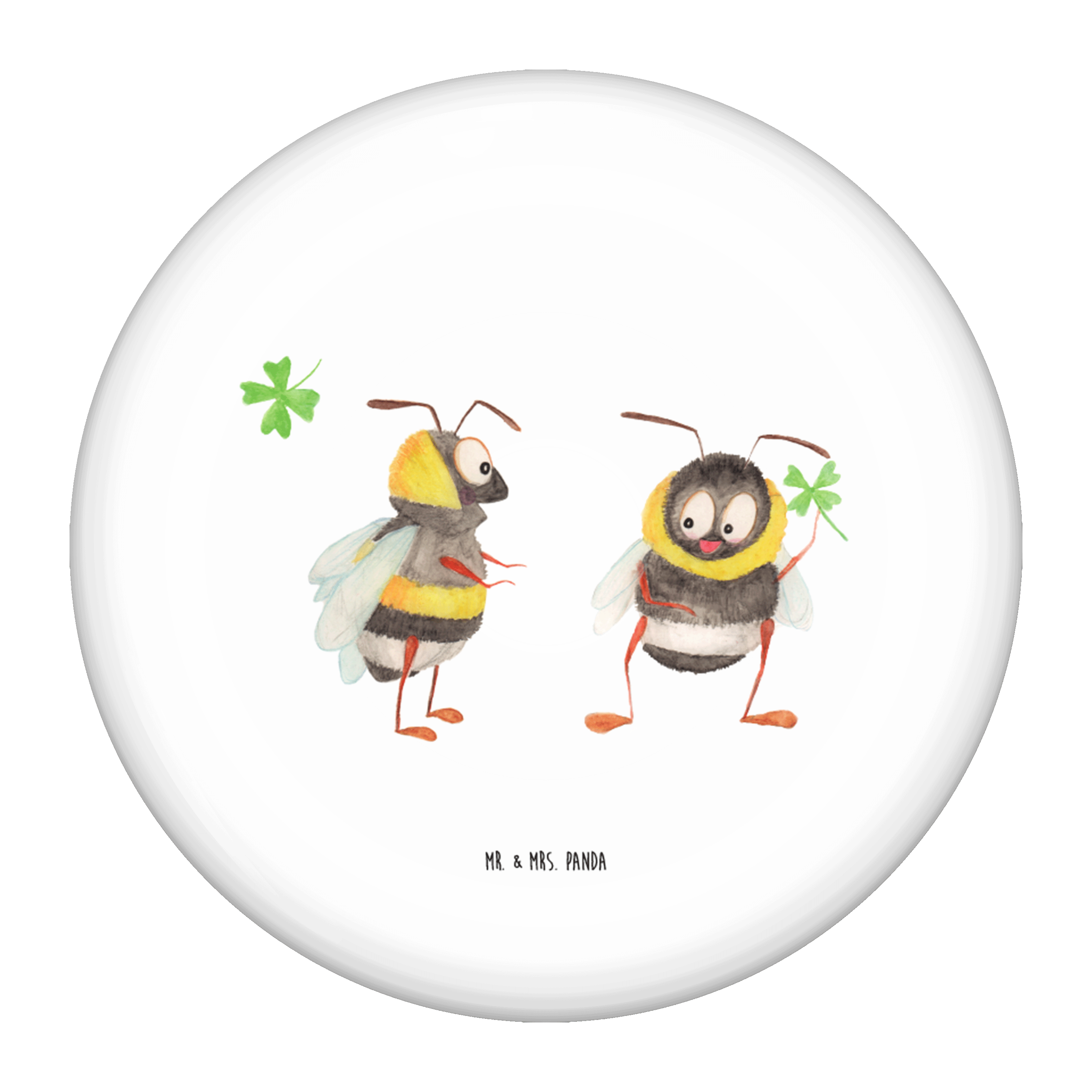50mm Button Hummeln mit Kleeblatt - ohne Spruch - Weiß