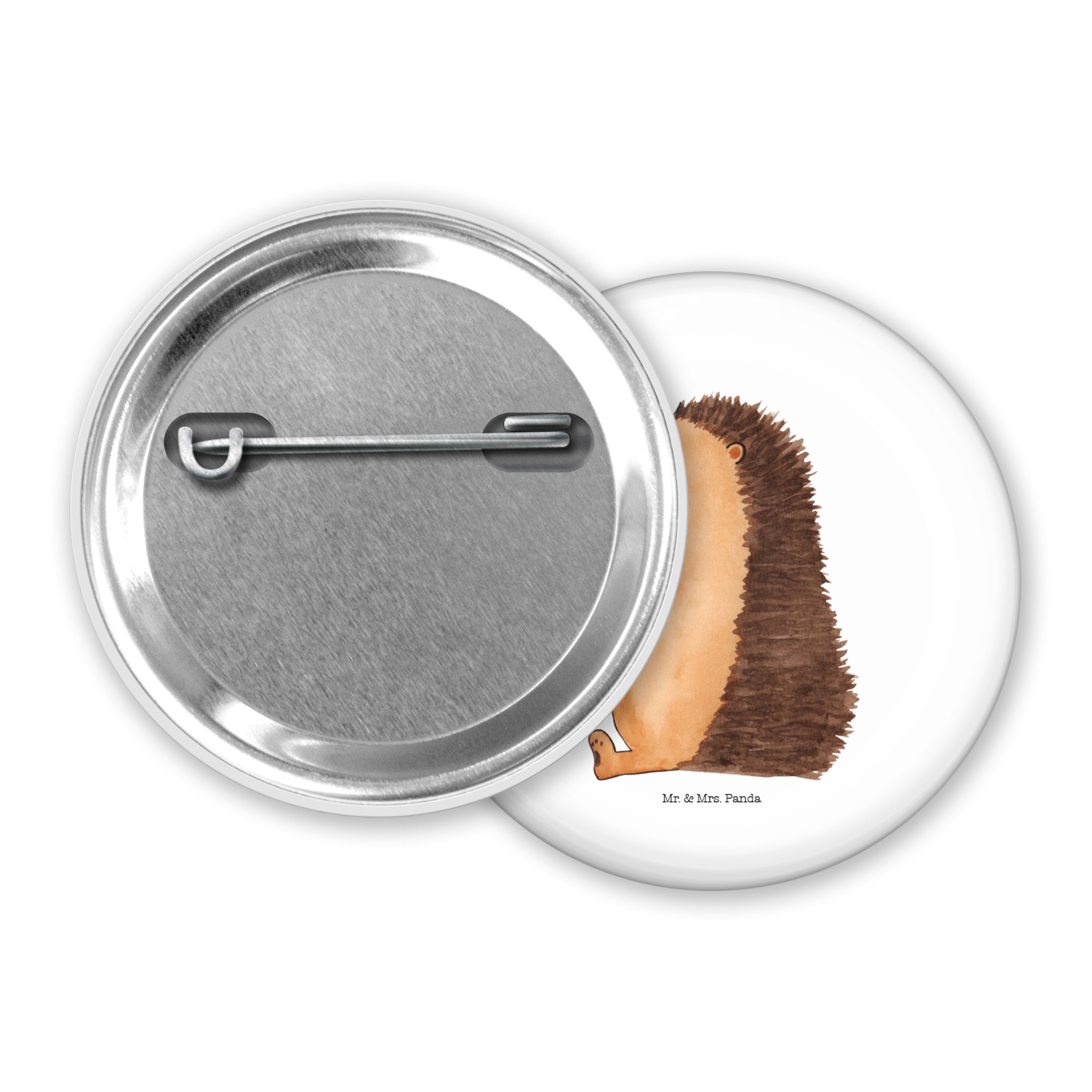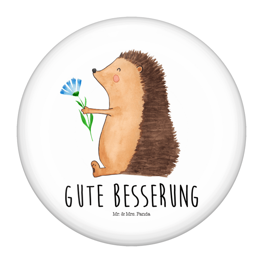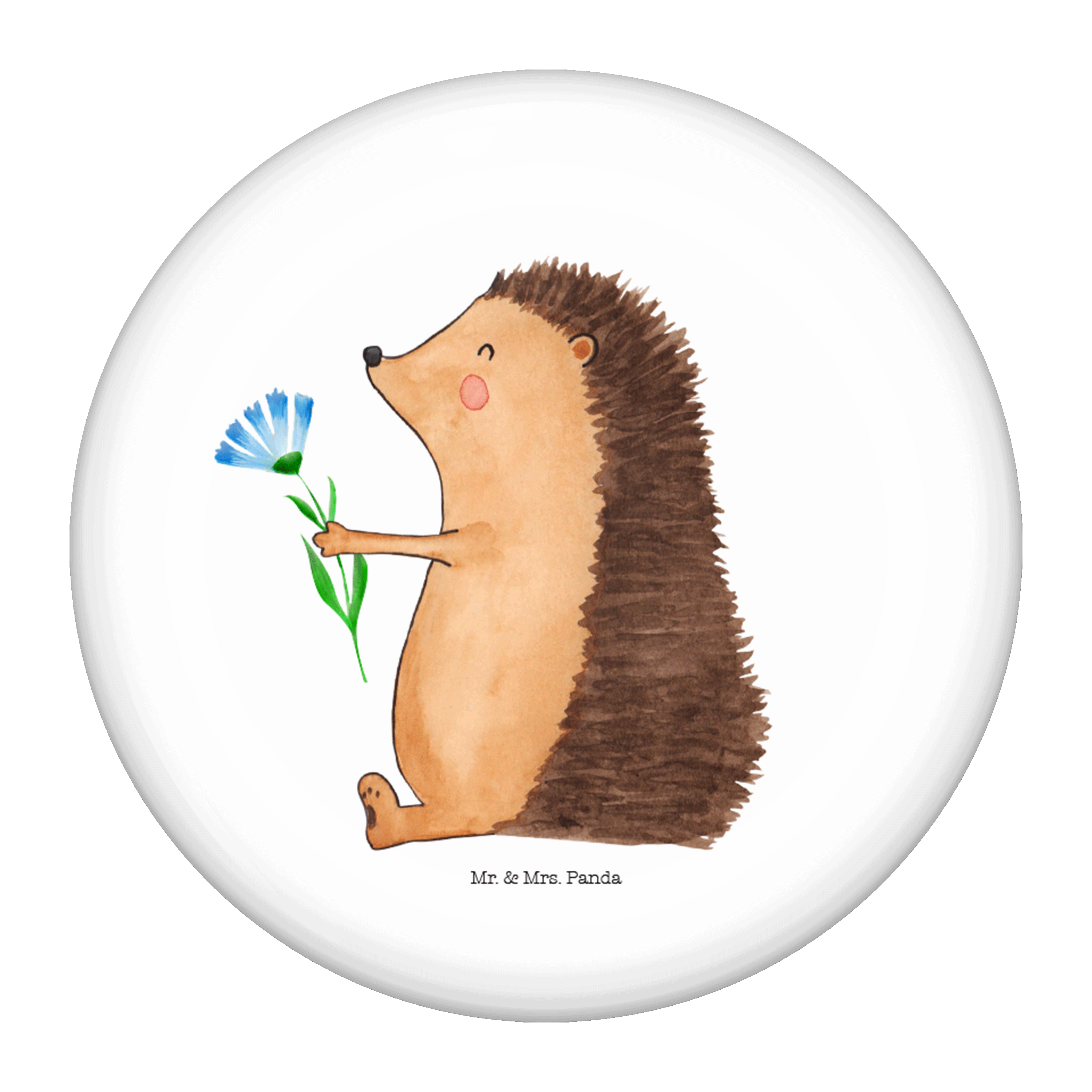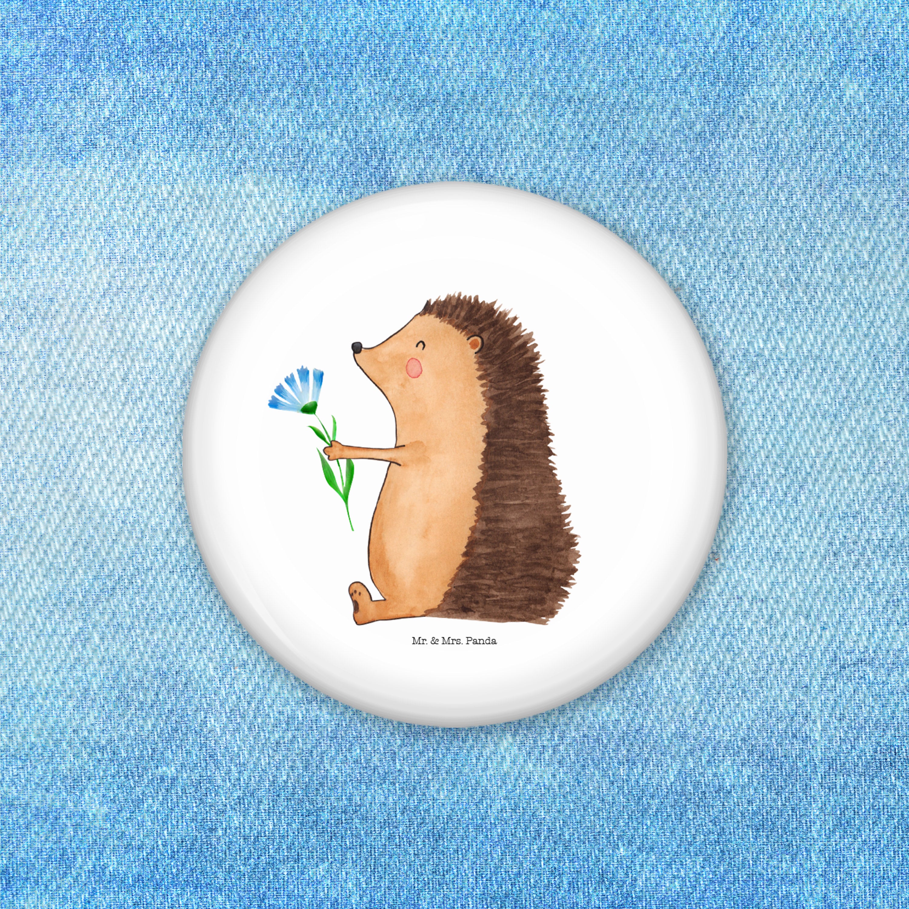 50mm Button Igel mit Blume - mit Spruch - Weiß