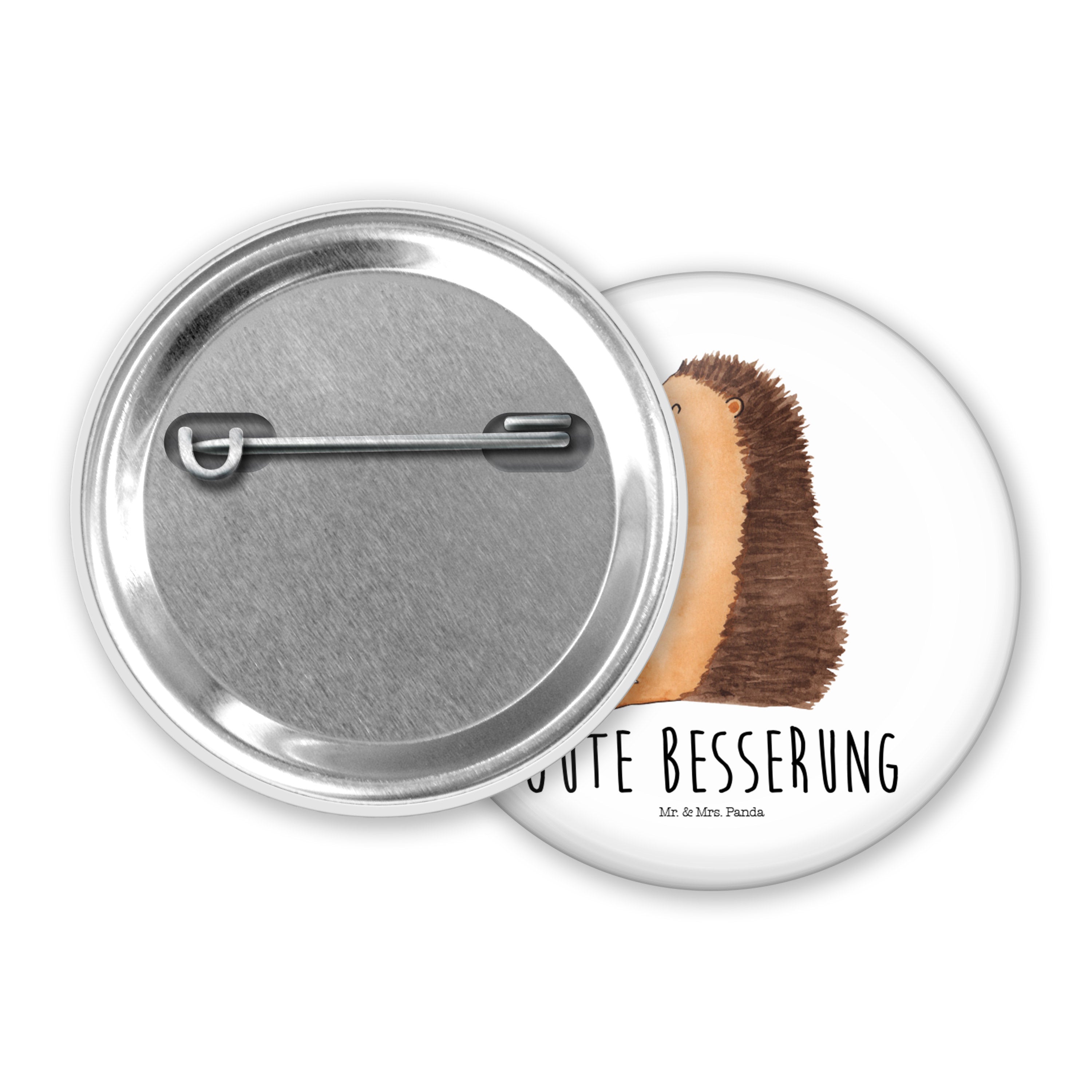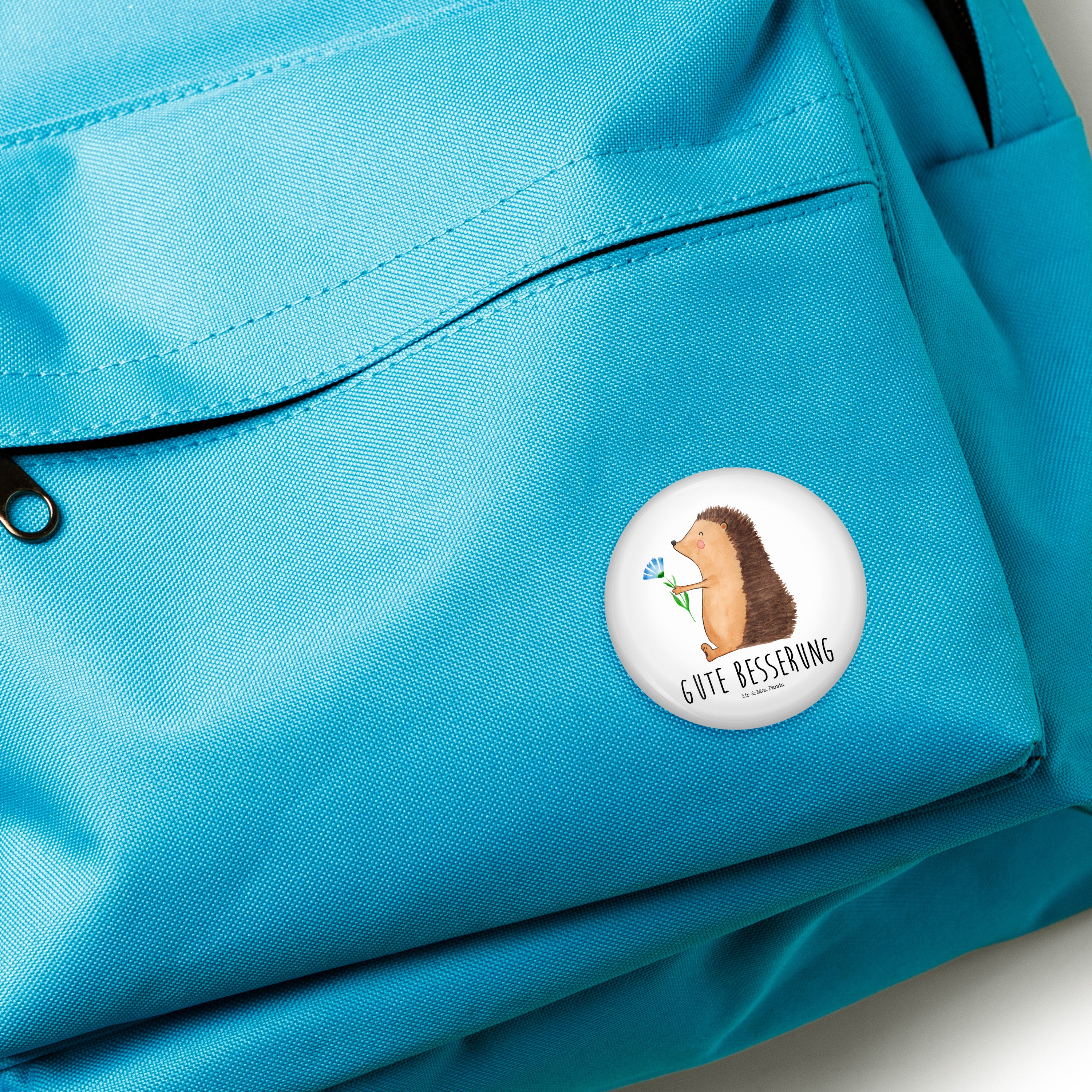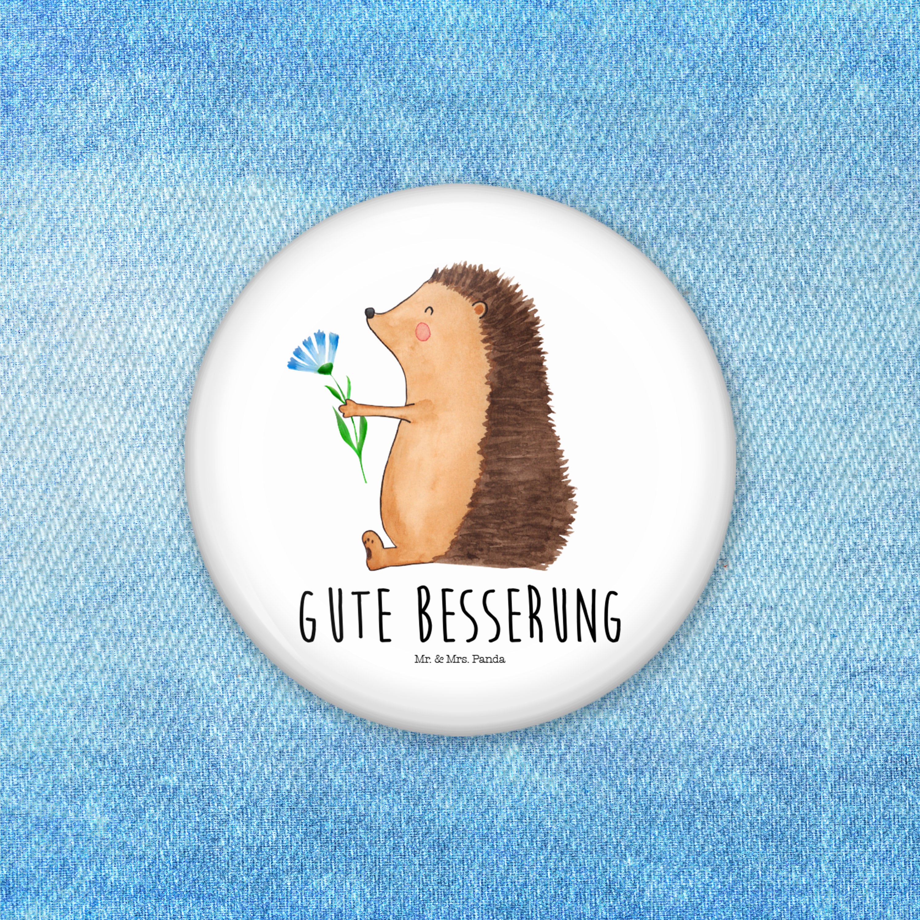 50mm Button Igel mit Blume - mit Spruch - Weiß