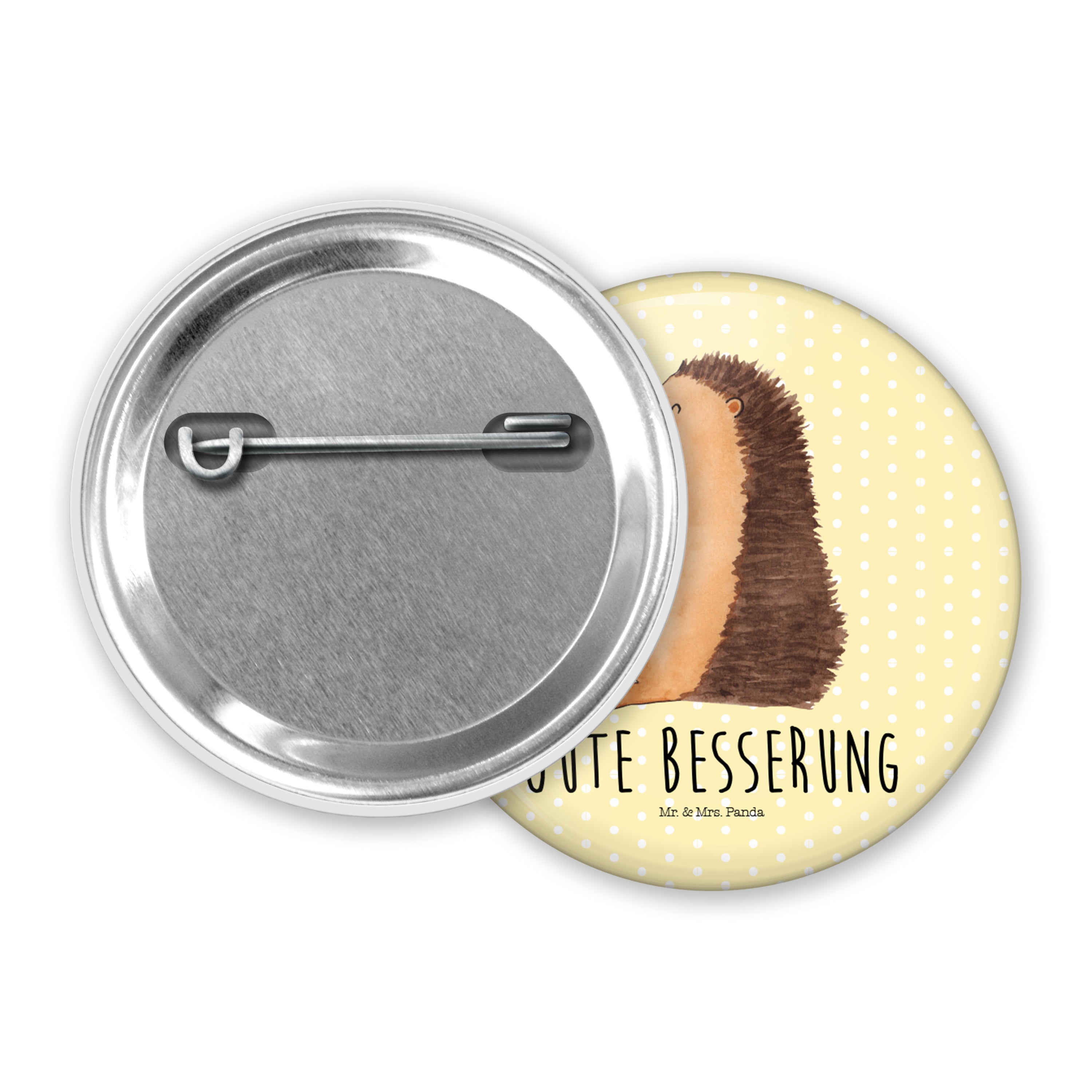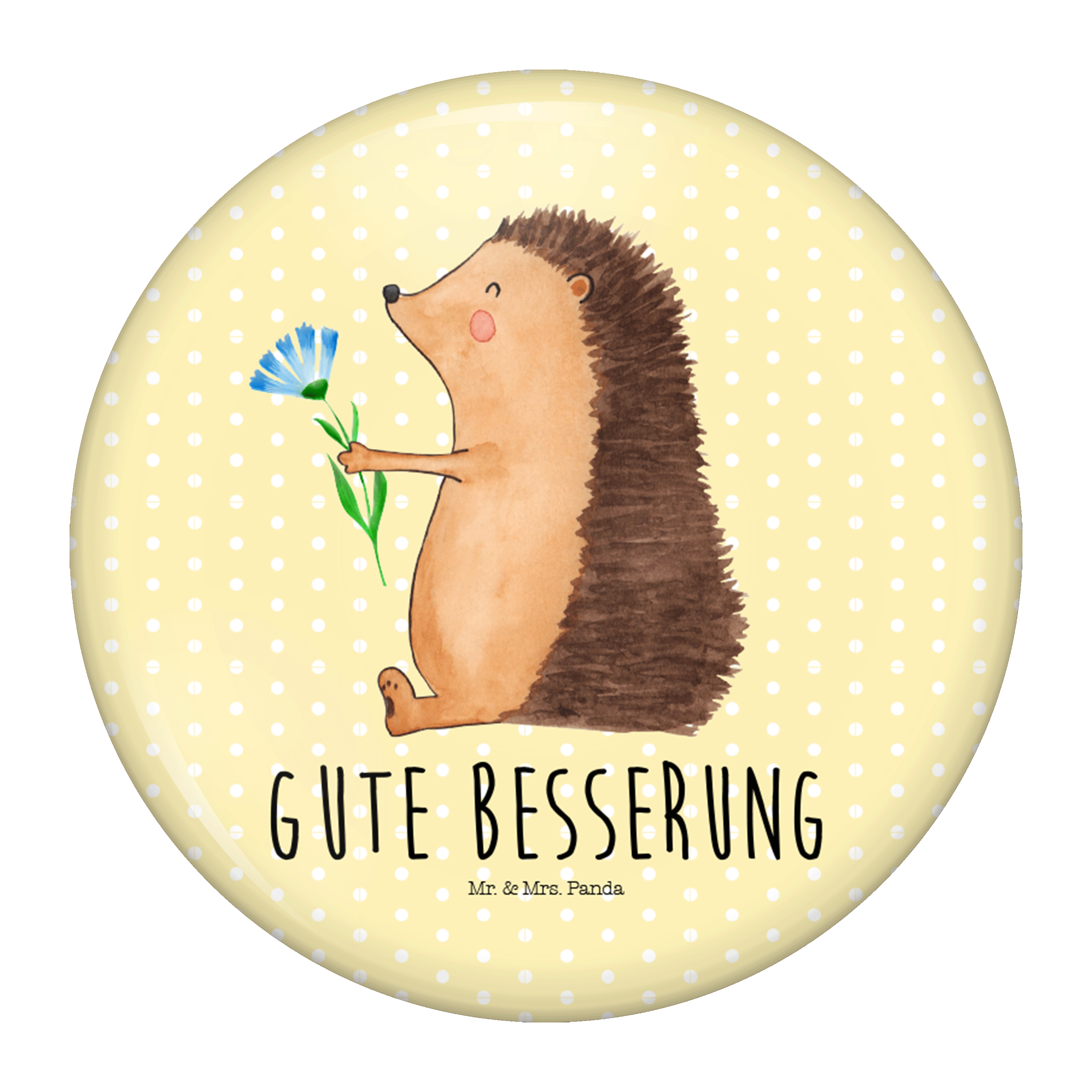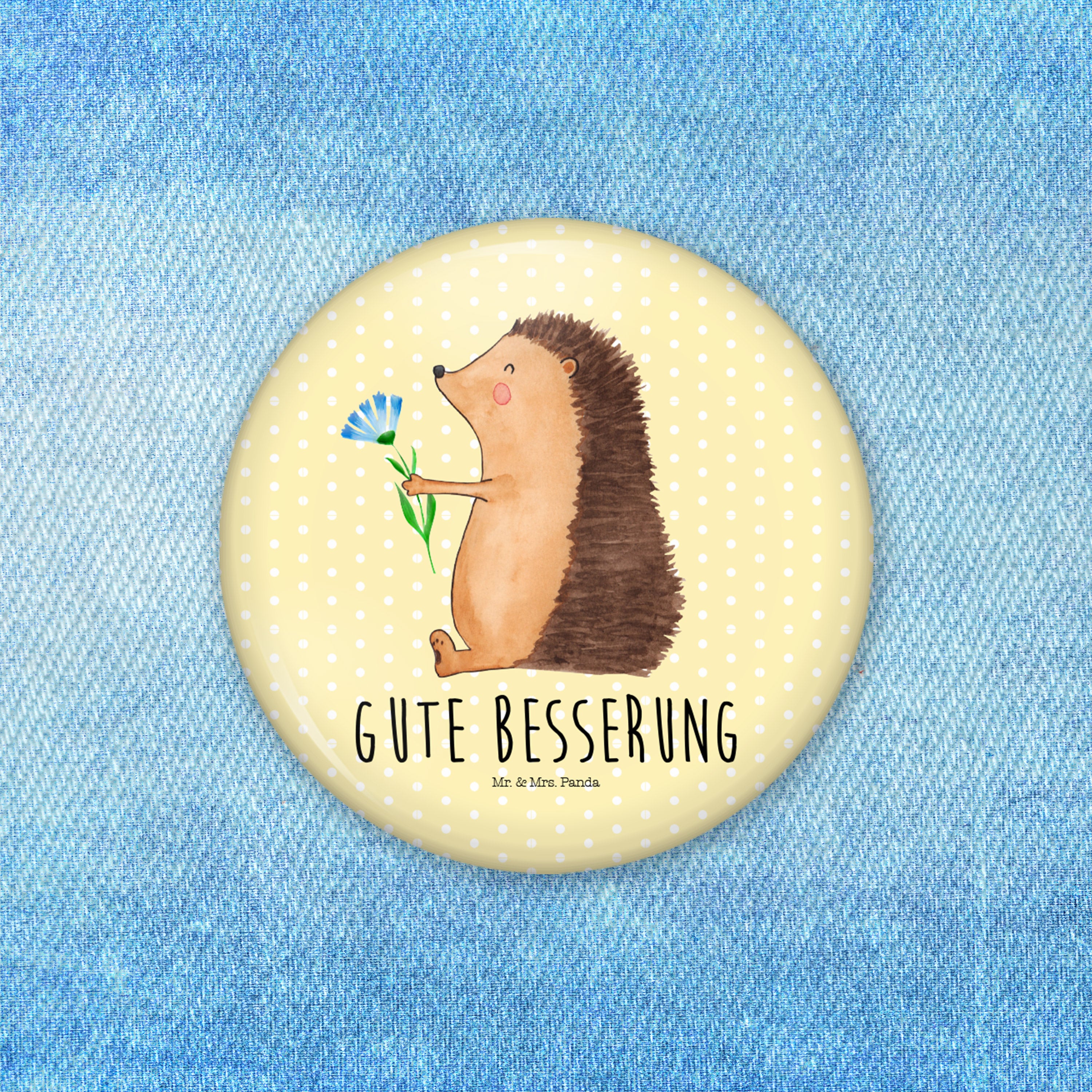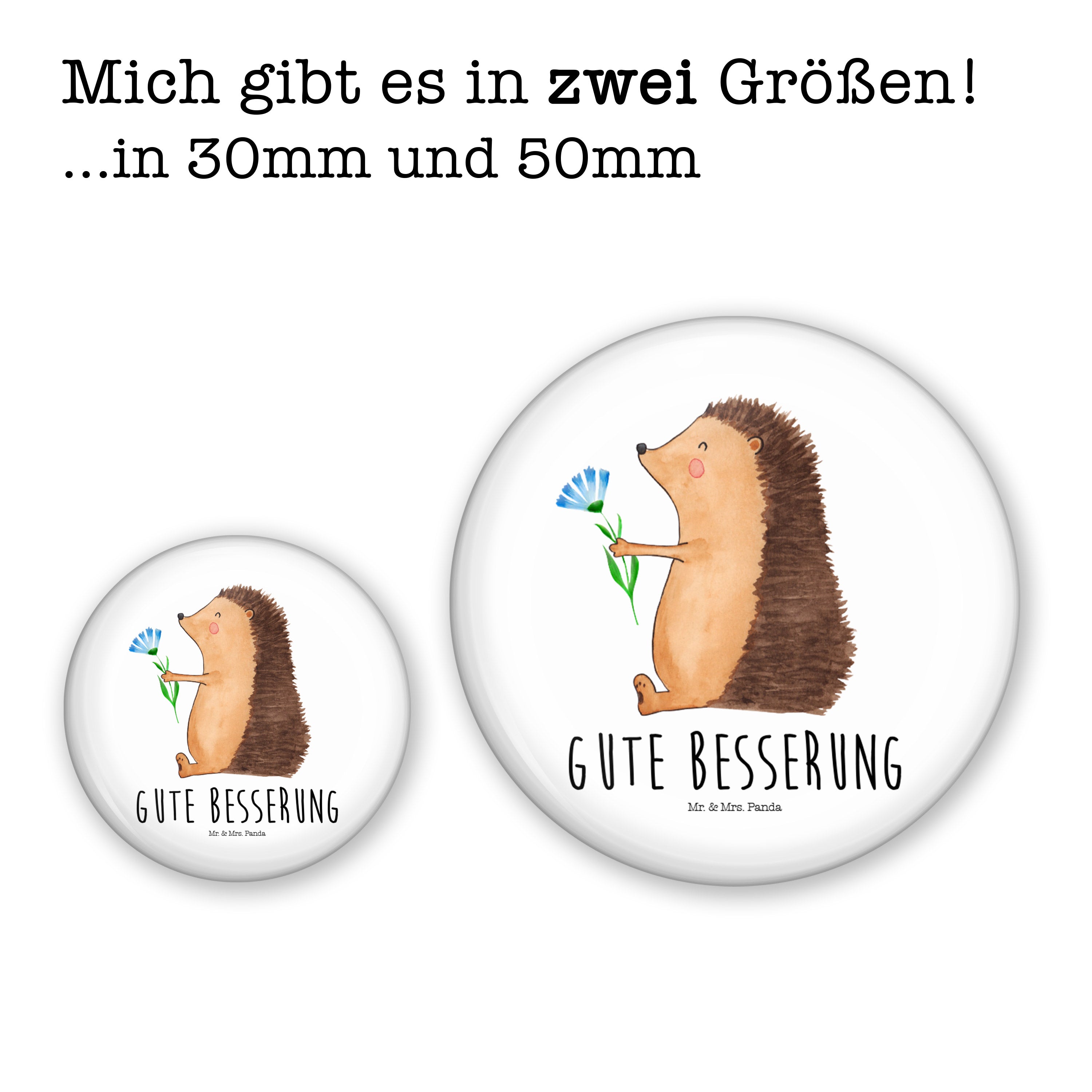 50mm Button Igel mit Blume - mit Spruch - Weiß