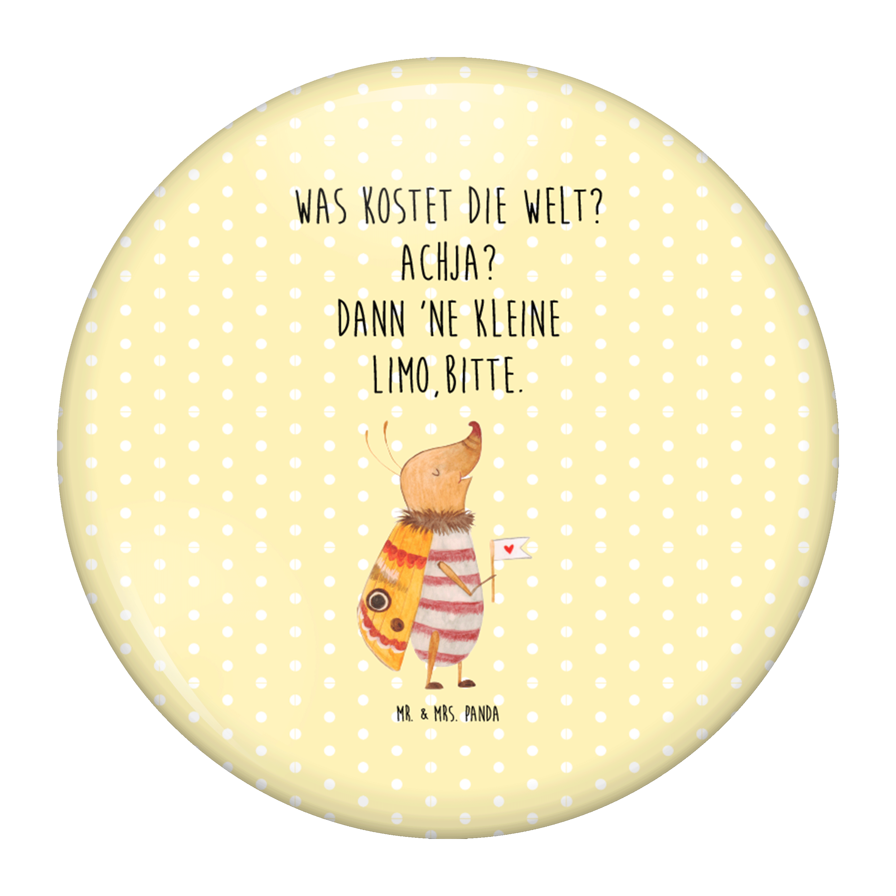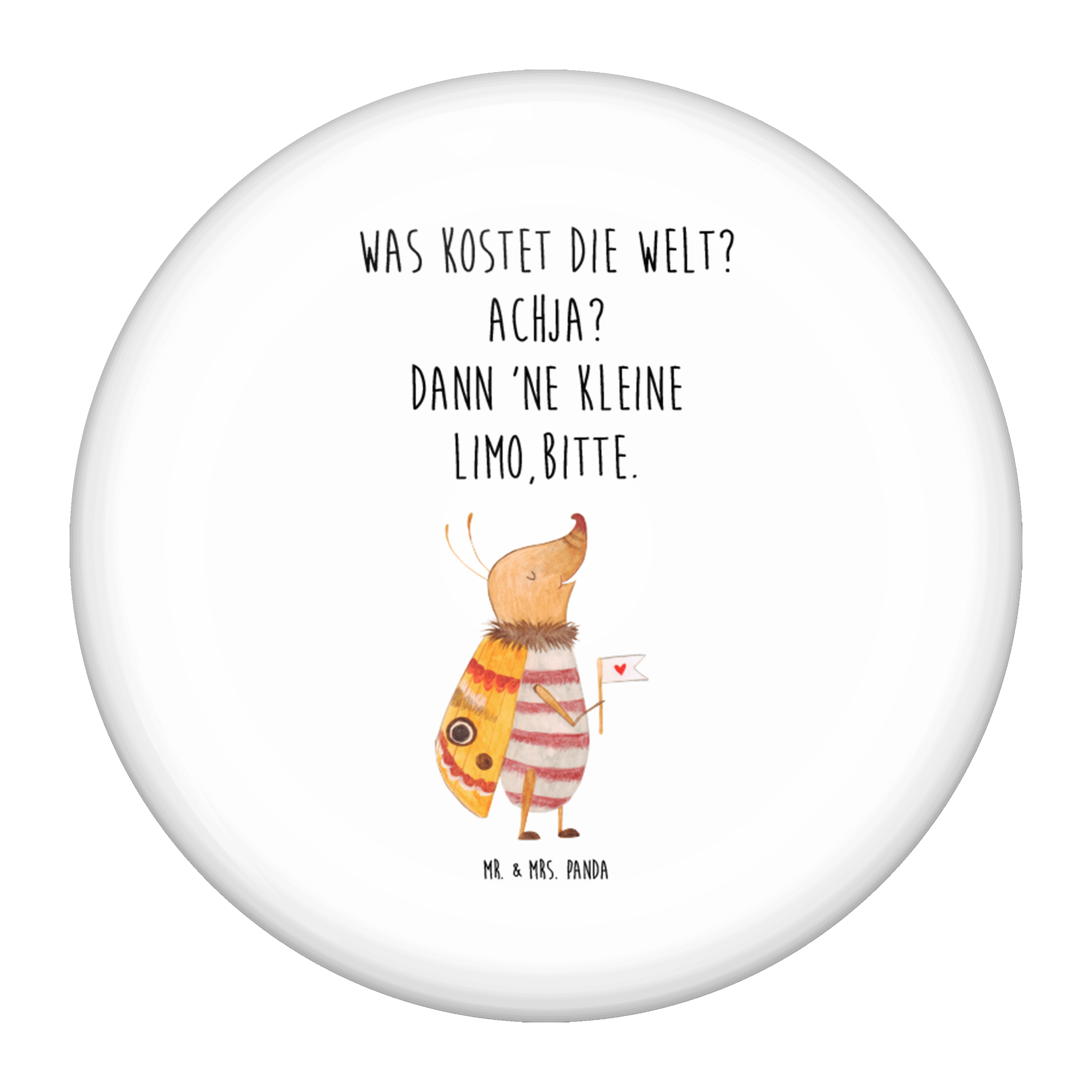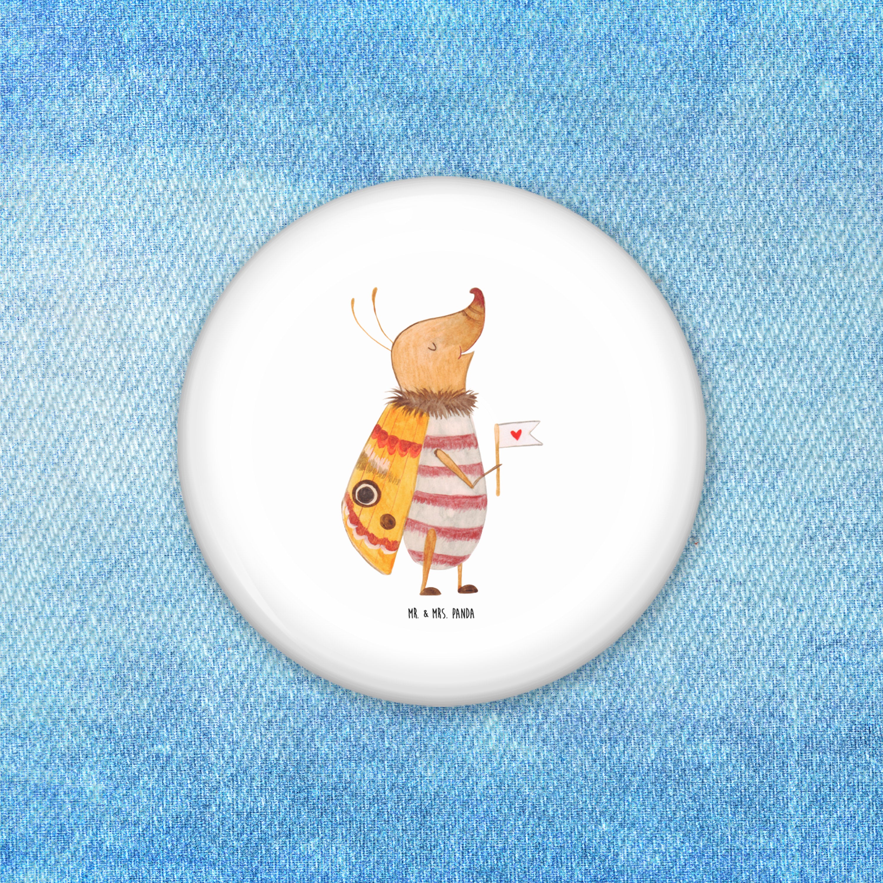 50mm Button Nachtfalter mit Fähnchen - mit Spruch - Weiß