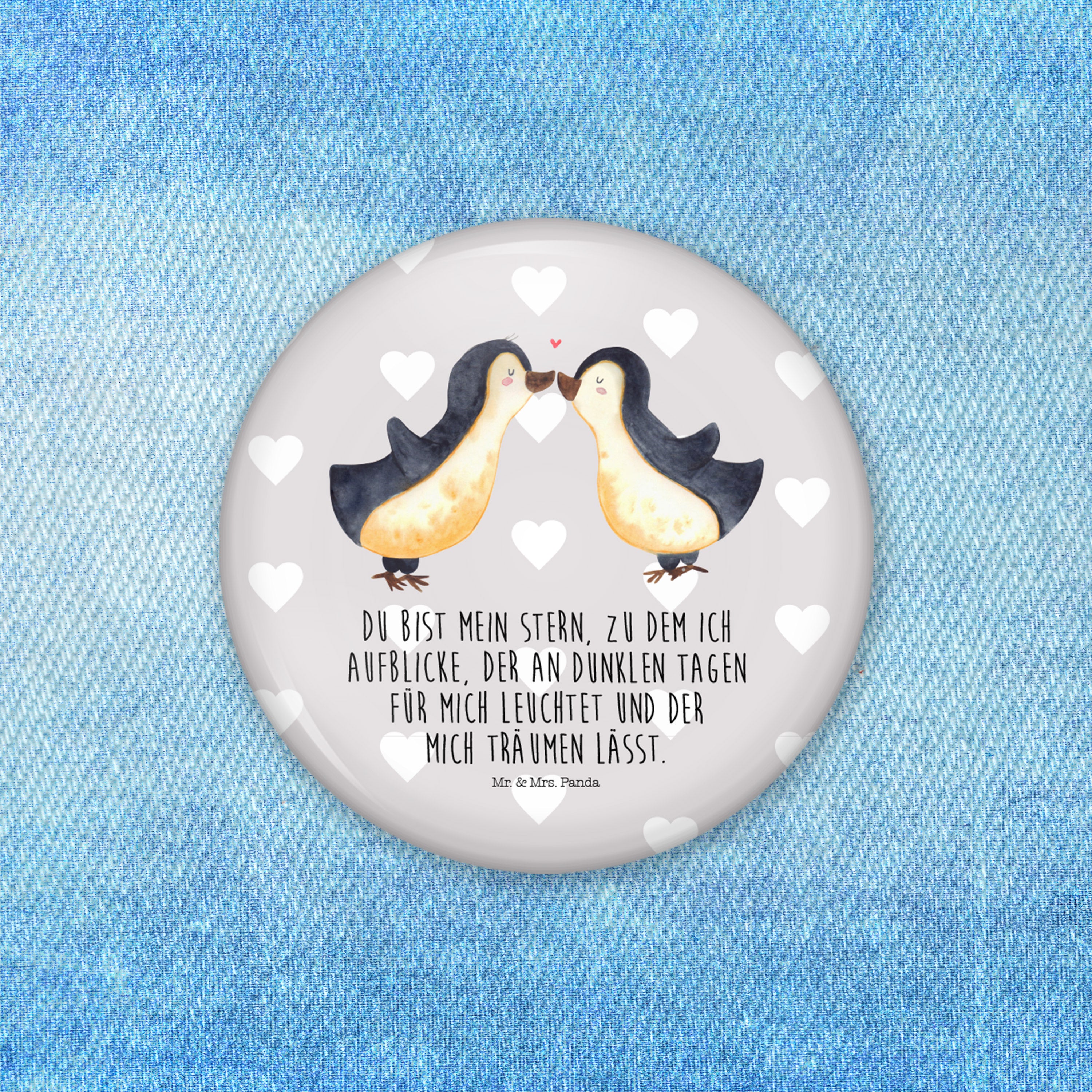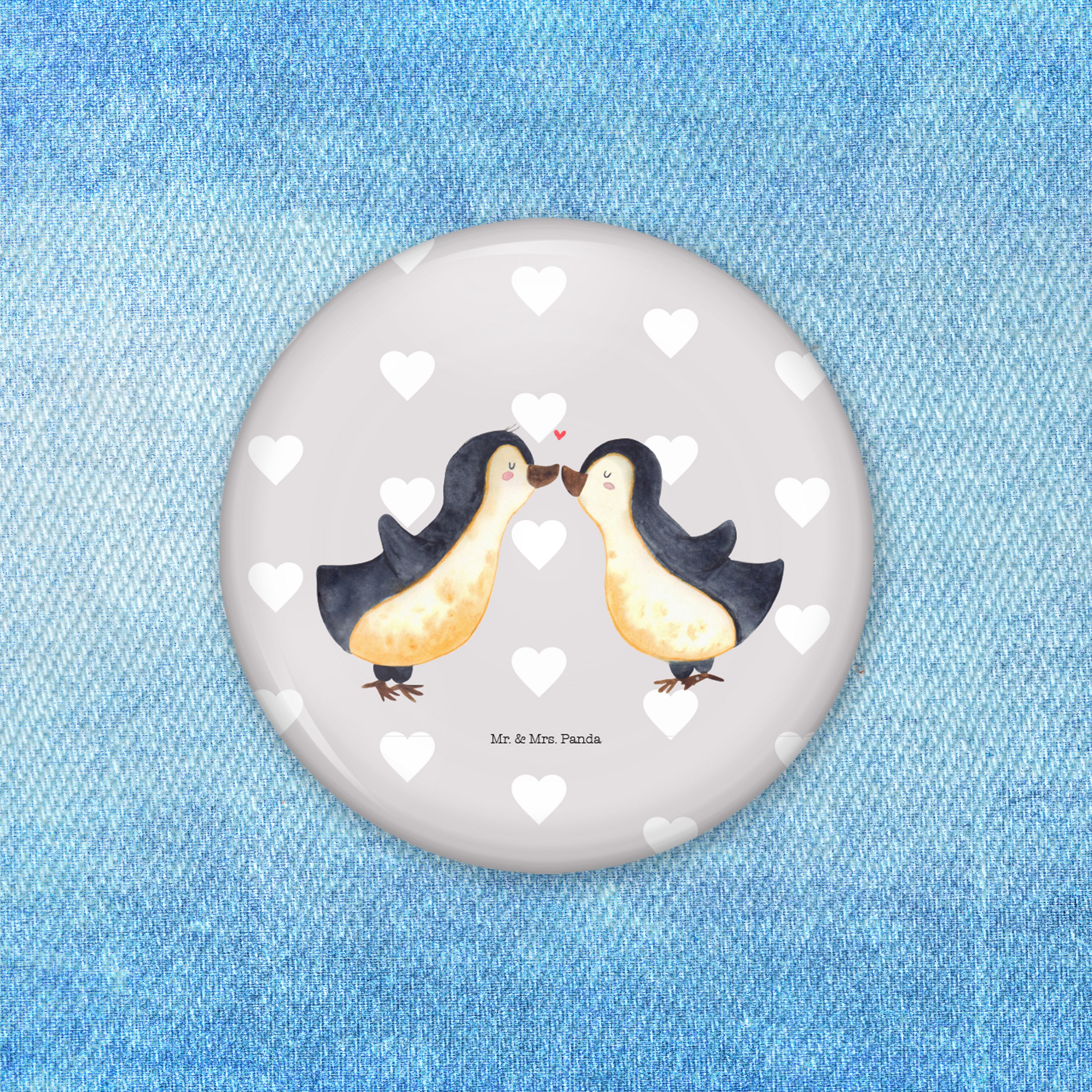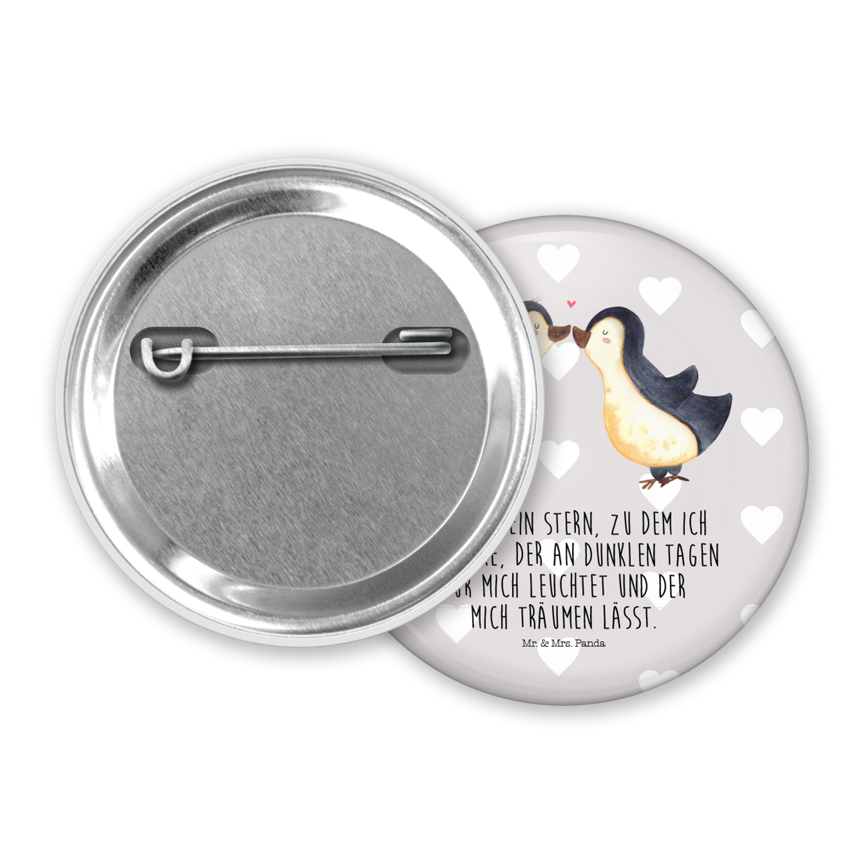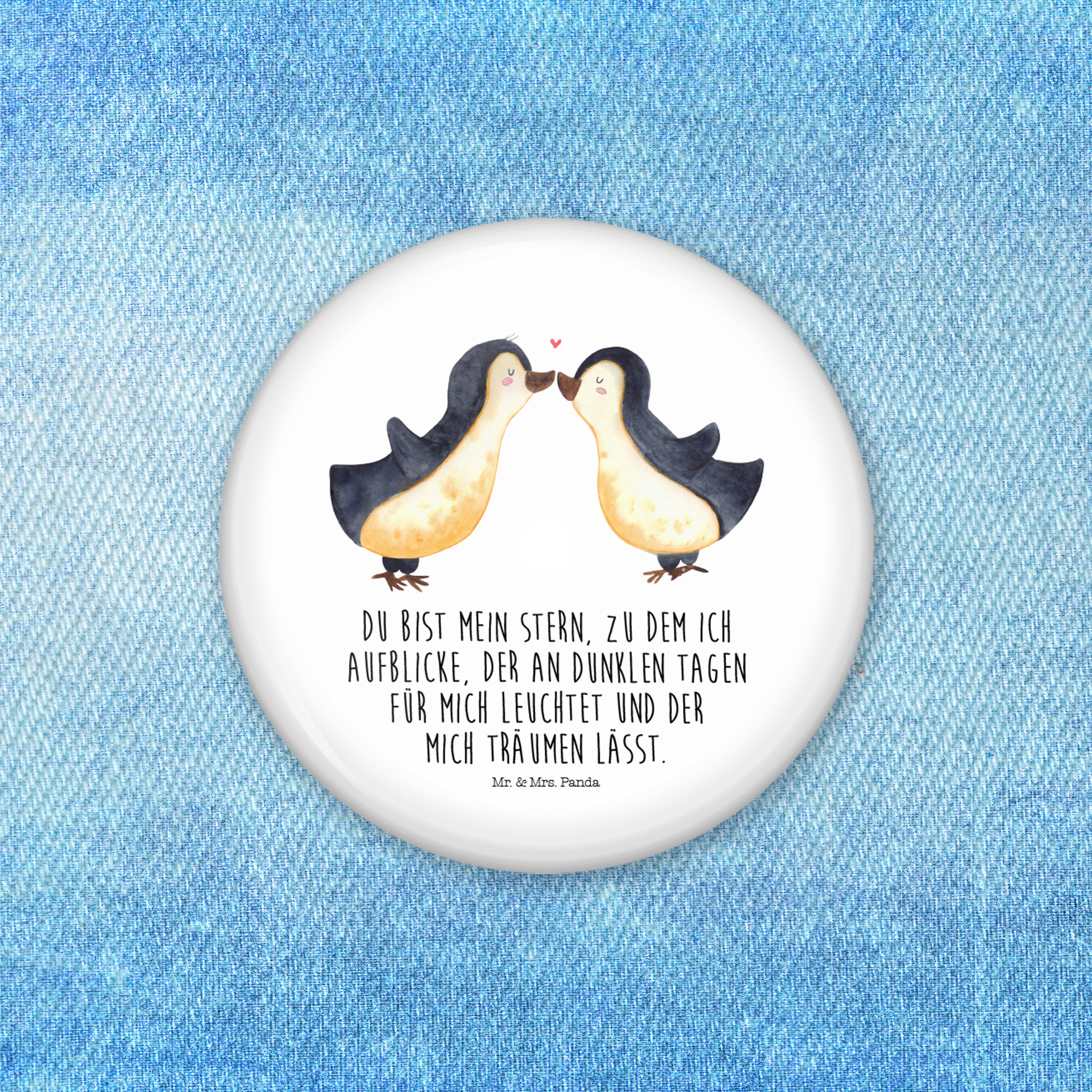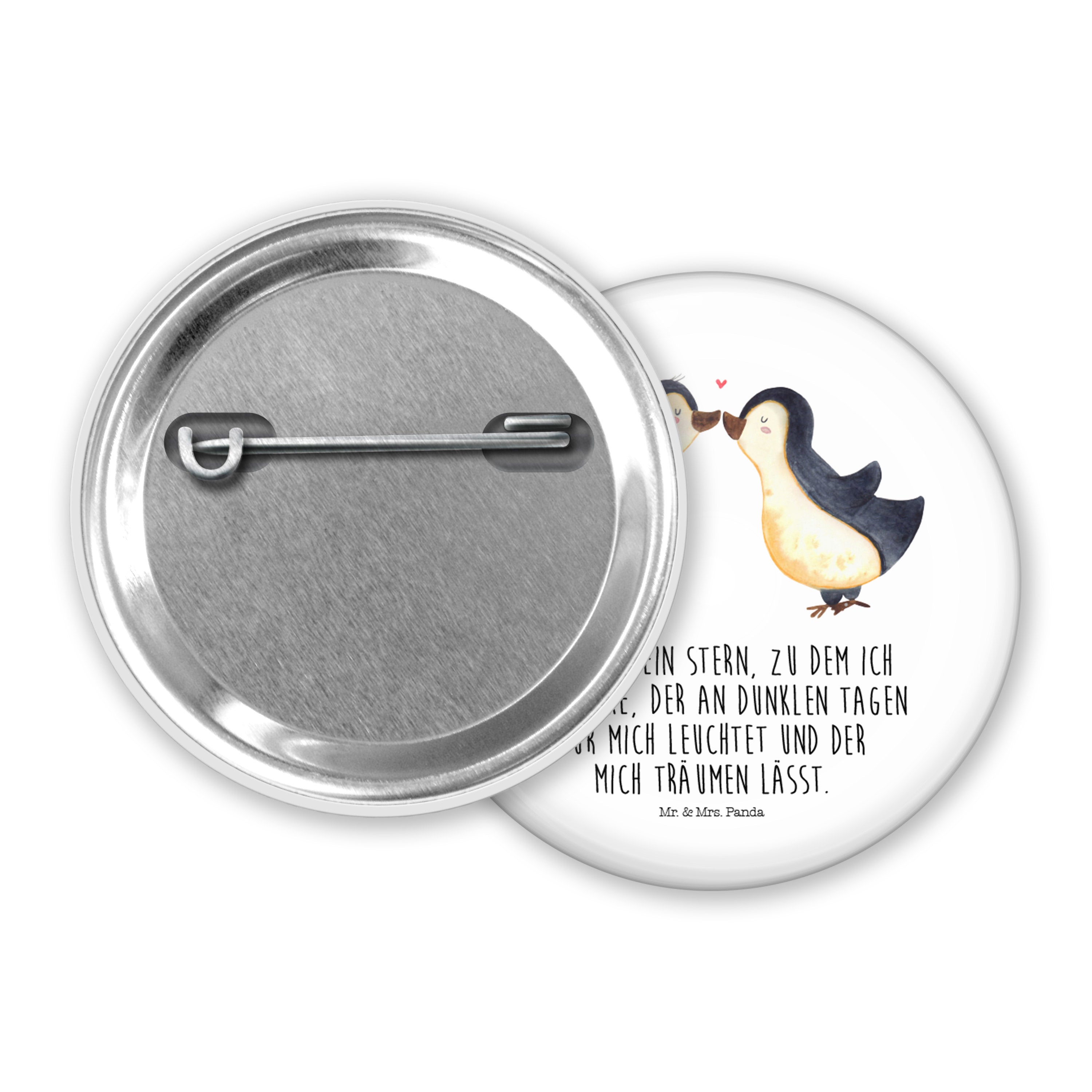 50mm Button Pinguin Liebe - mit Spruch - Weiß