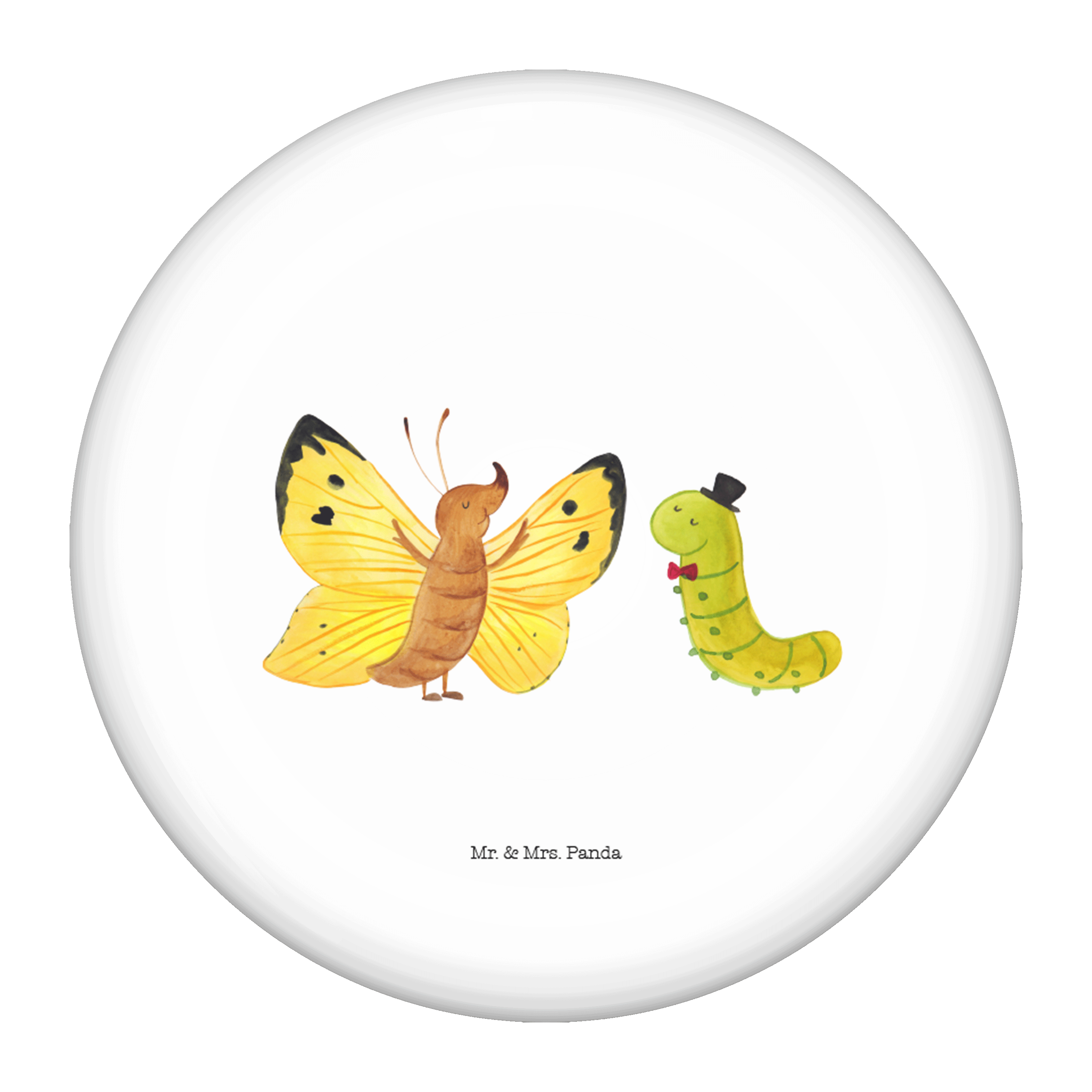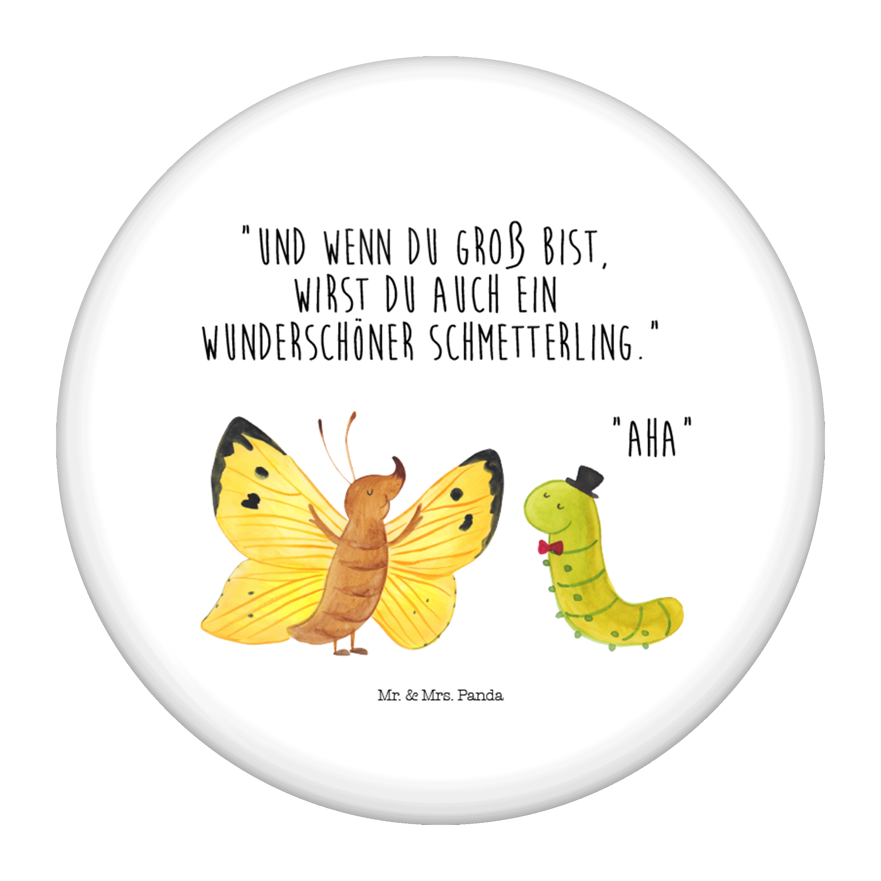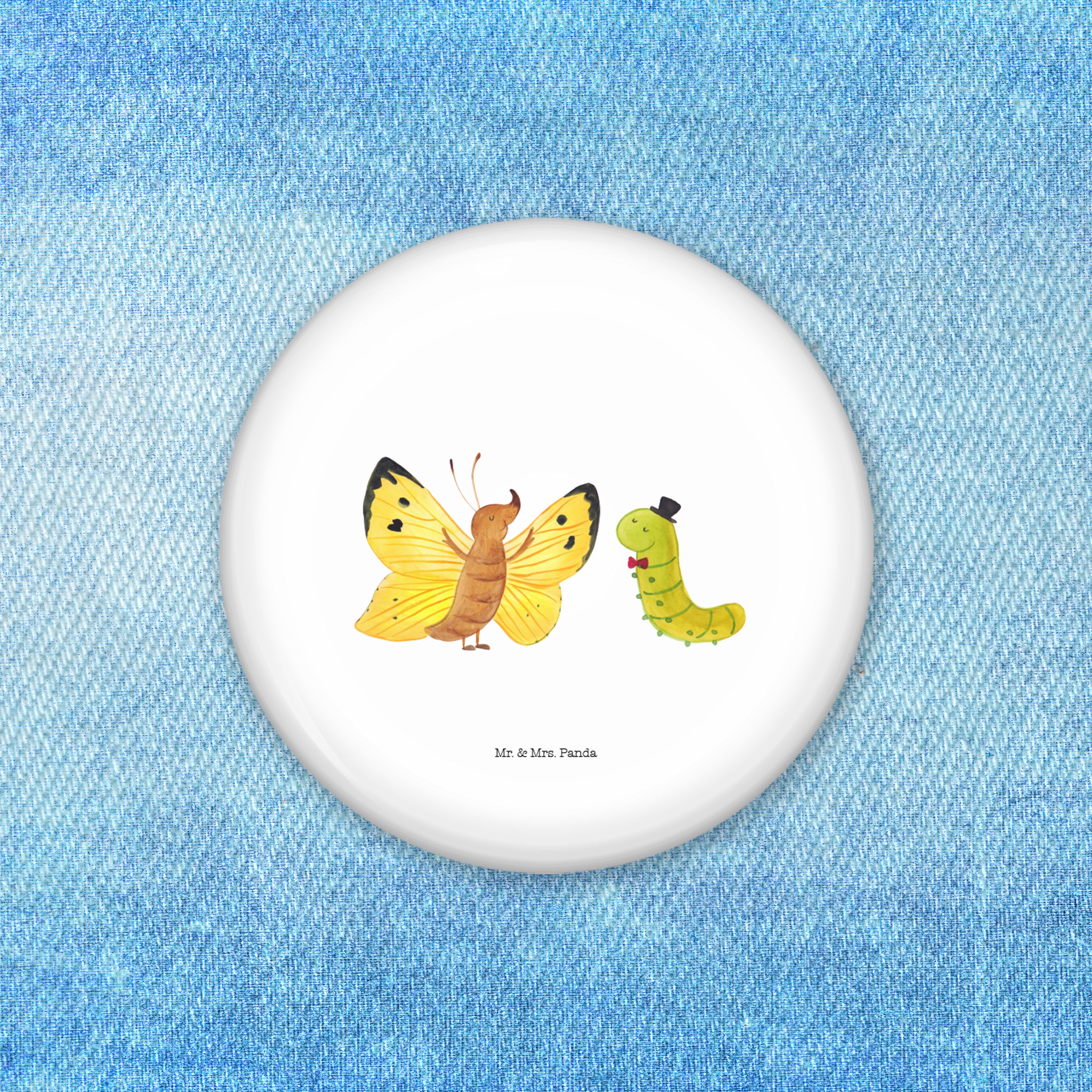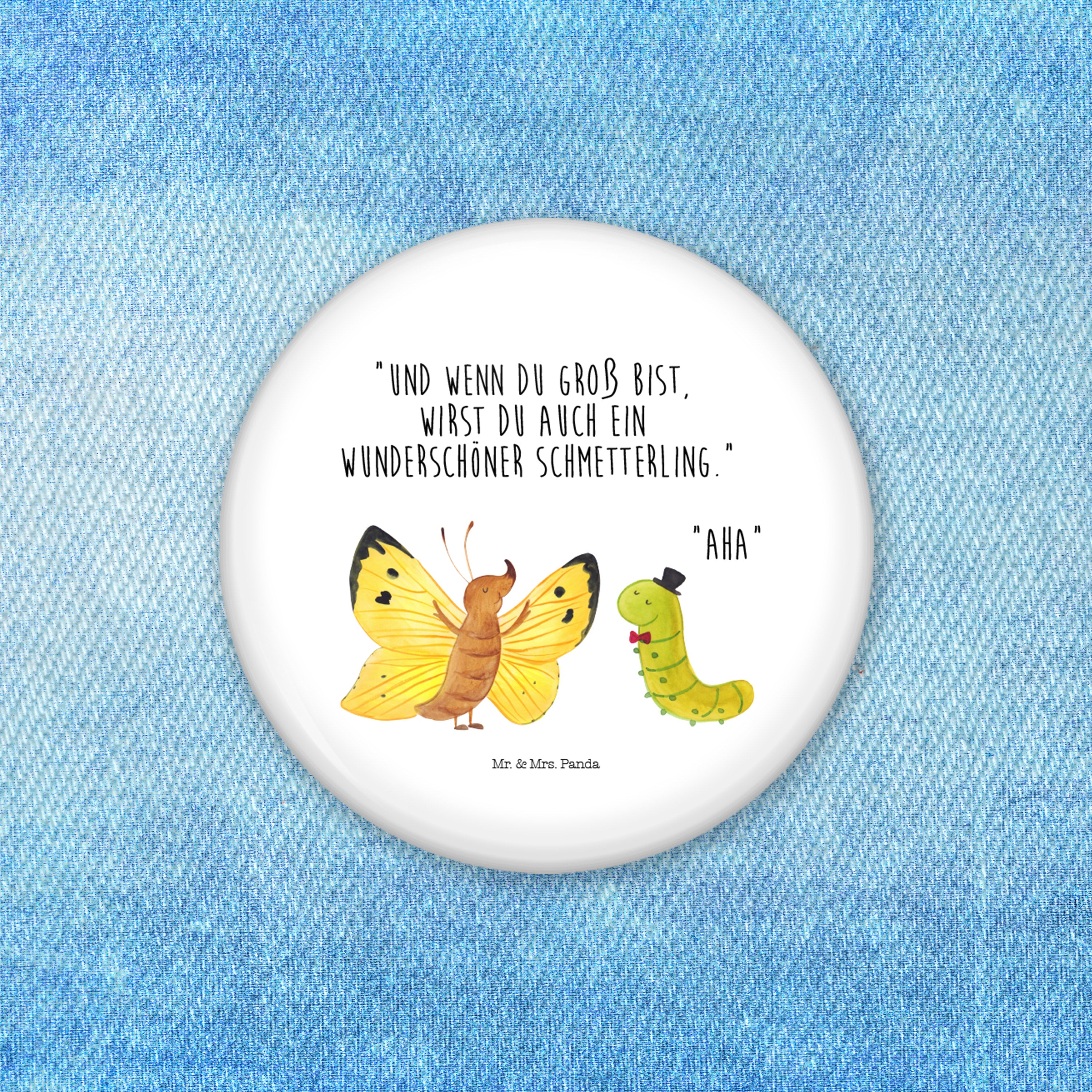 50mm Button Raupe & Schmetterling - mit Spruch - Weiß