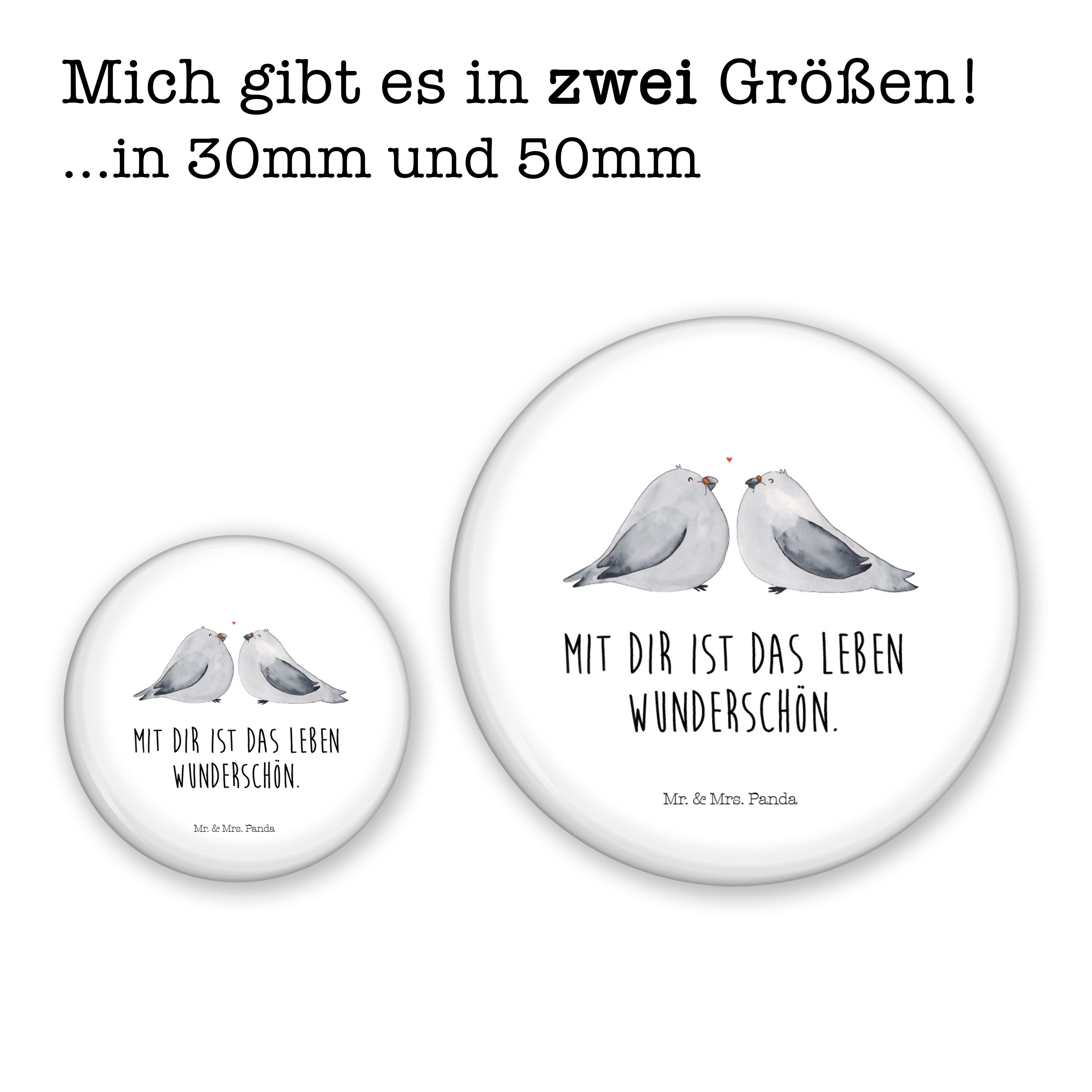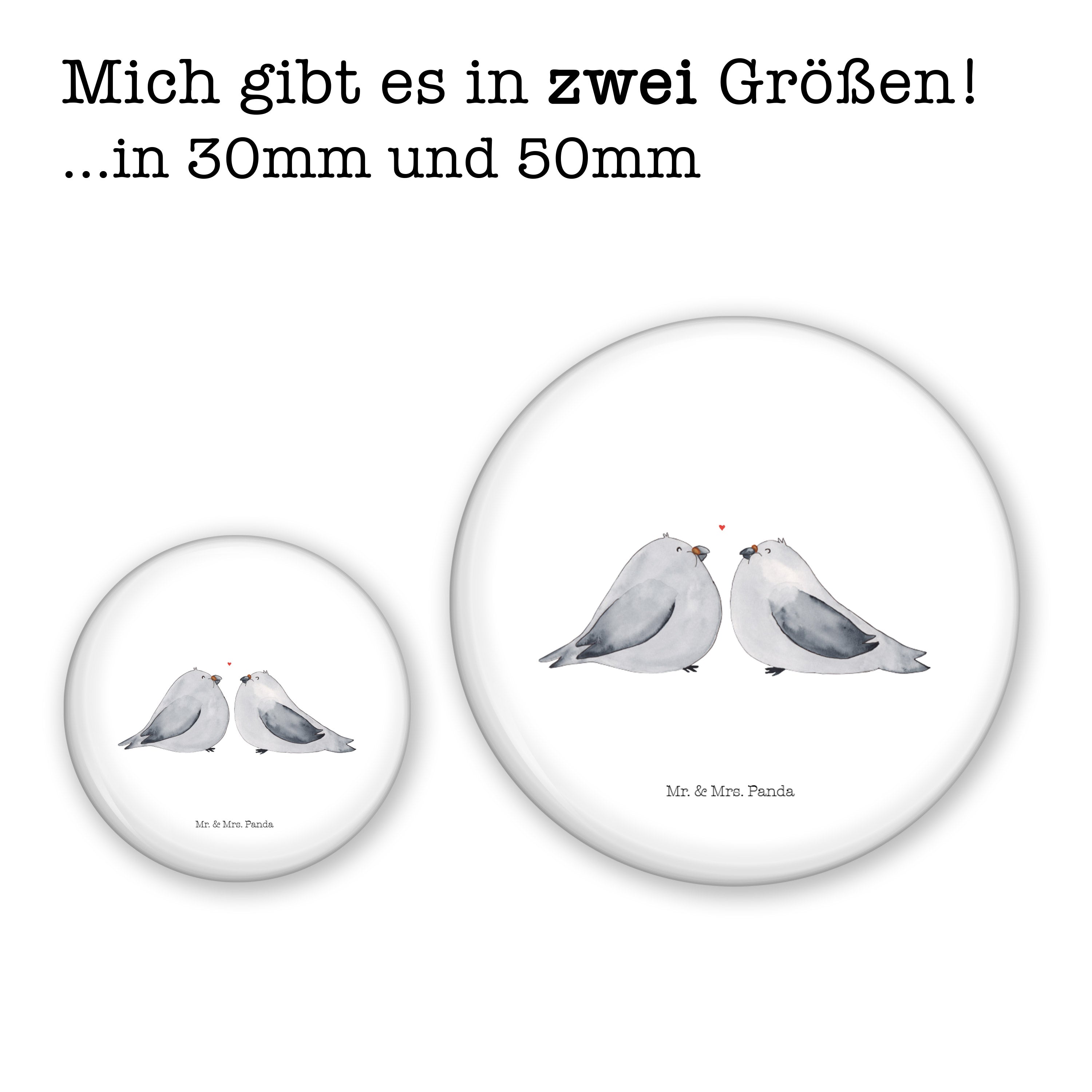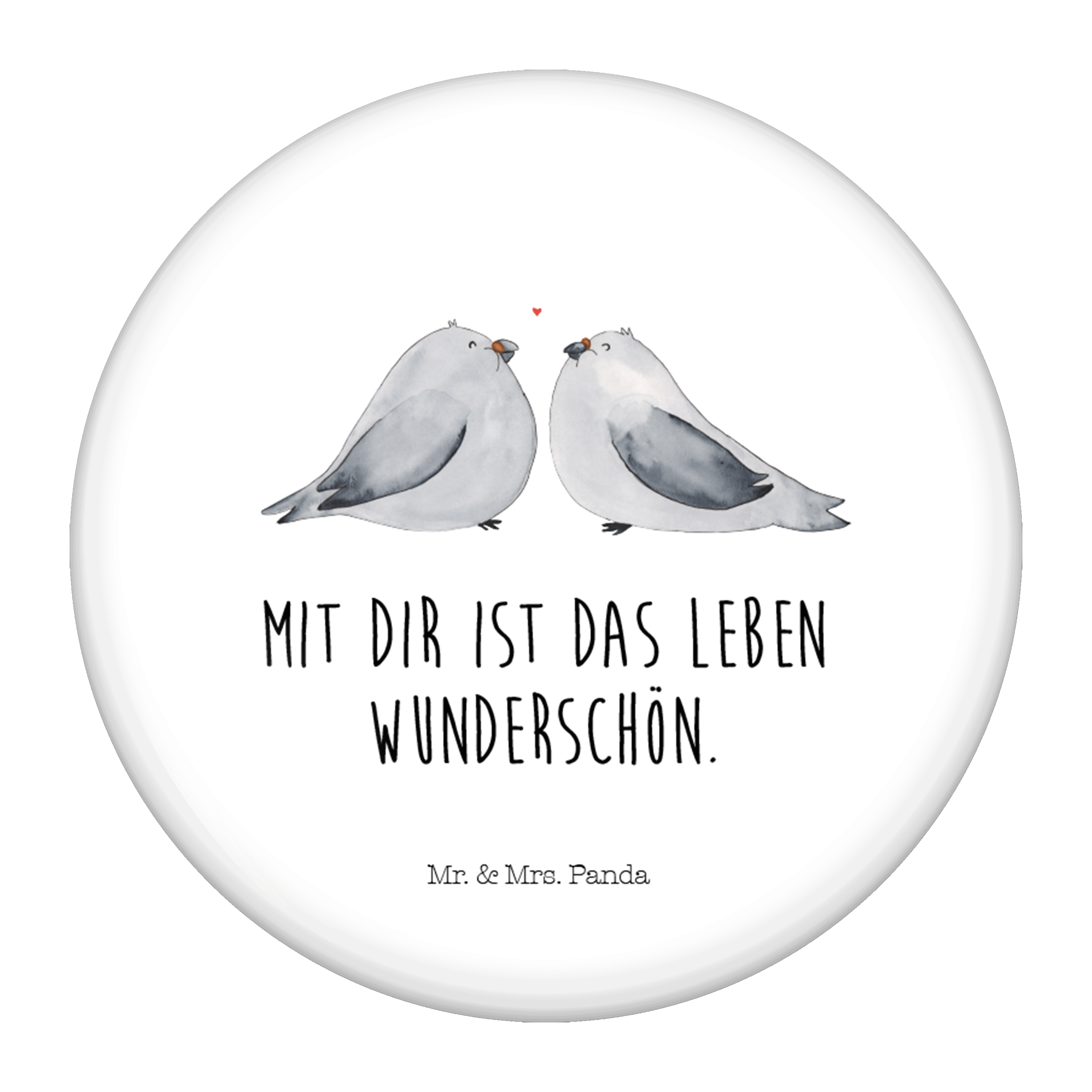50mm Button Turteltauben Liebe - mit Spruch - Weiß