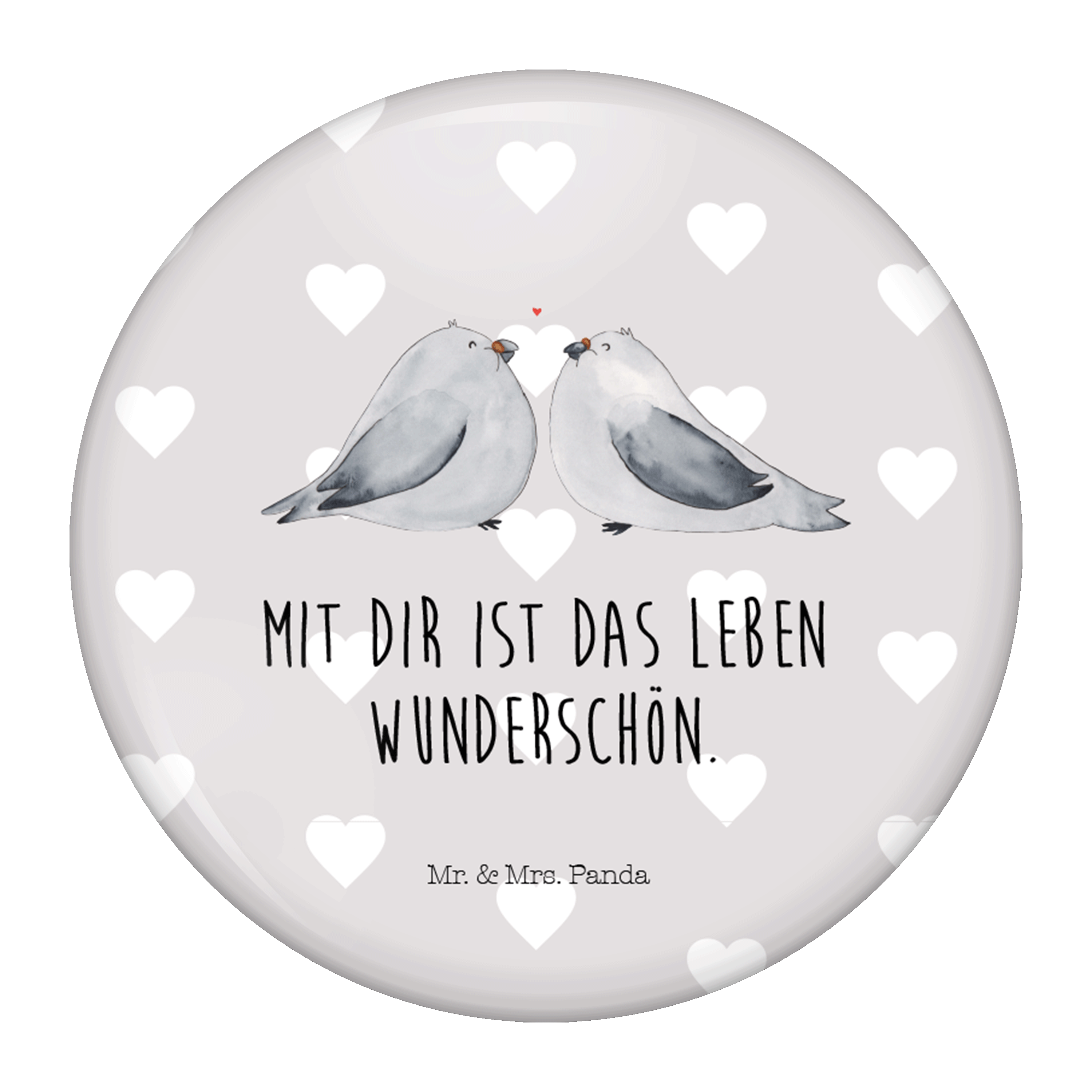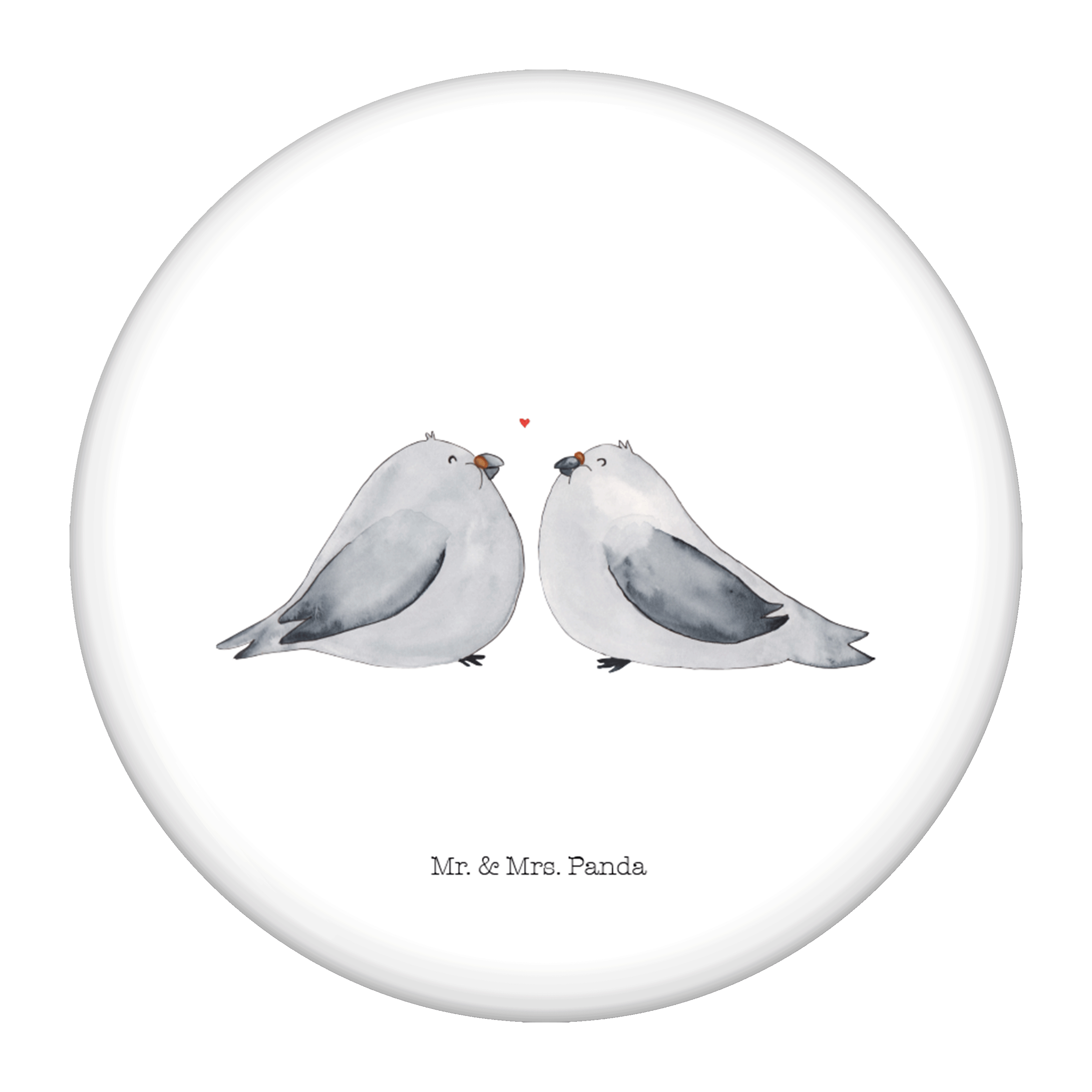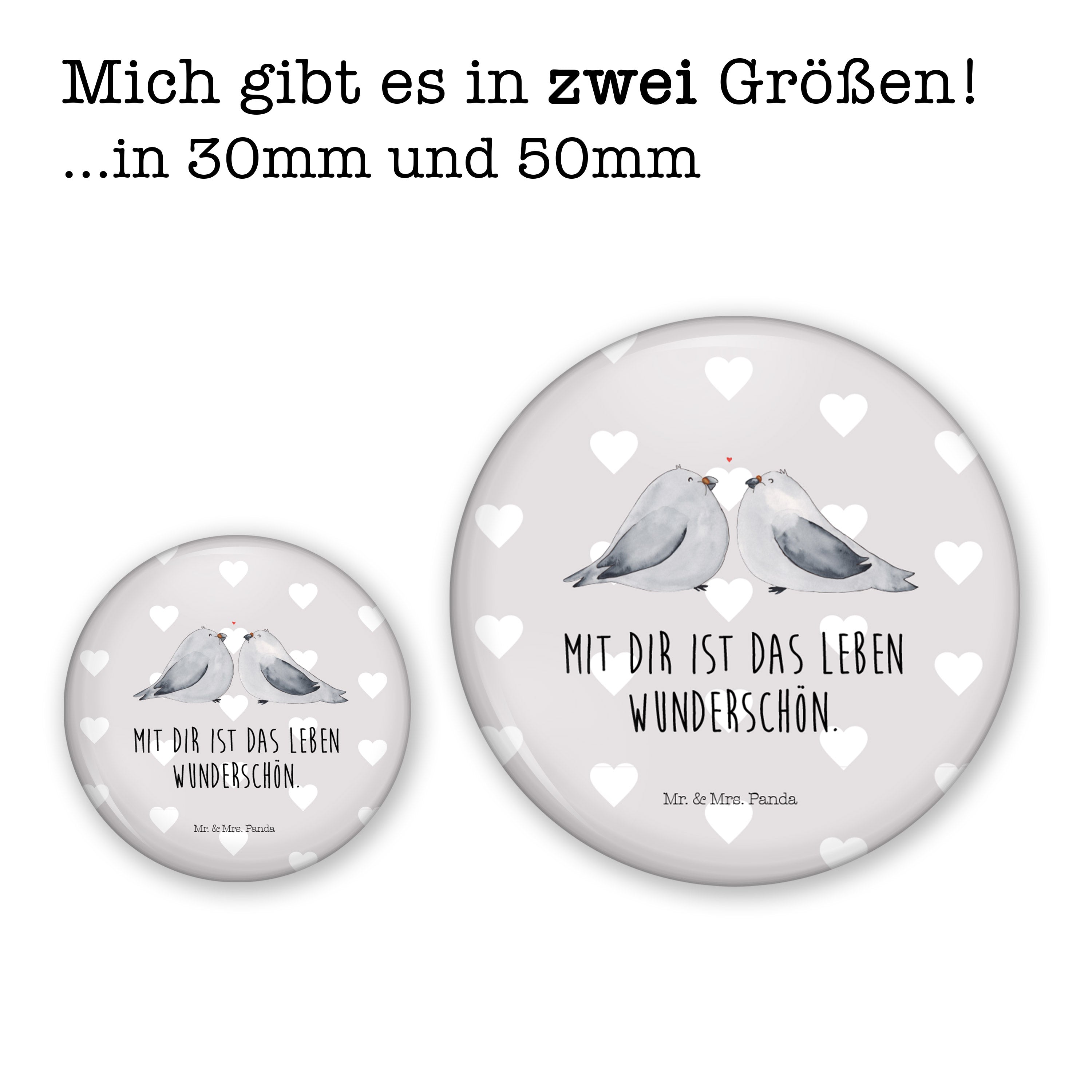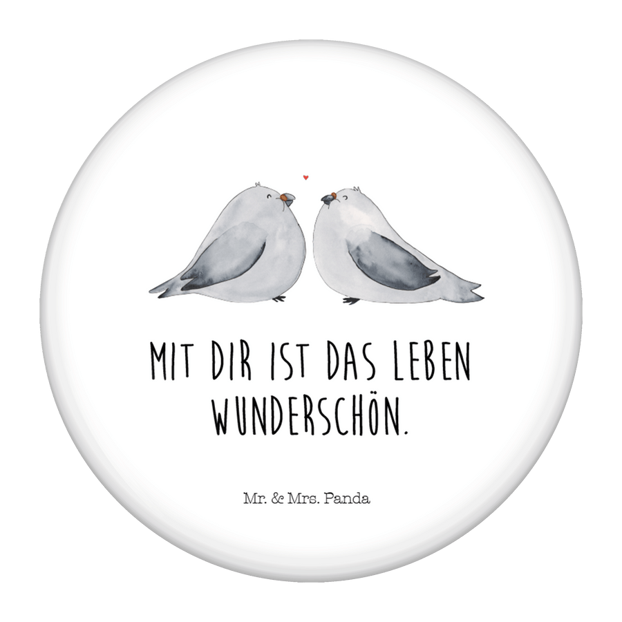 50mm Button Turteltauben Liebe - mit Spruch - Weiß