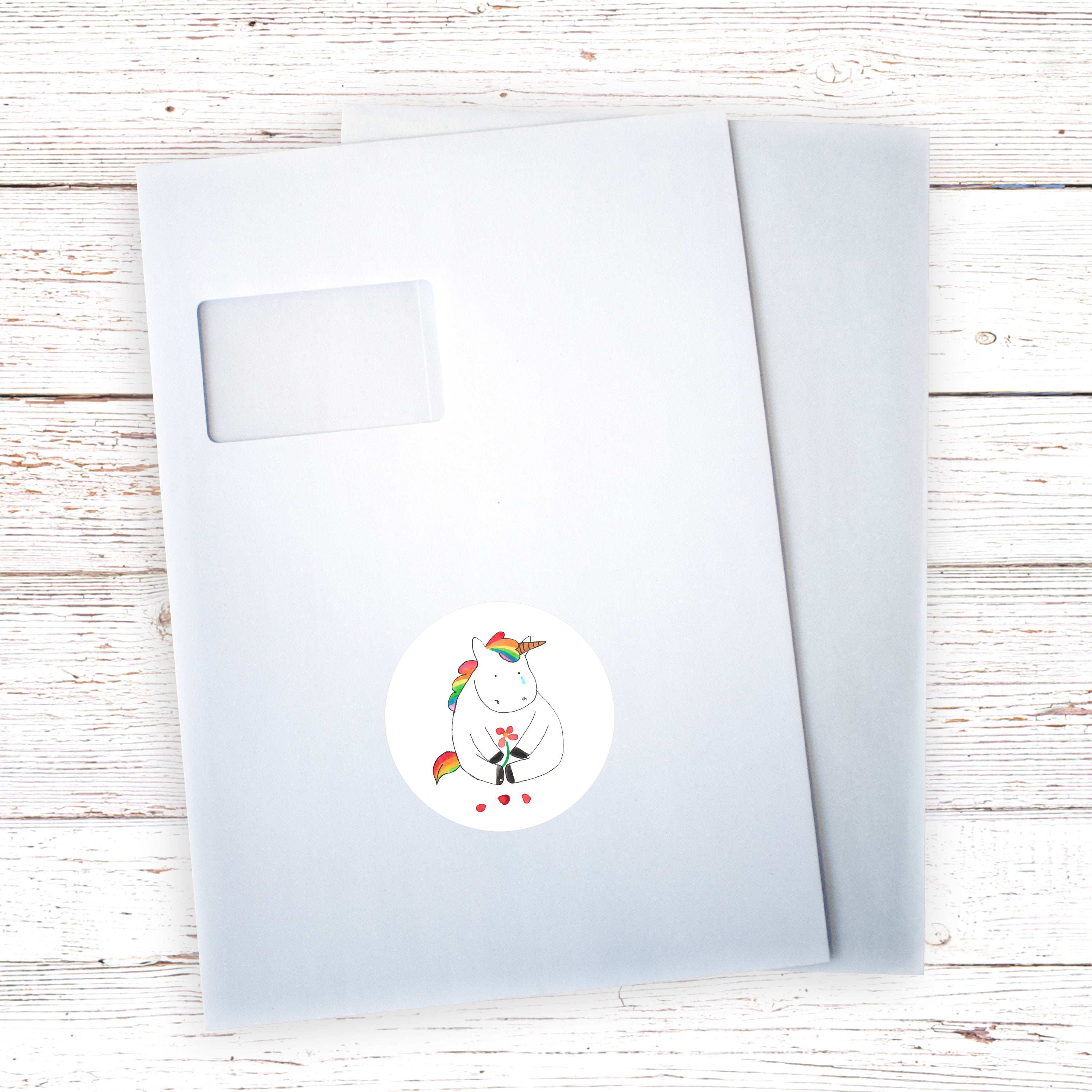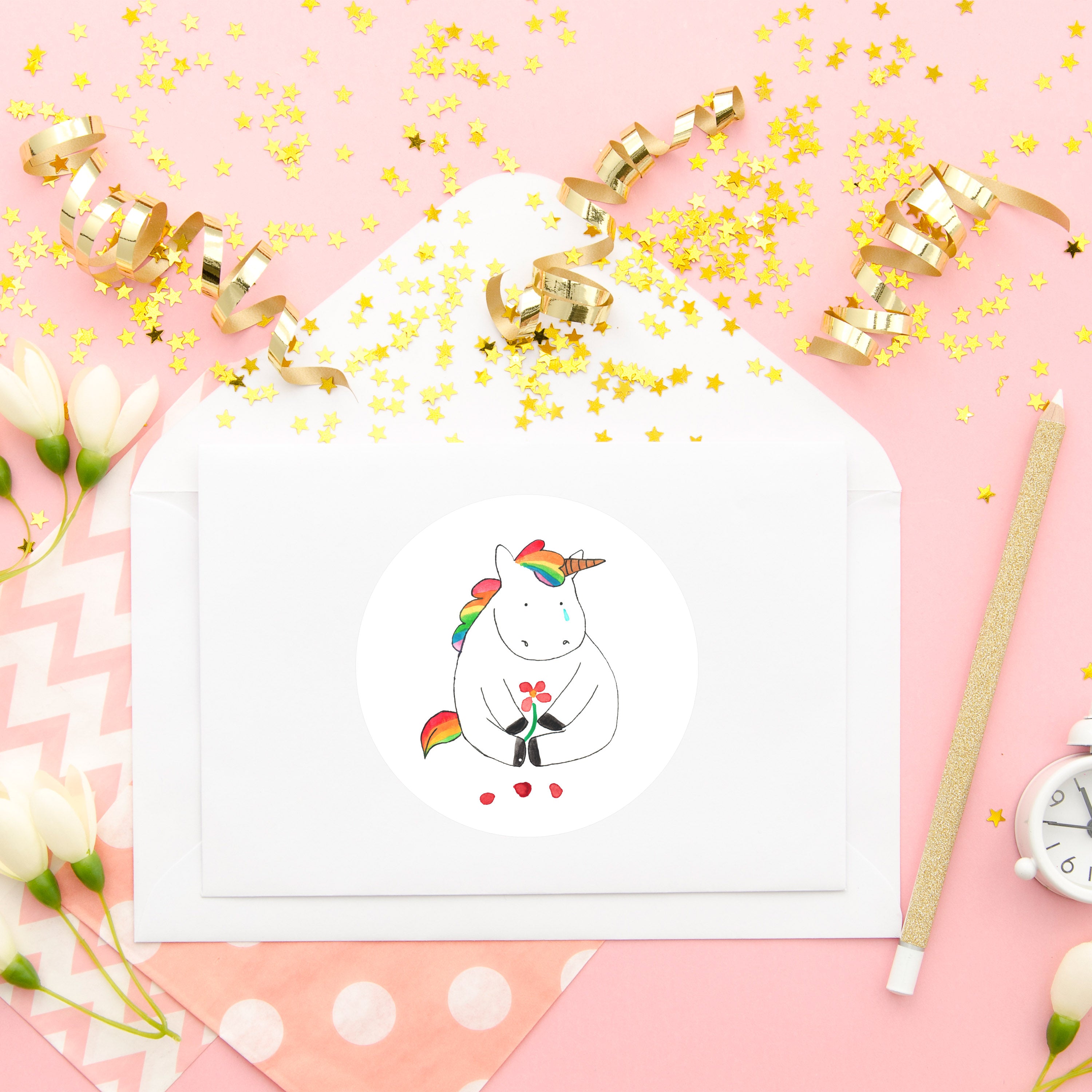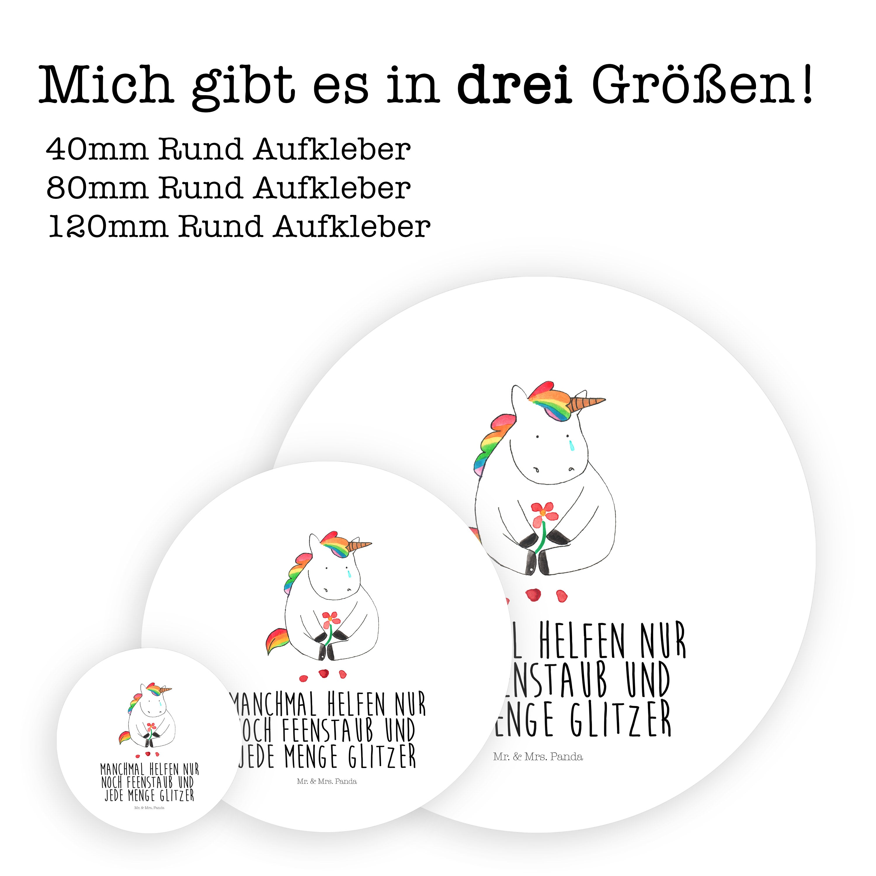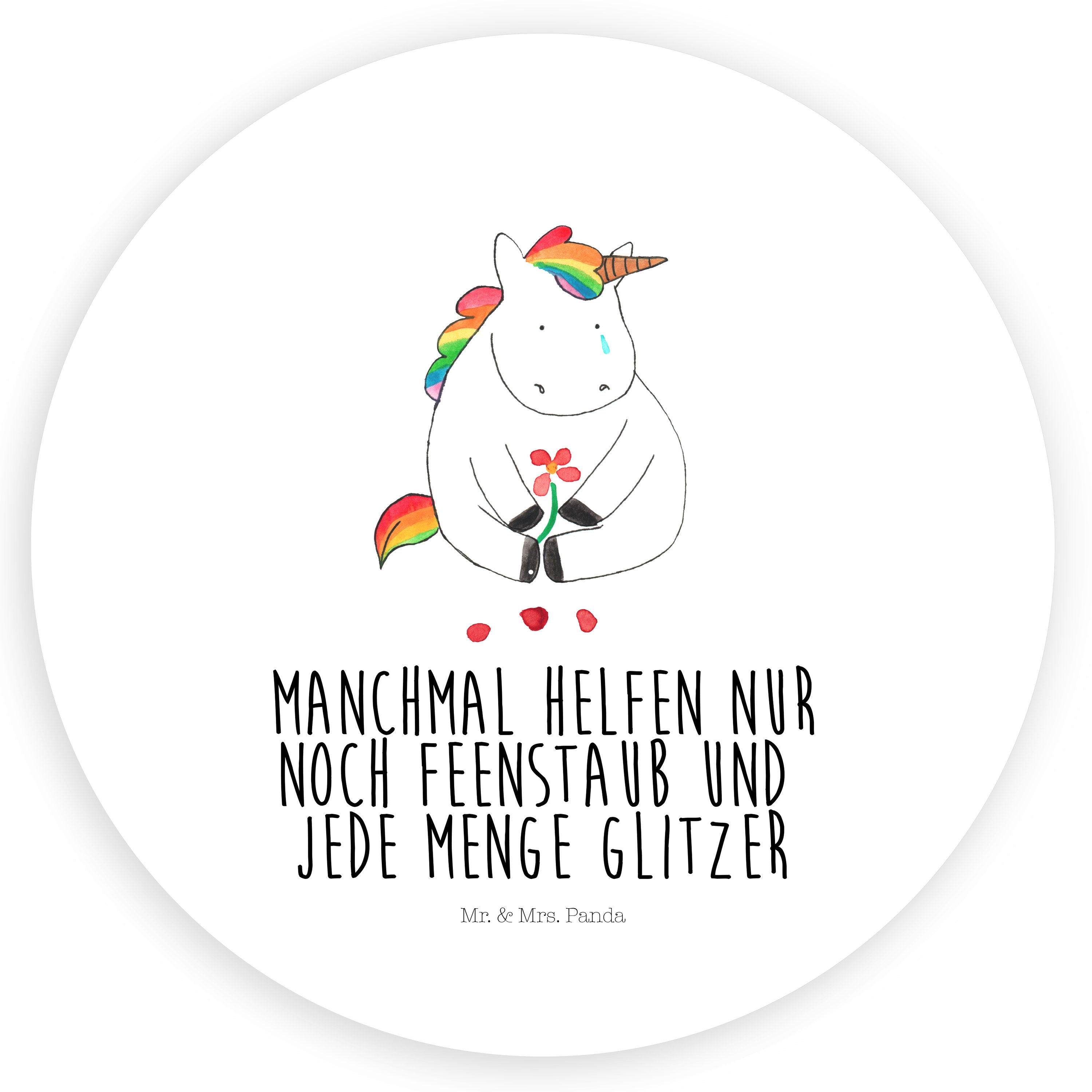 80mm Rund Aufkleber Einhorn Traurig - mit Spruch