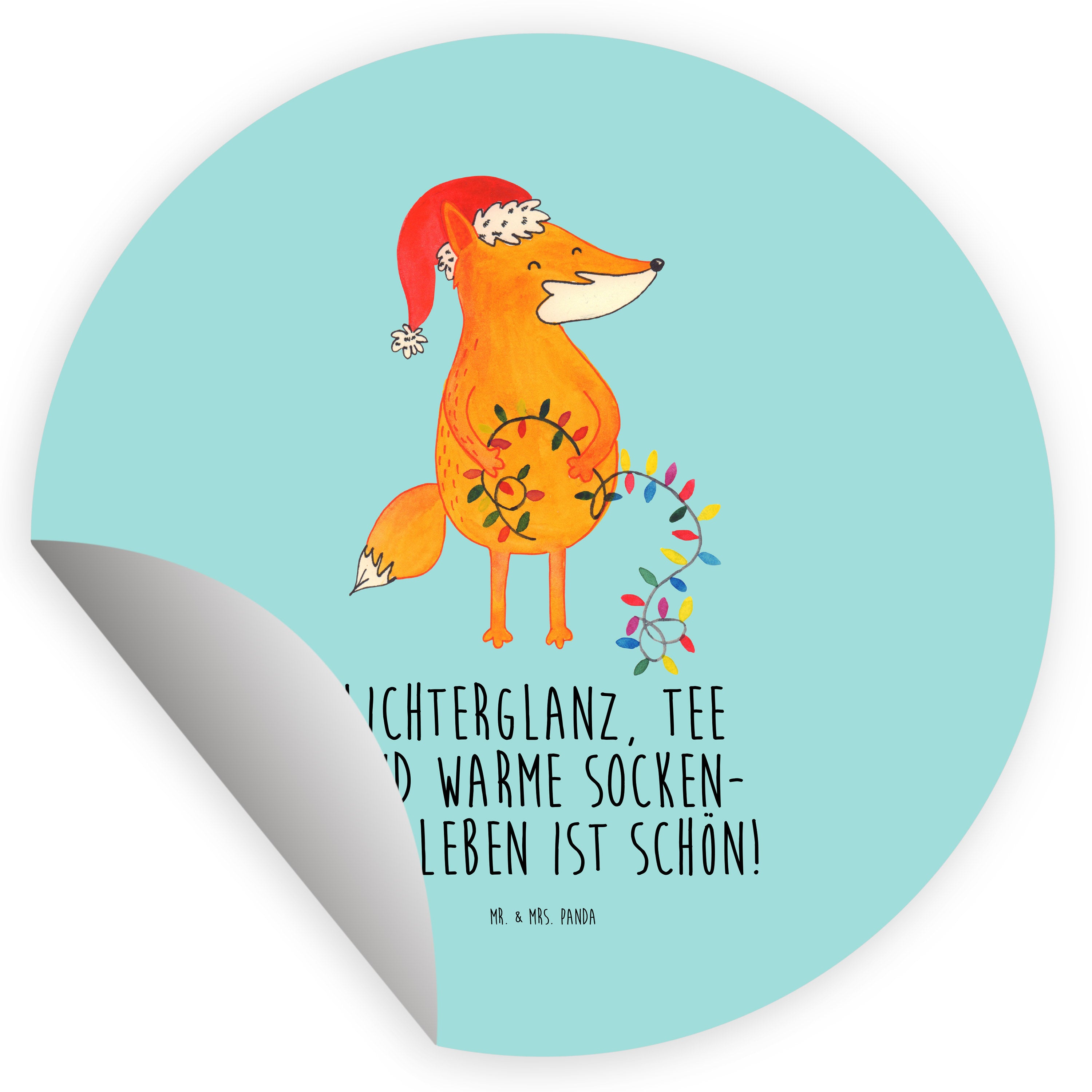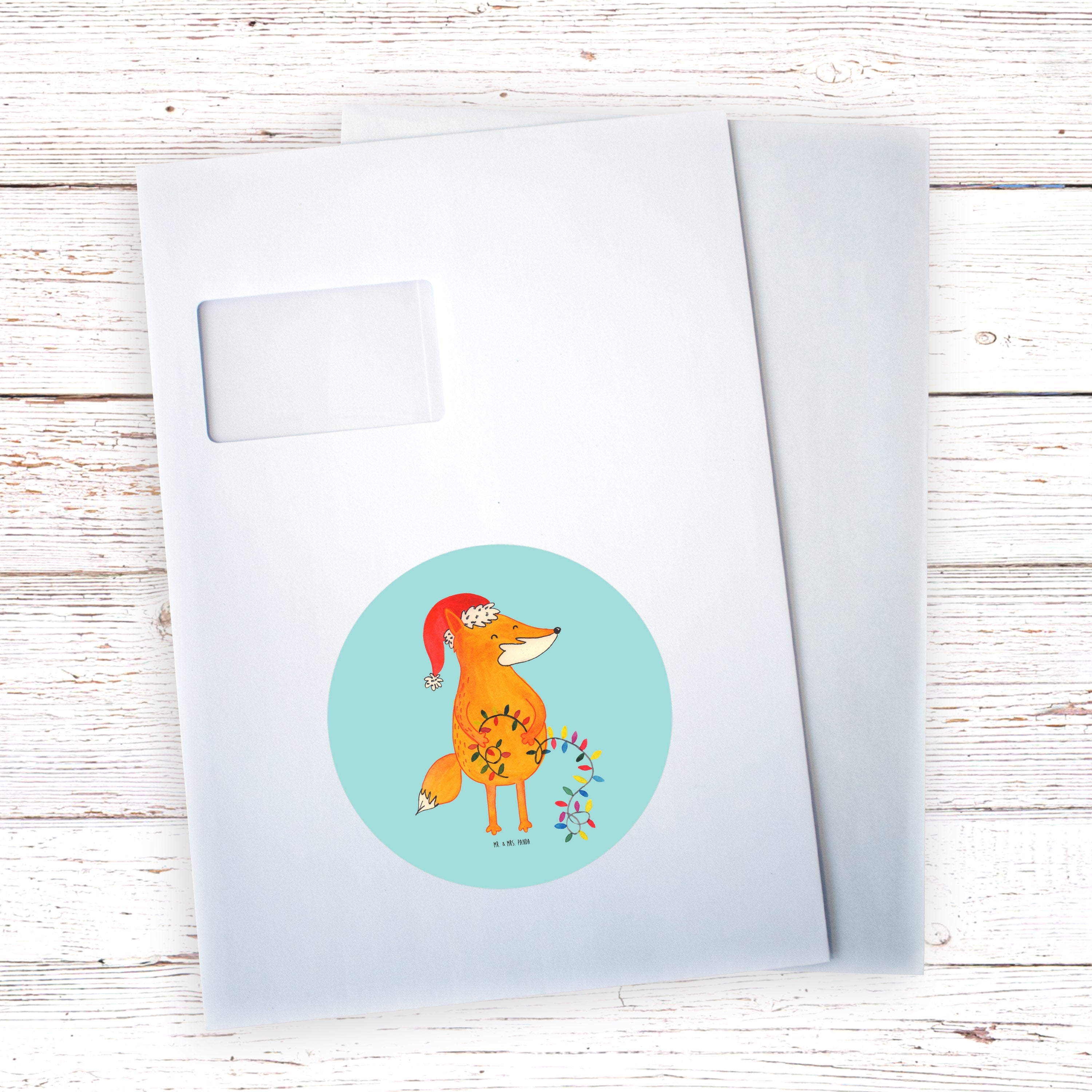 80mm Rund Aufkleber Fuchs Weihnachten - mit Spruch - Türkis Pastell
