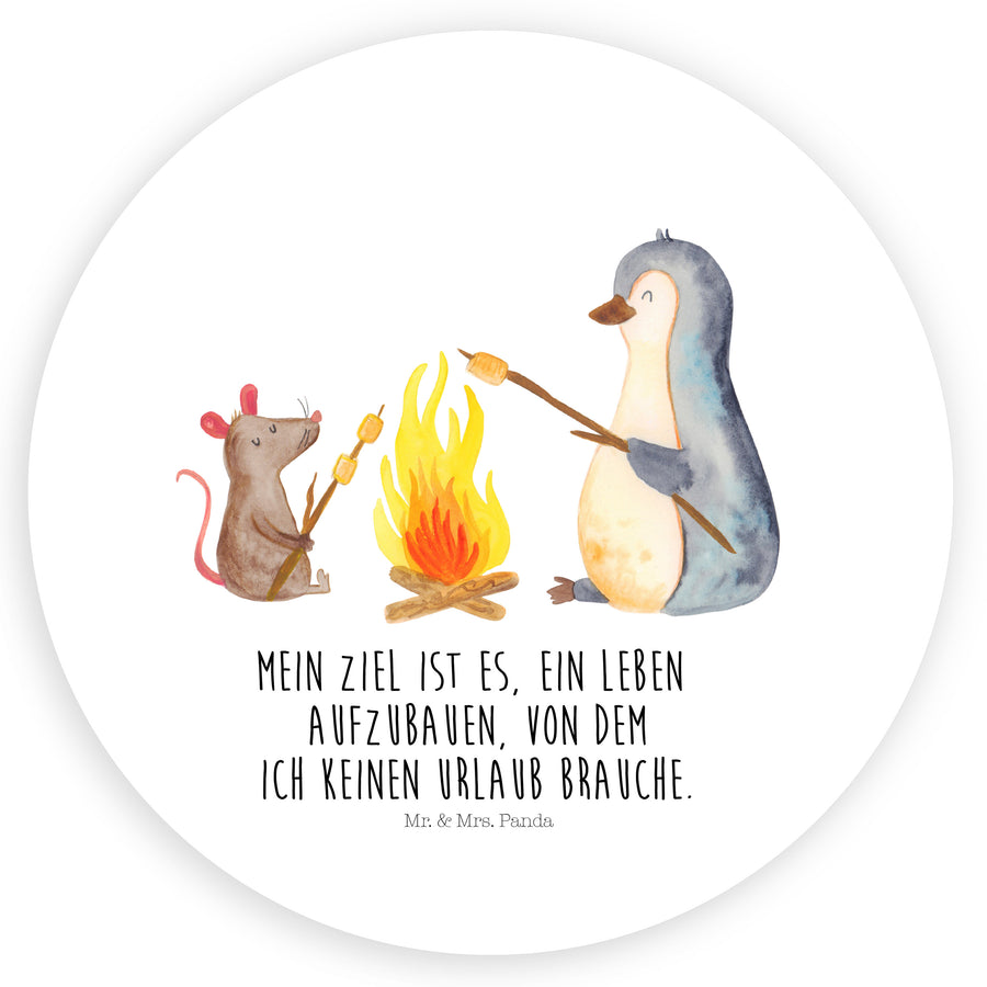 120mm Rund Aufkleber Pinguin Lagerfeuer - mit Spruch - Weiß