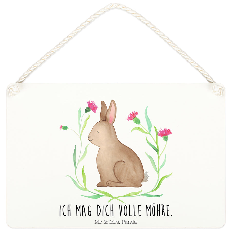 Deko Schild Hase sitzend - mit Spruch - Weiß