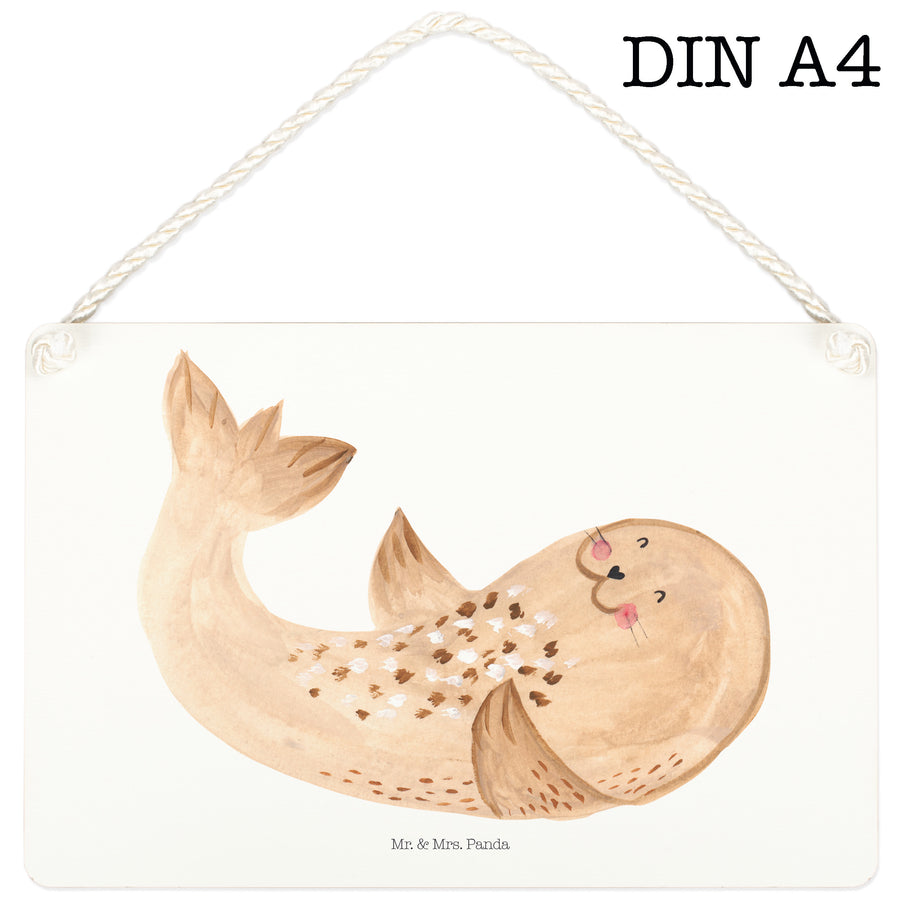 Deko Schild Robbe liegend - ohne Spruch - Weiß