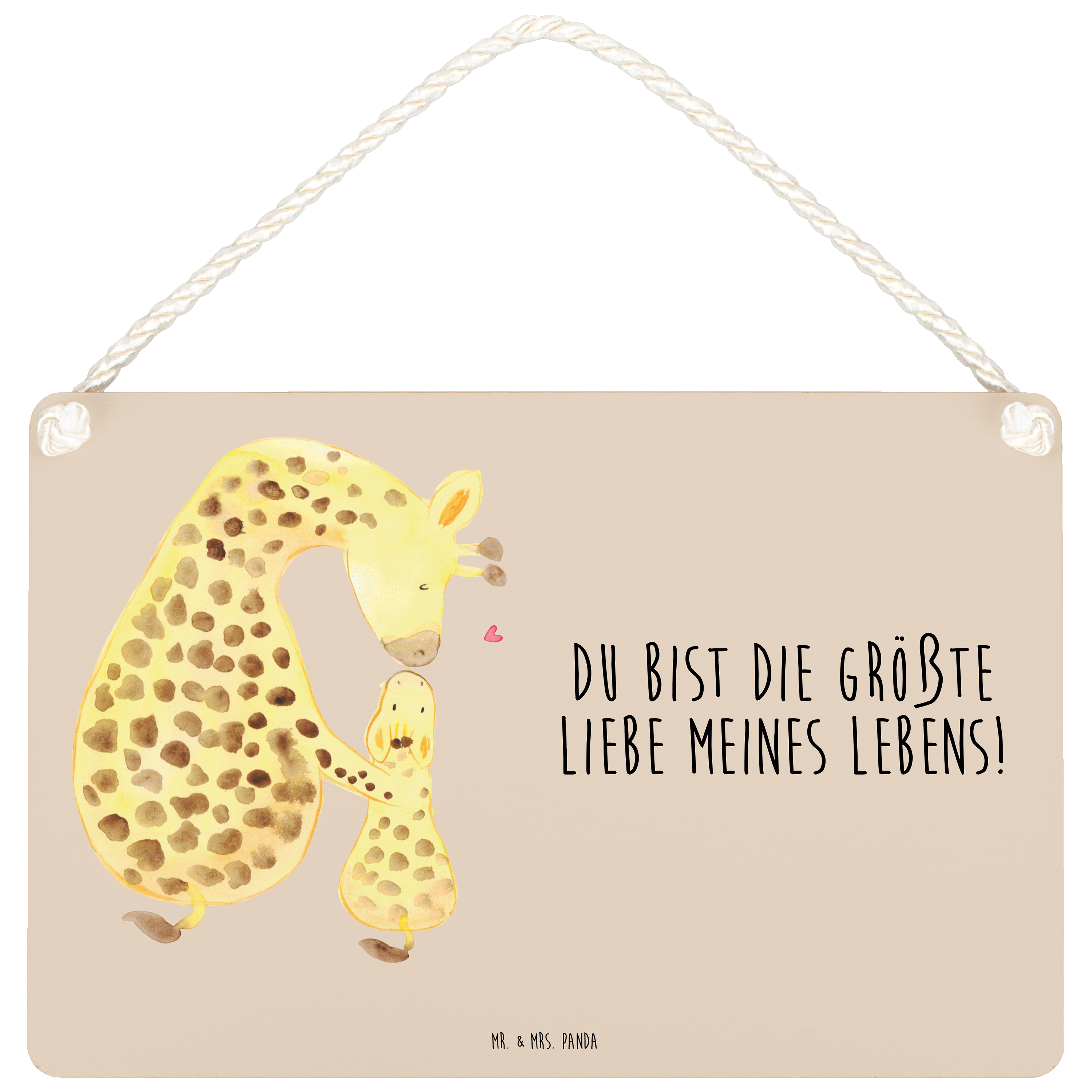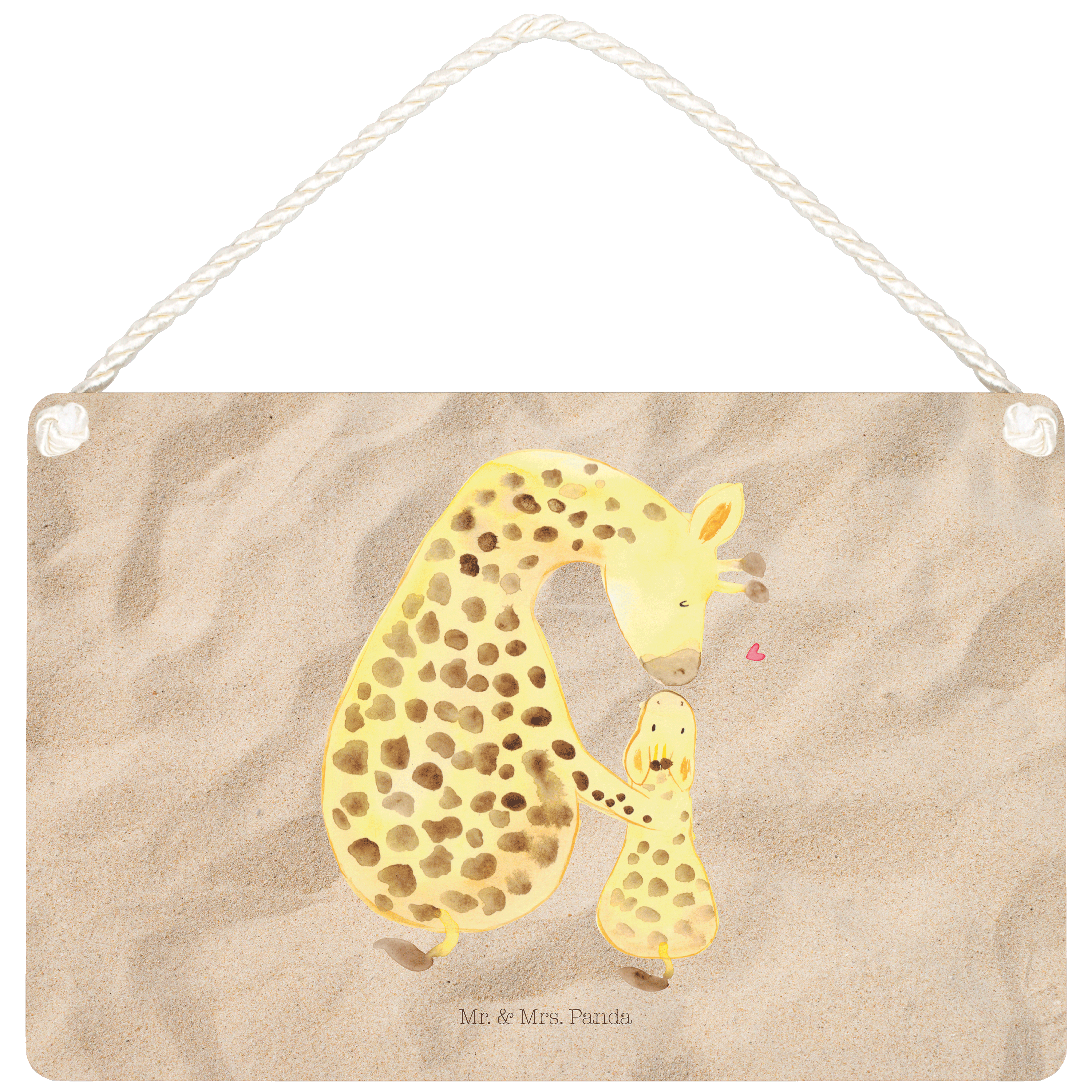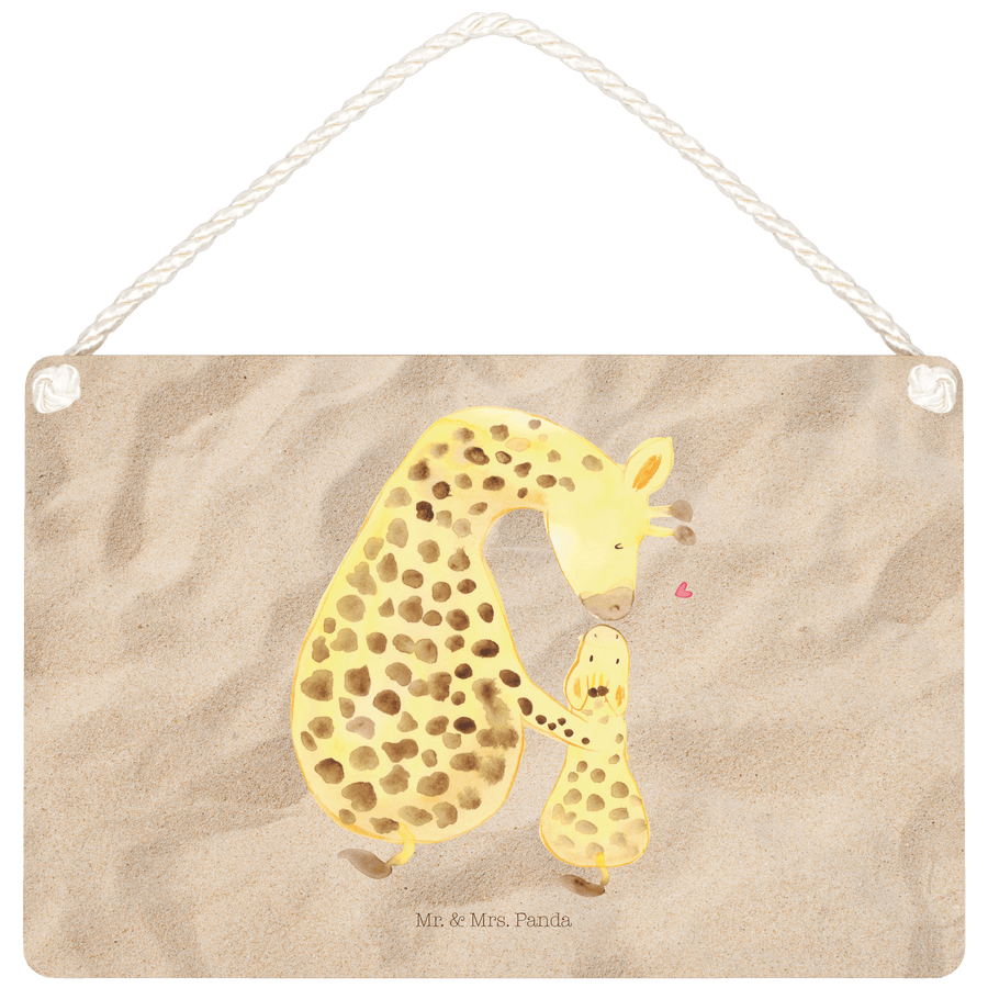 Deko Schild Giraffe mit Kind - DIN A4 - ohne Spruch - Sandig
