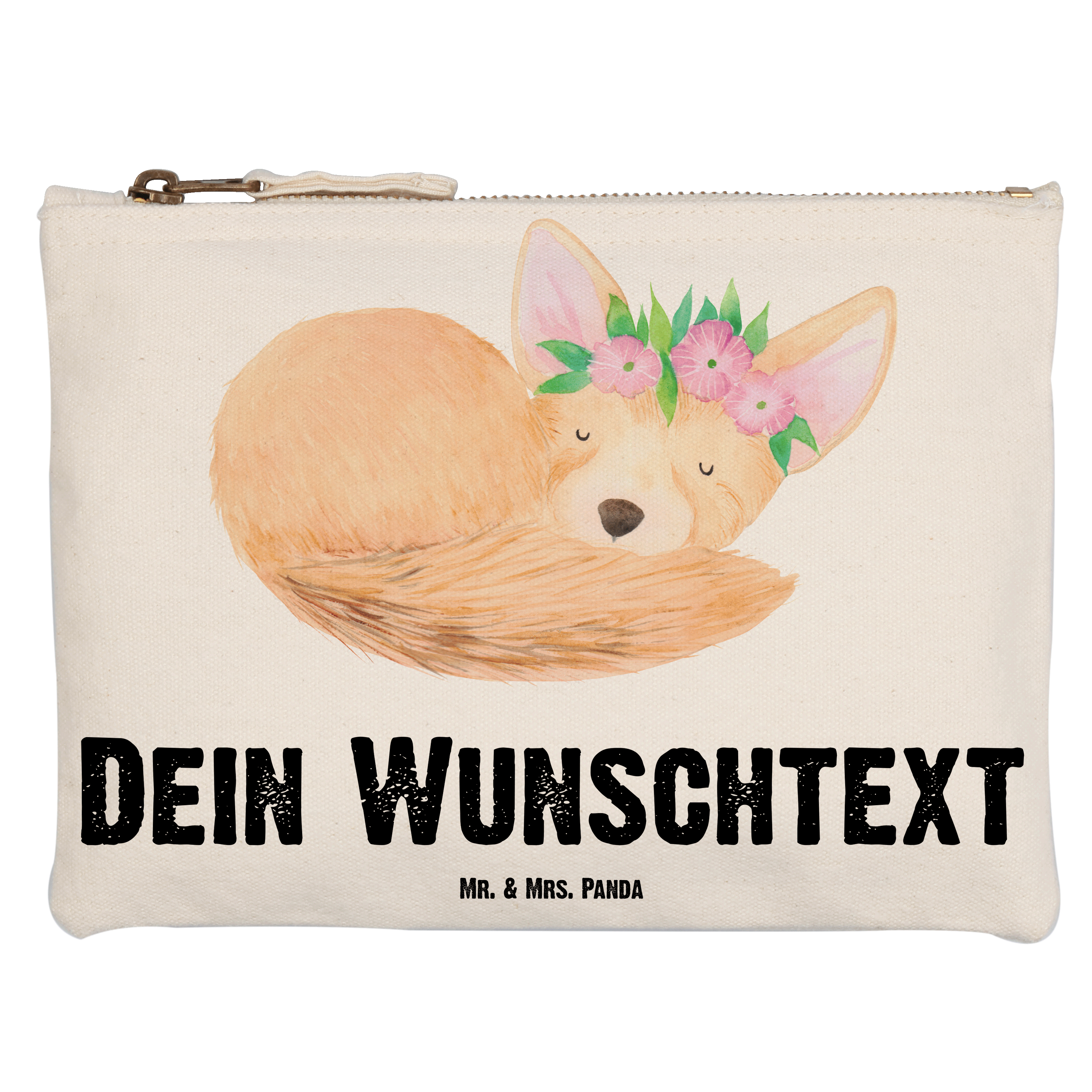 Personalisierte Schminktasche Wüstenfuchs Blumenkranz - Größe S Klein