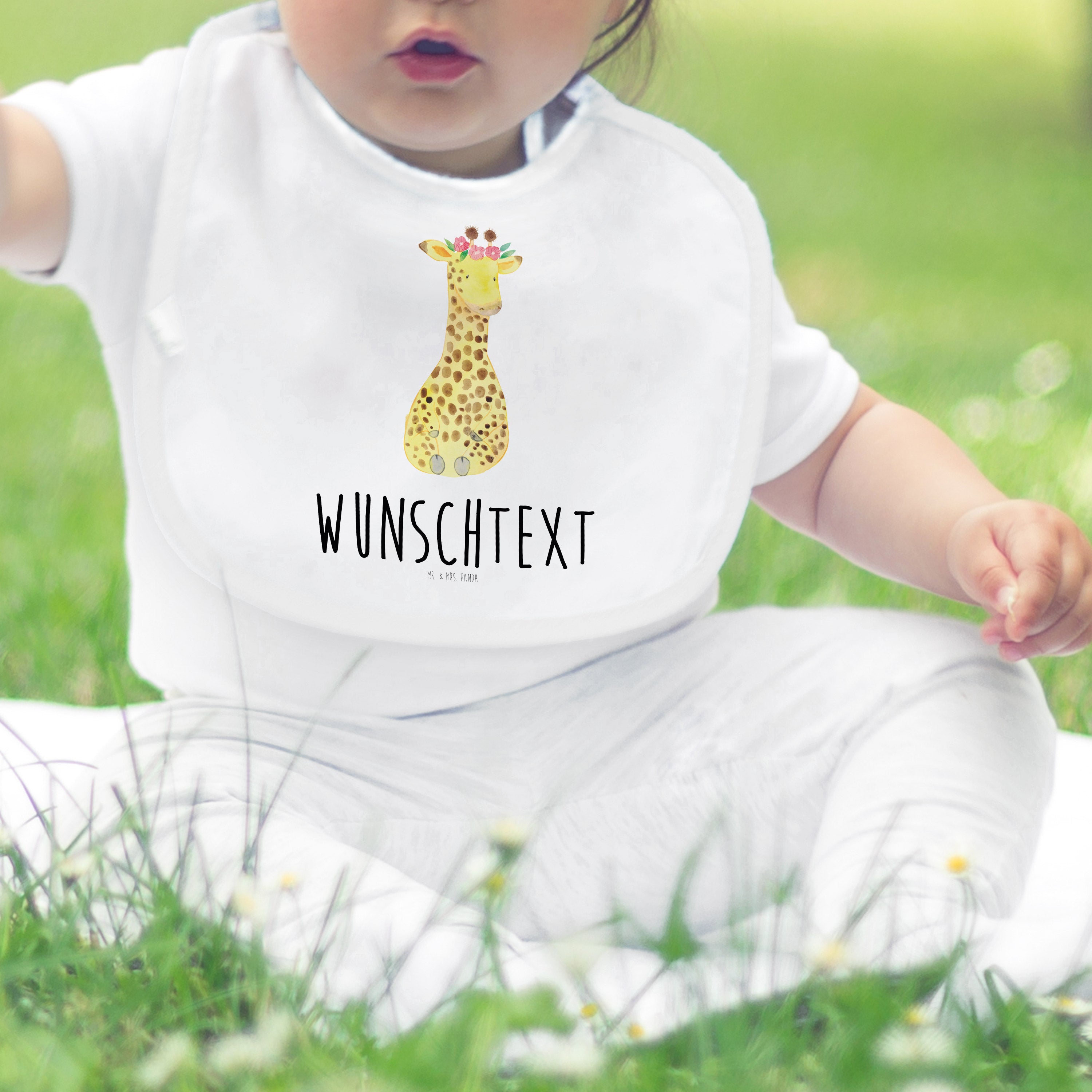 Personalisiertes Babylätzchen Giraffe Blumenkranz