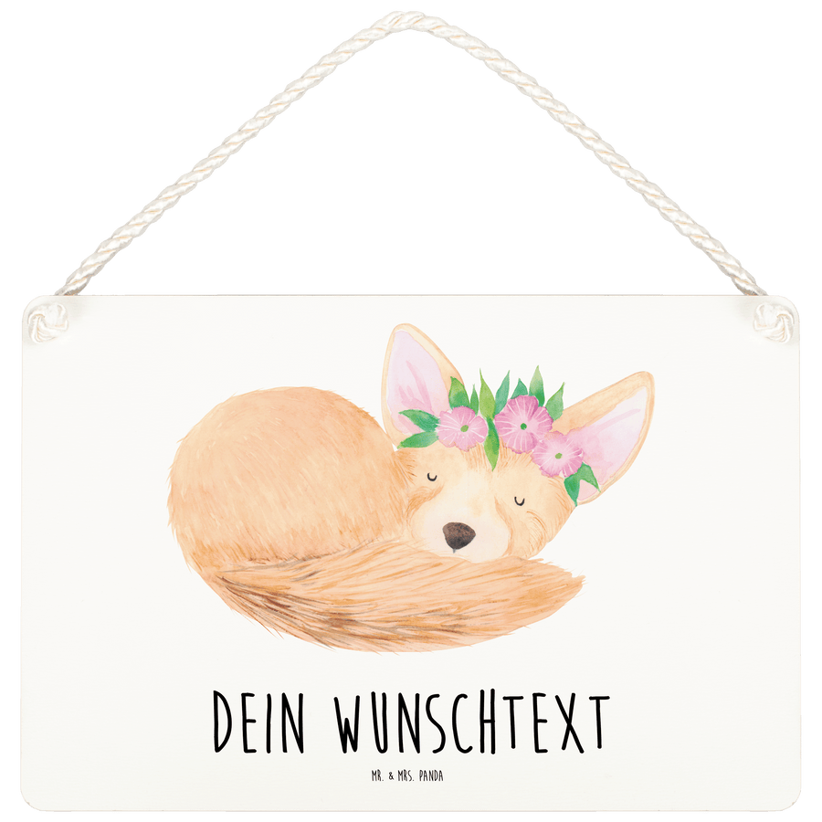 Personalisiertes Deko Schild Wüstenfuchs Blumenkranz - Weiß - DIN A5