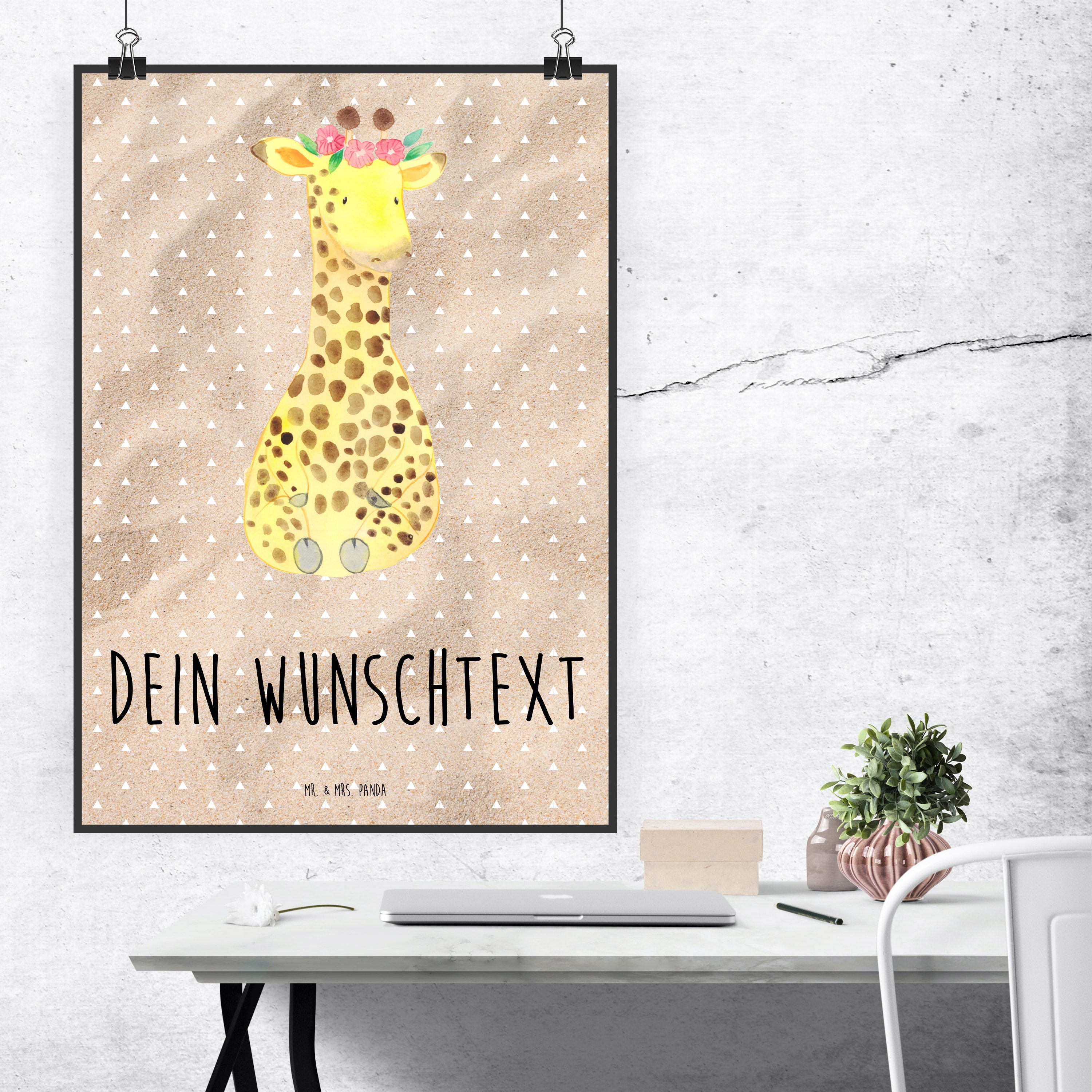 Personalisiertes Poster Giraffe Blumenkranz - Sandig - DIN A5