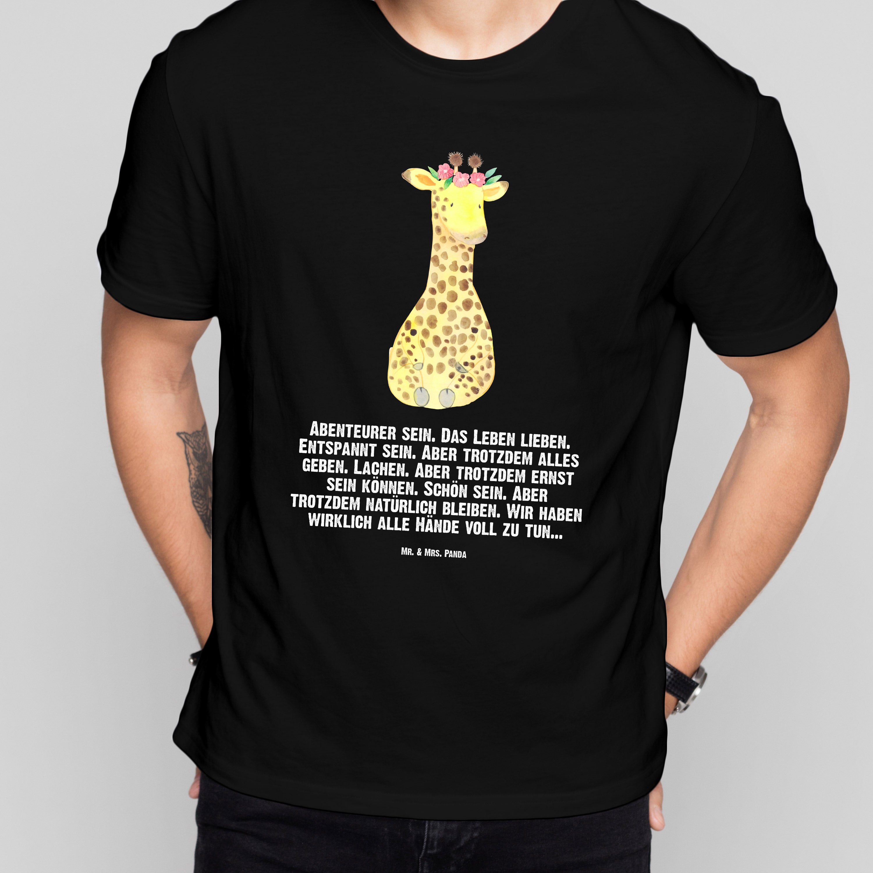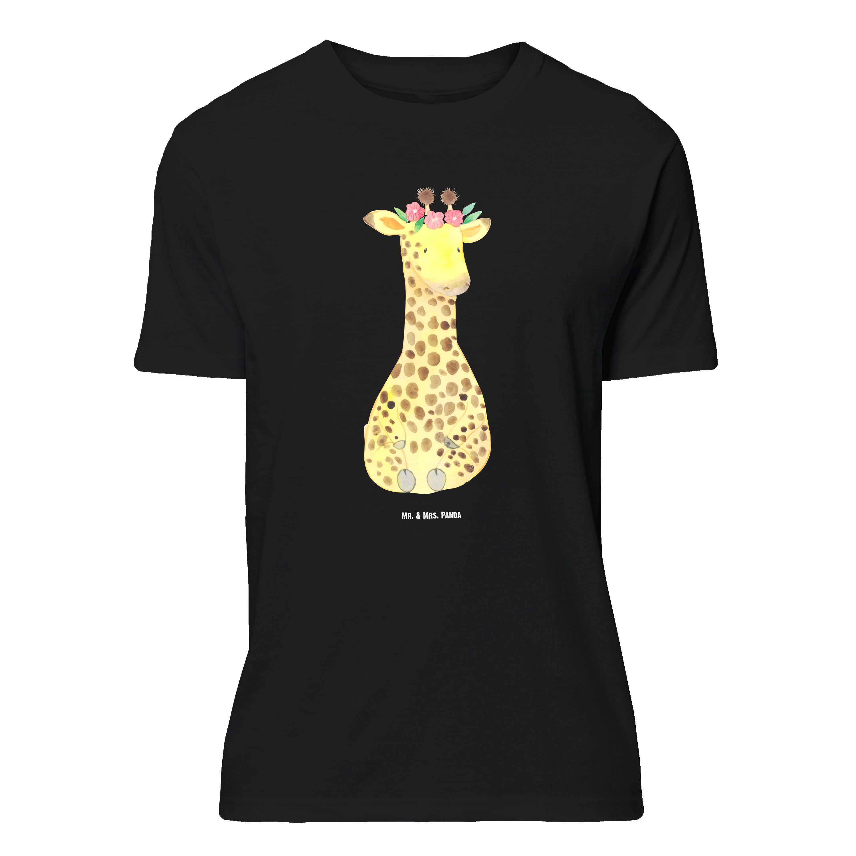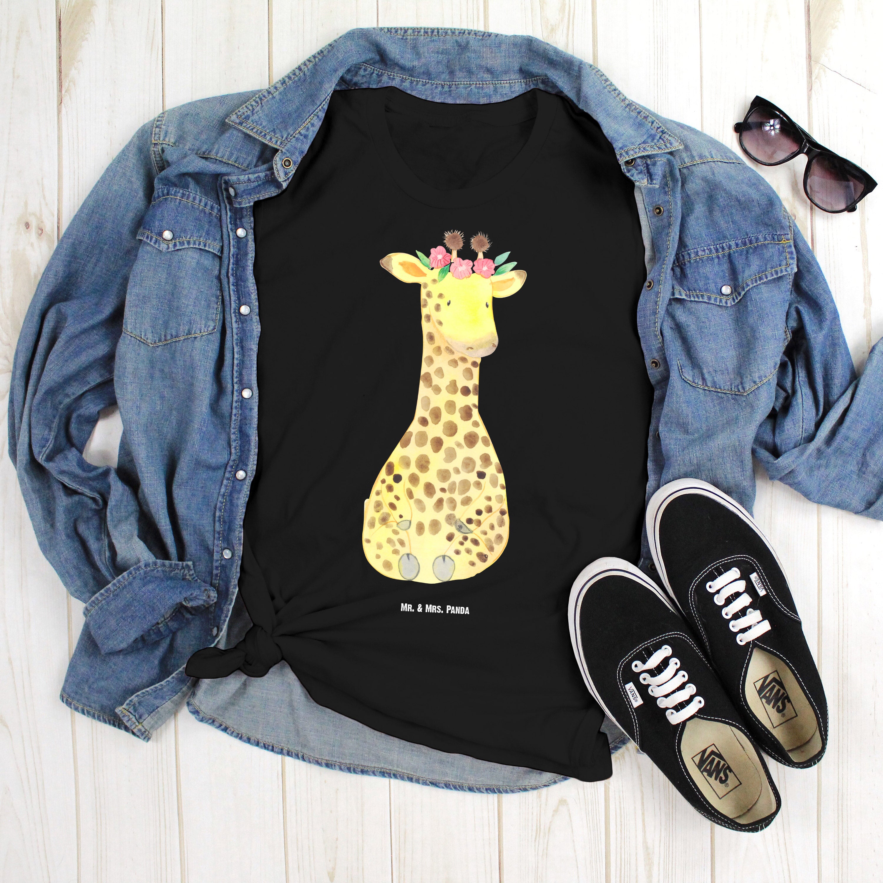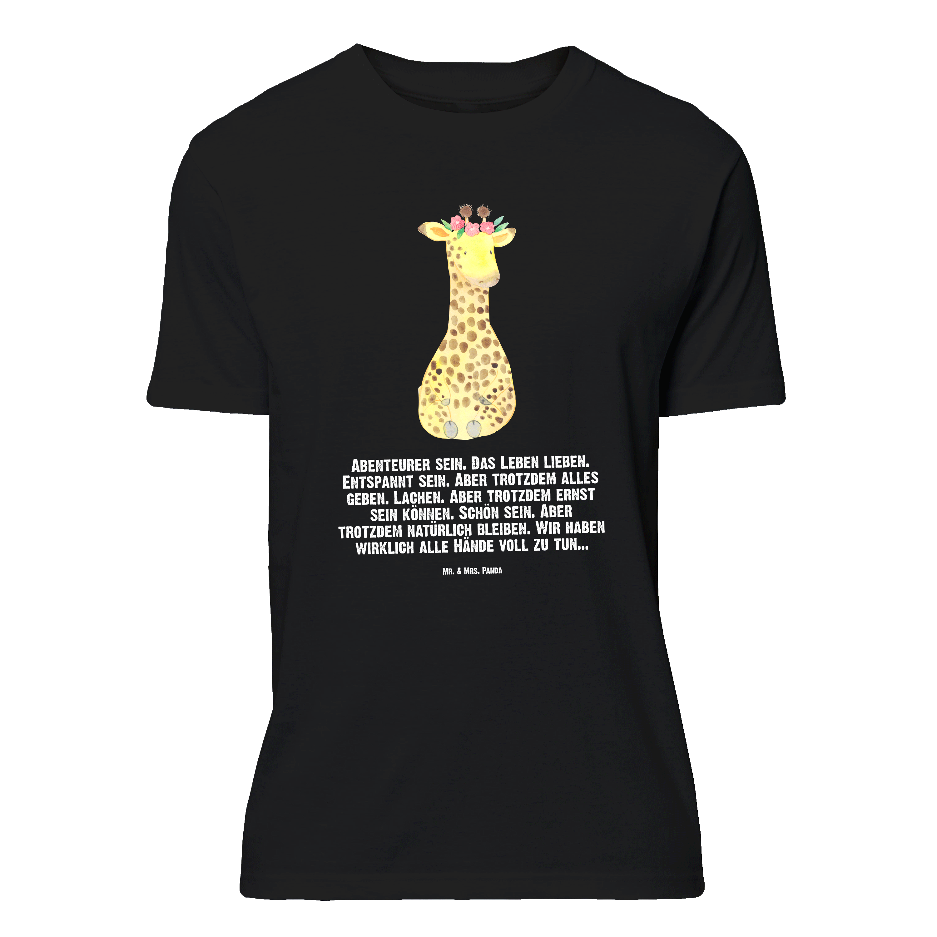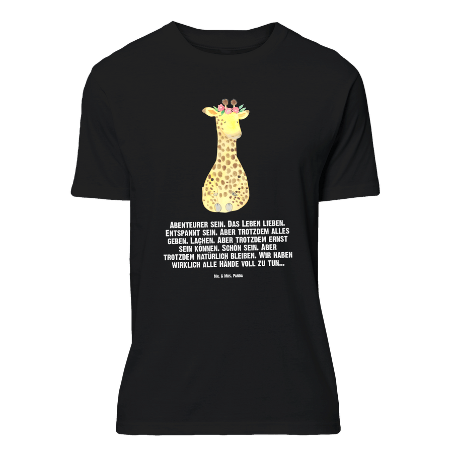 Größe XXL T-Shirt Giraffe Blumenkranz - mit Spruch - Schwarz