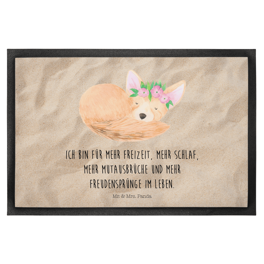 Fußmatte Wüstenfuchs Blumenkranz - 60 x 90 cm - mit Spruch - Sandig