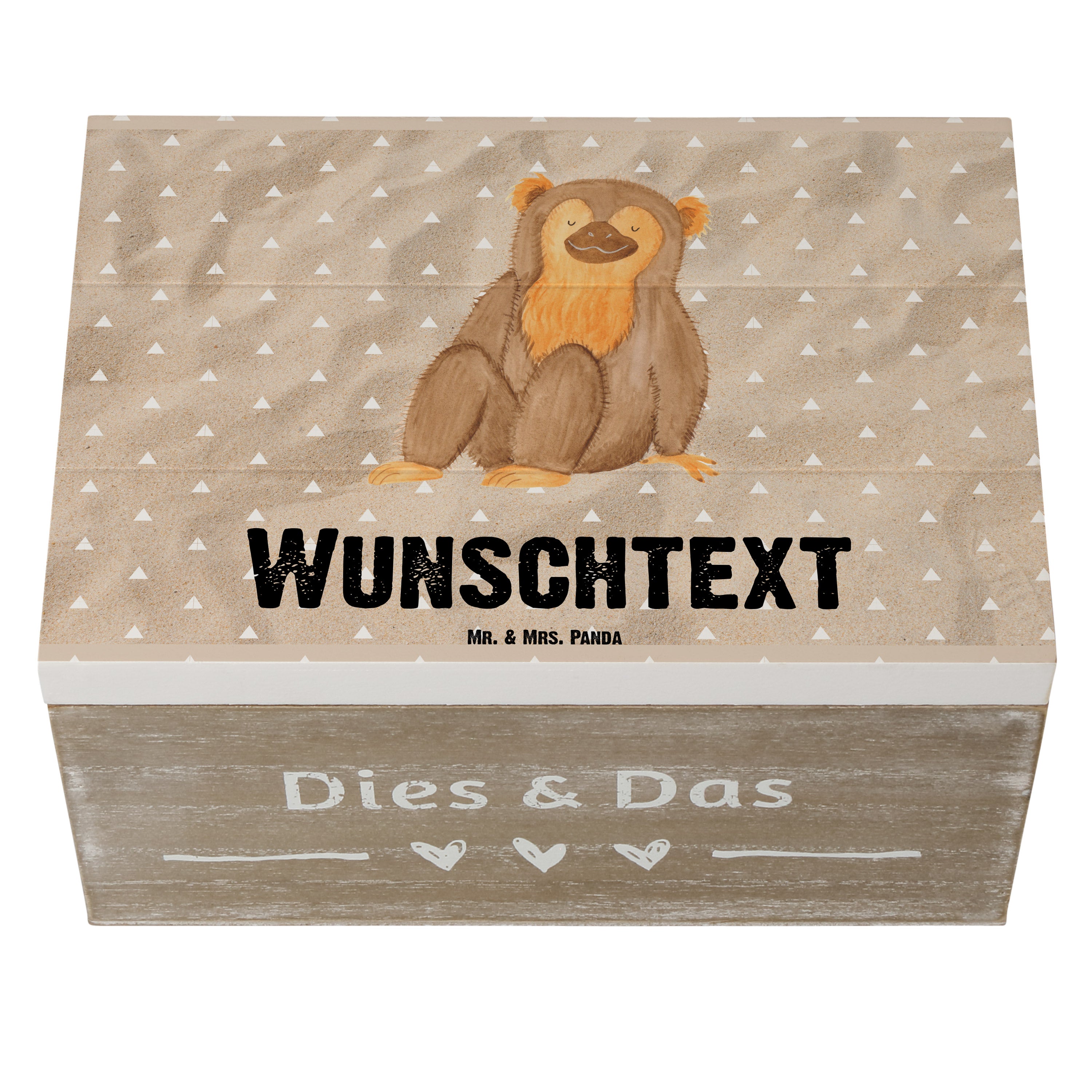 Personalisierte Holzkiste Affe - 25 x 18 cm - Sandig