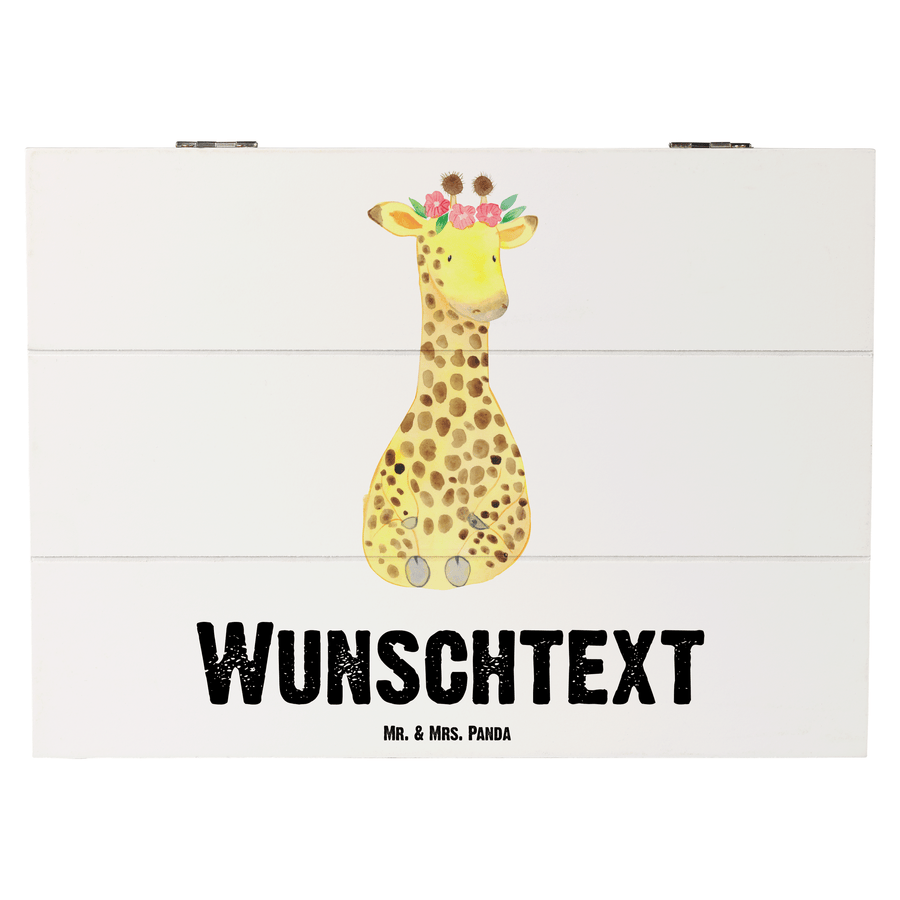Personalisierte Holzkiste Giraffe Blumenkranz - 25 x 18 cm - Weiß