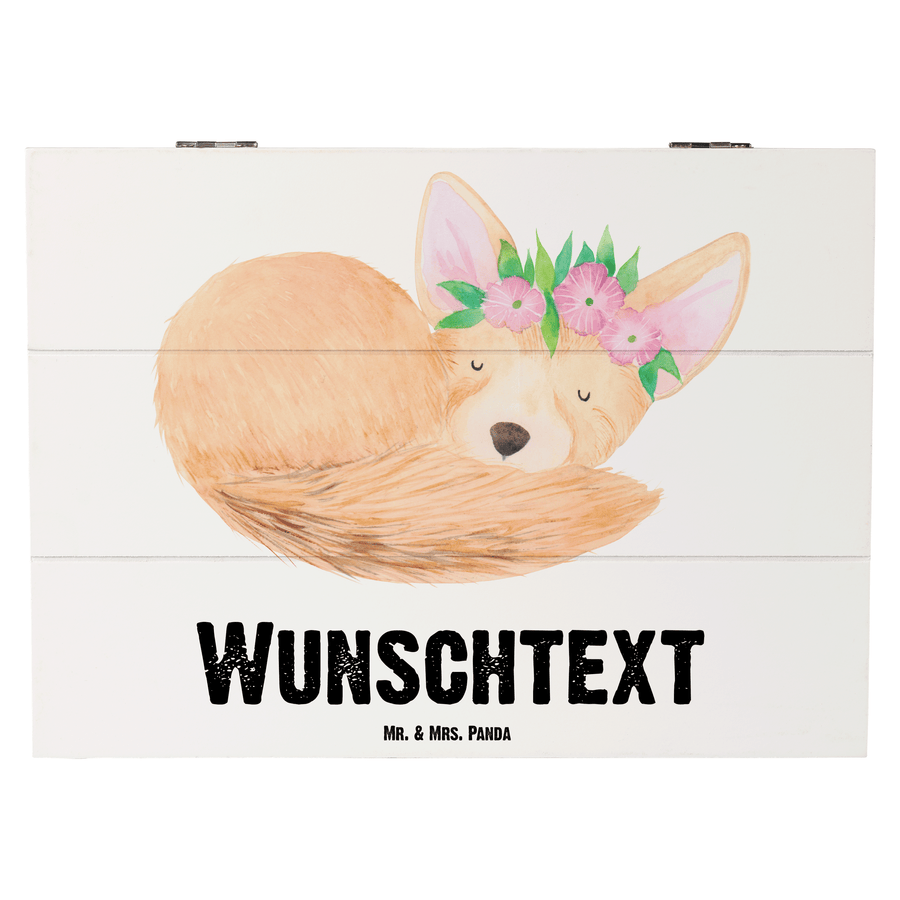 Personalisierte Holzkiste Wüstenfuchs Blumenkranz - 25 x 18 cm - Weiß