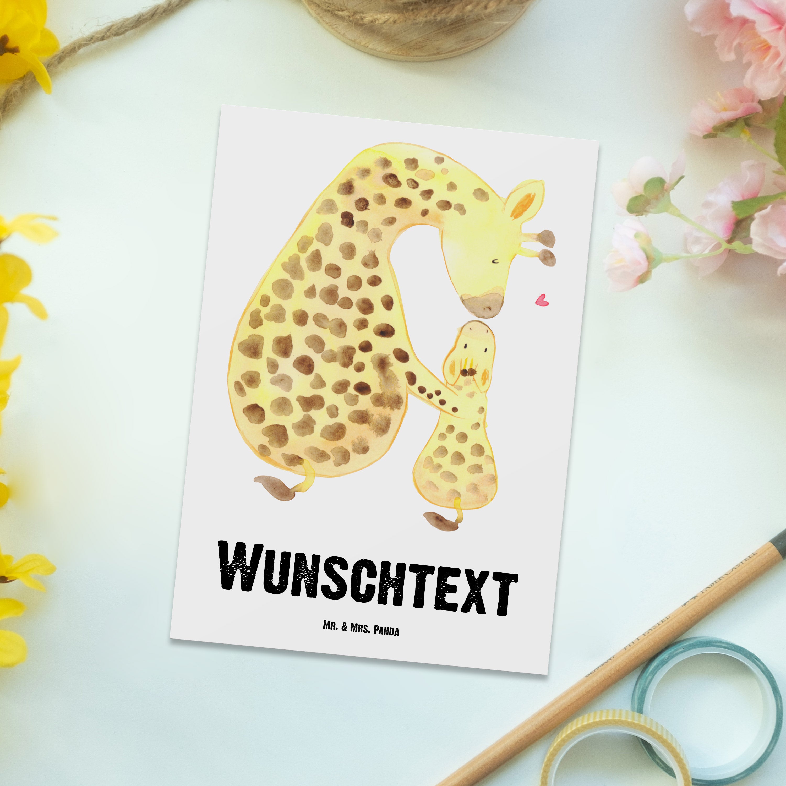 Personalisierte Postkarte Giraffe mit Kind