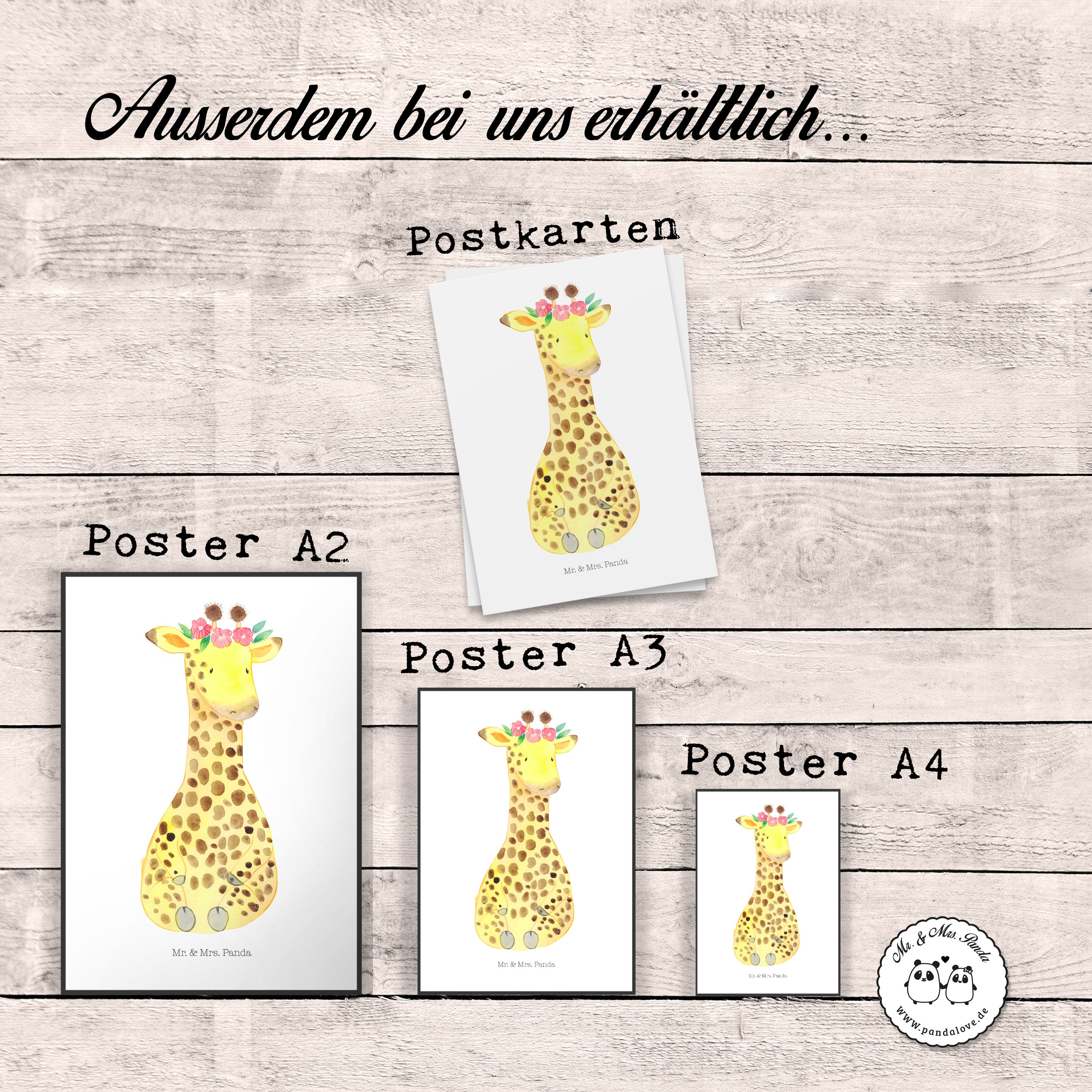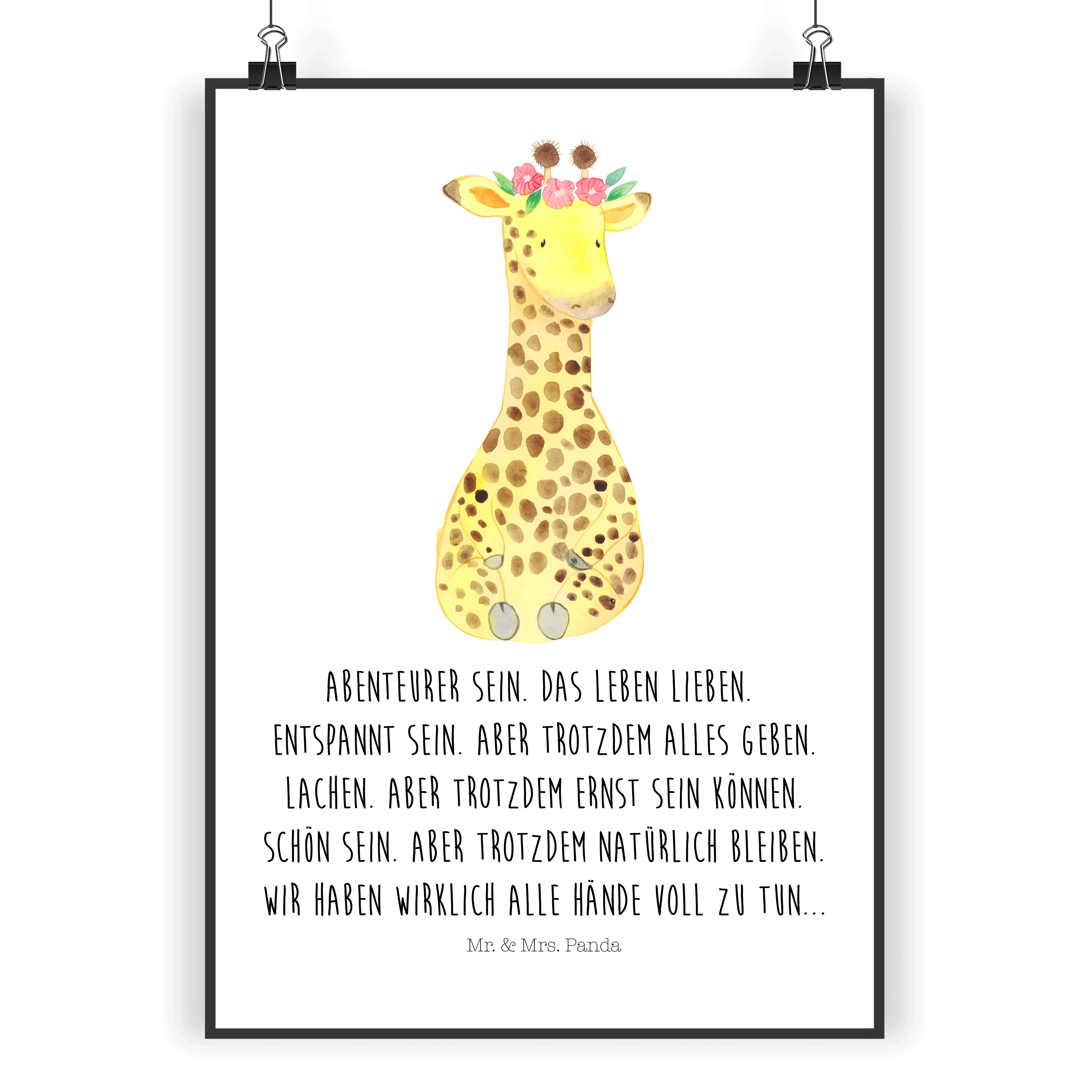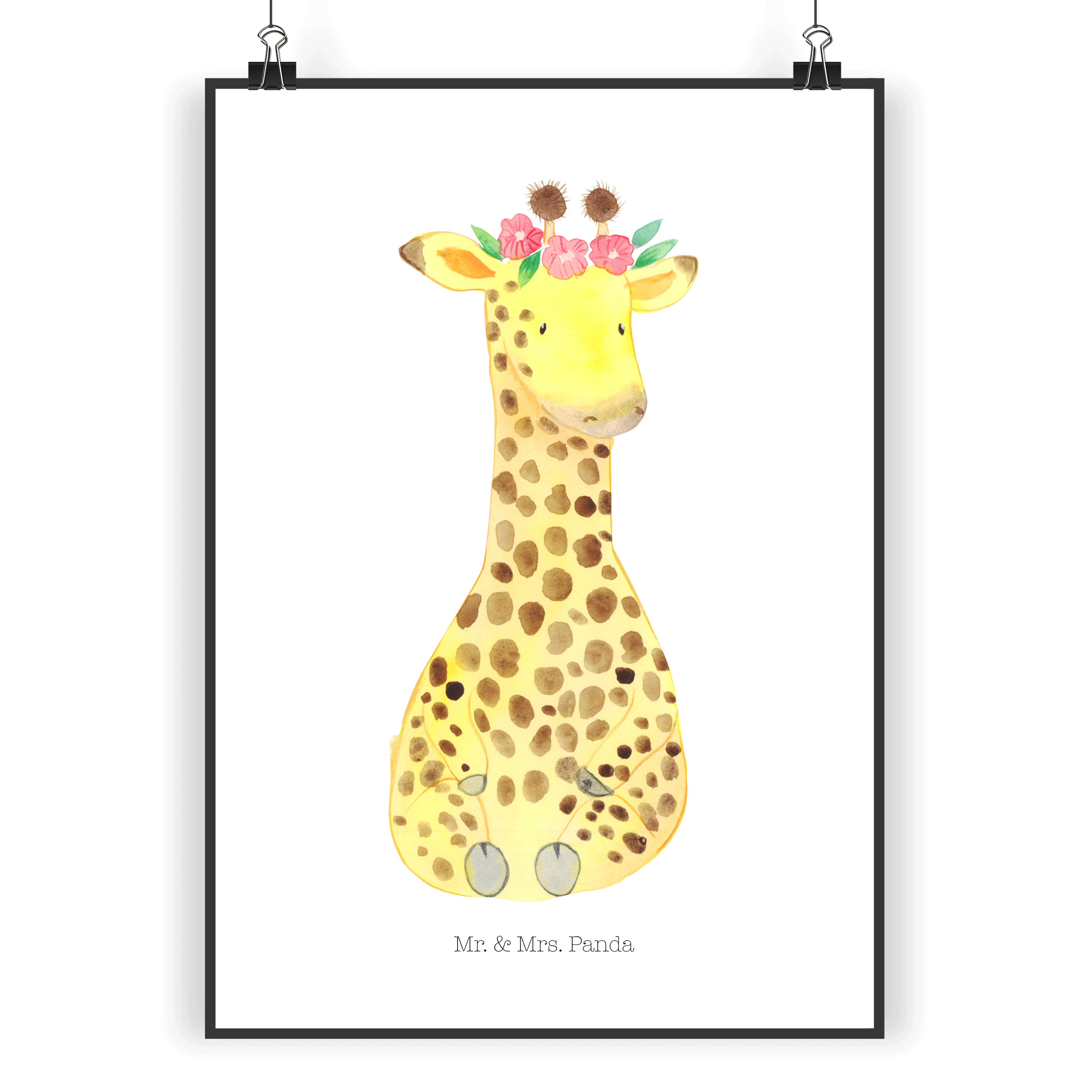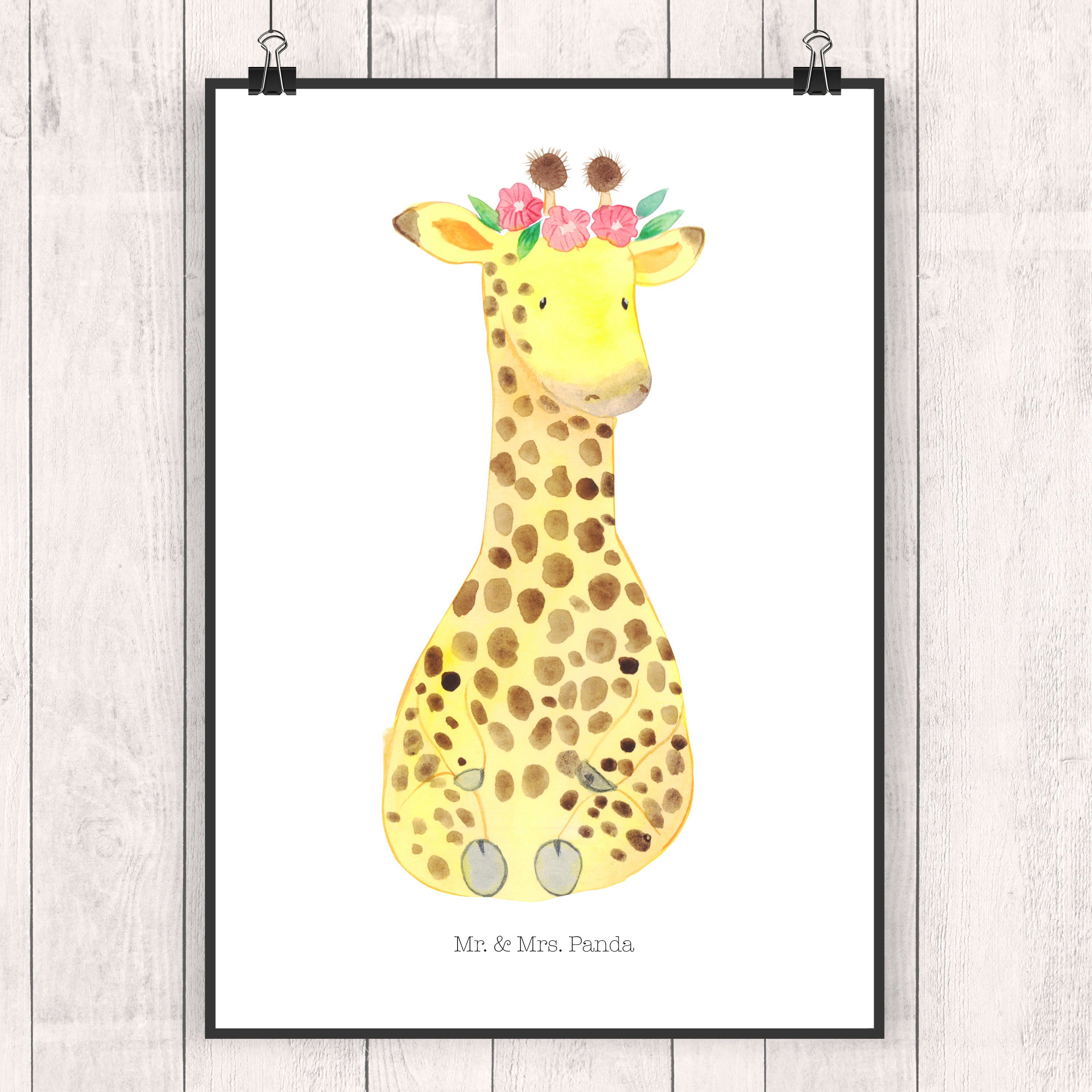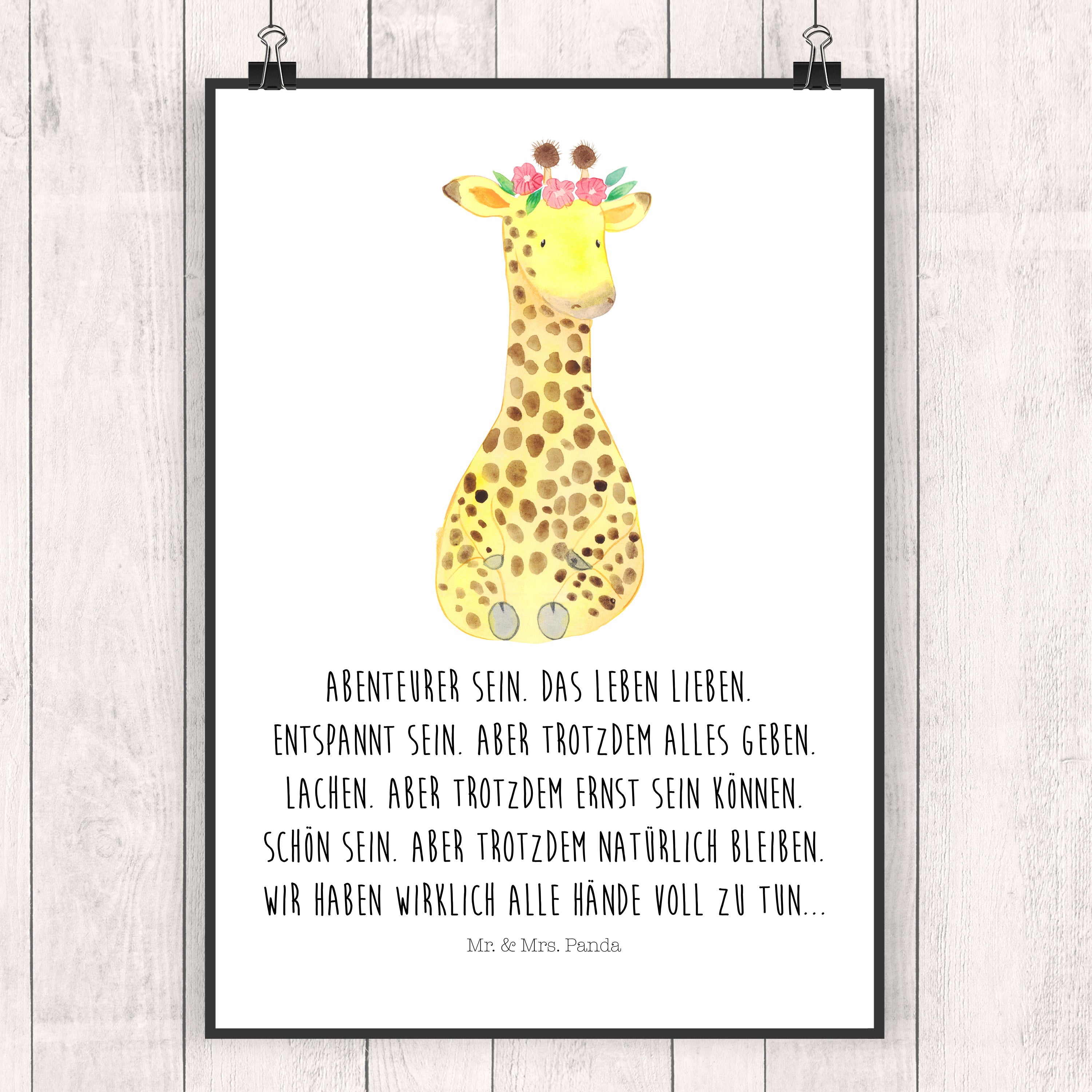 Poster Giraffe Blumenkranz Poster, Wandposter, Bild, Wanddeko, Küchenposter, Kinderposter, Wanddeko Bild, Raumdekoration, Wanddekoration, Handgemaltes Poster, Mr. & Mrs. Panda Poster, Designposter, Kunstdruck, Posterdruck, Afrika, Wildtiere, Giraffe, Blumenkranz, Abenteurer, Selbstliebe, Freundin