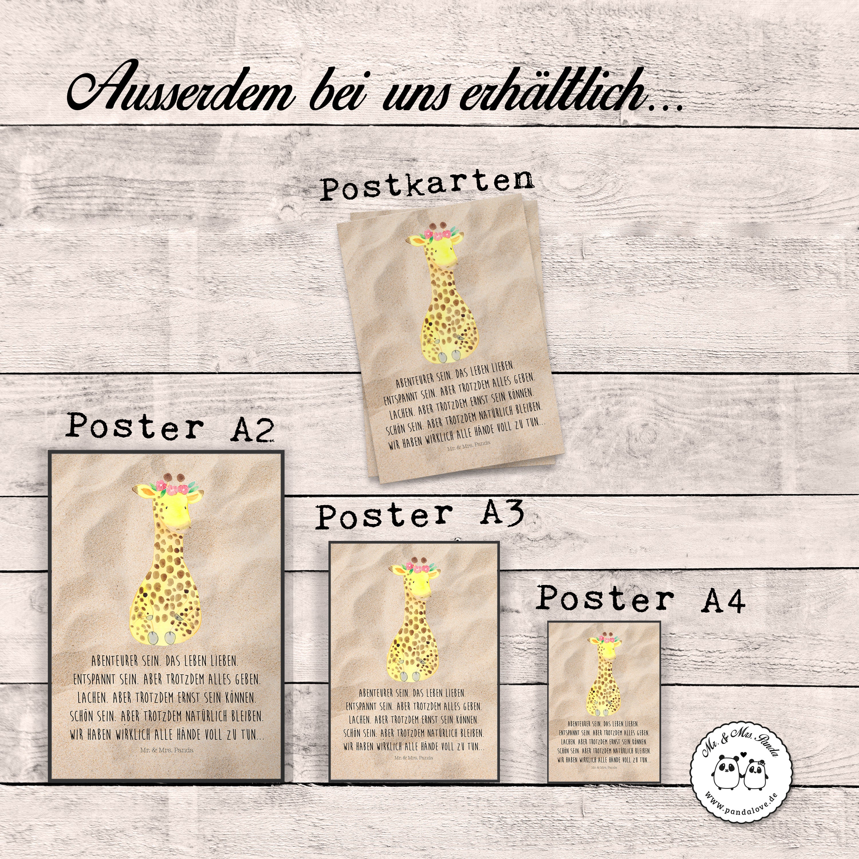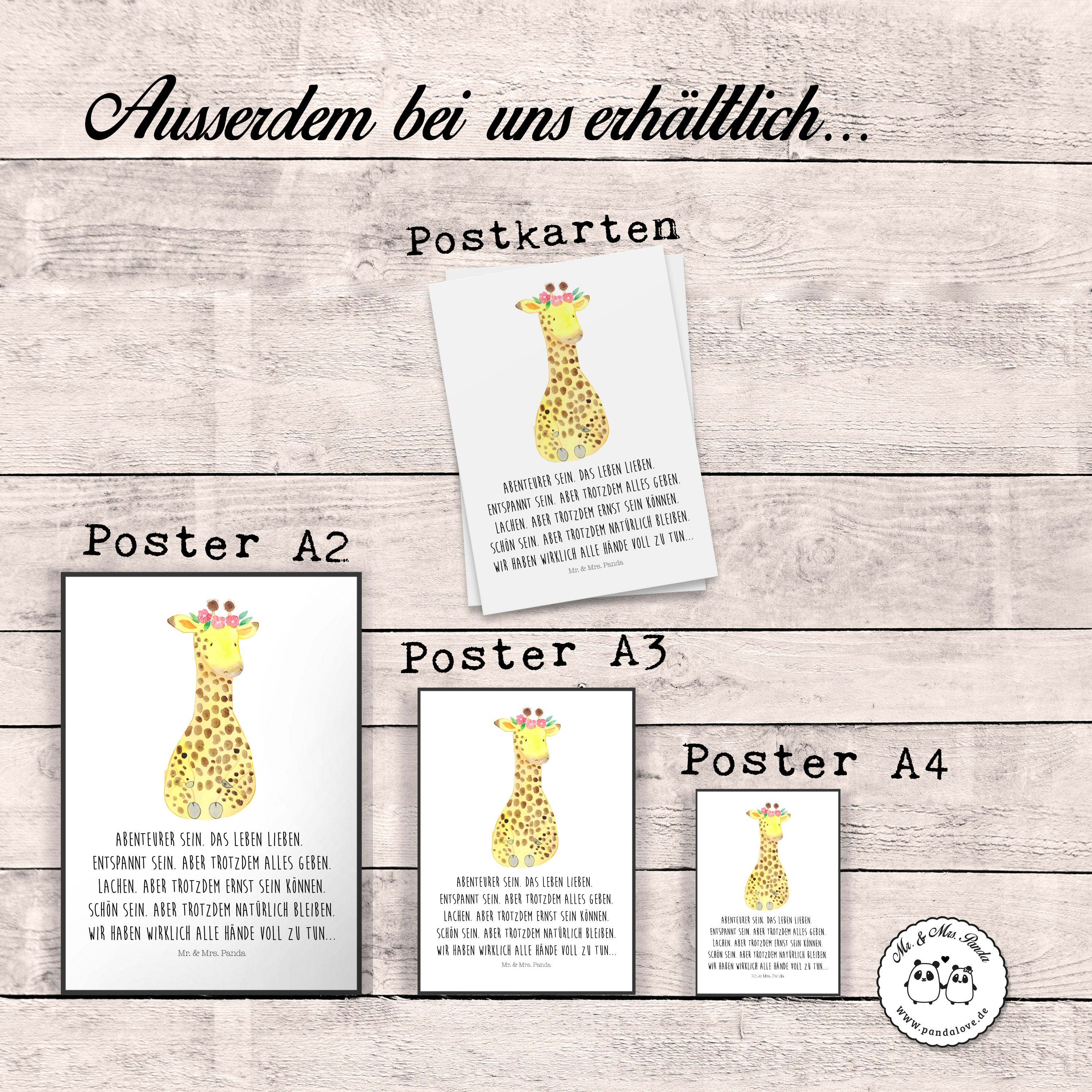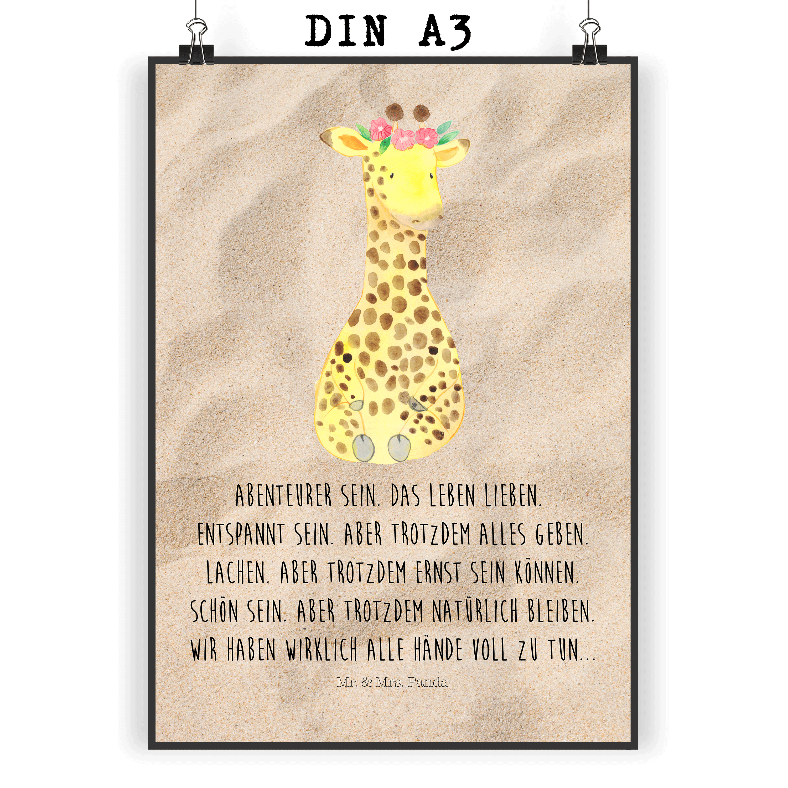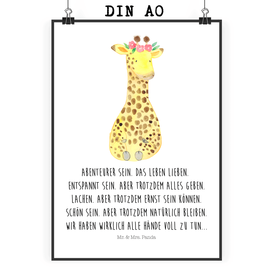 Poster Giraffe Blumenkranz - DIN A0 - mit Spruch