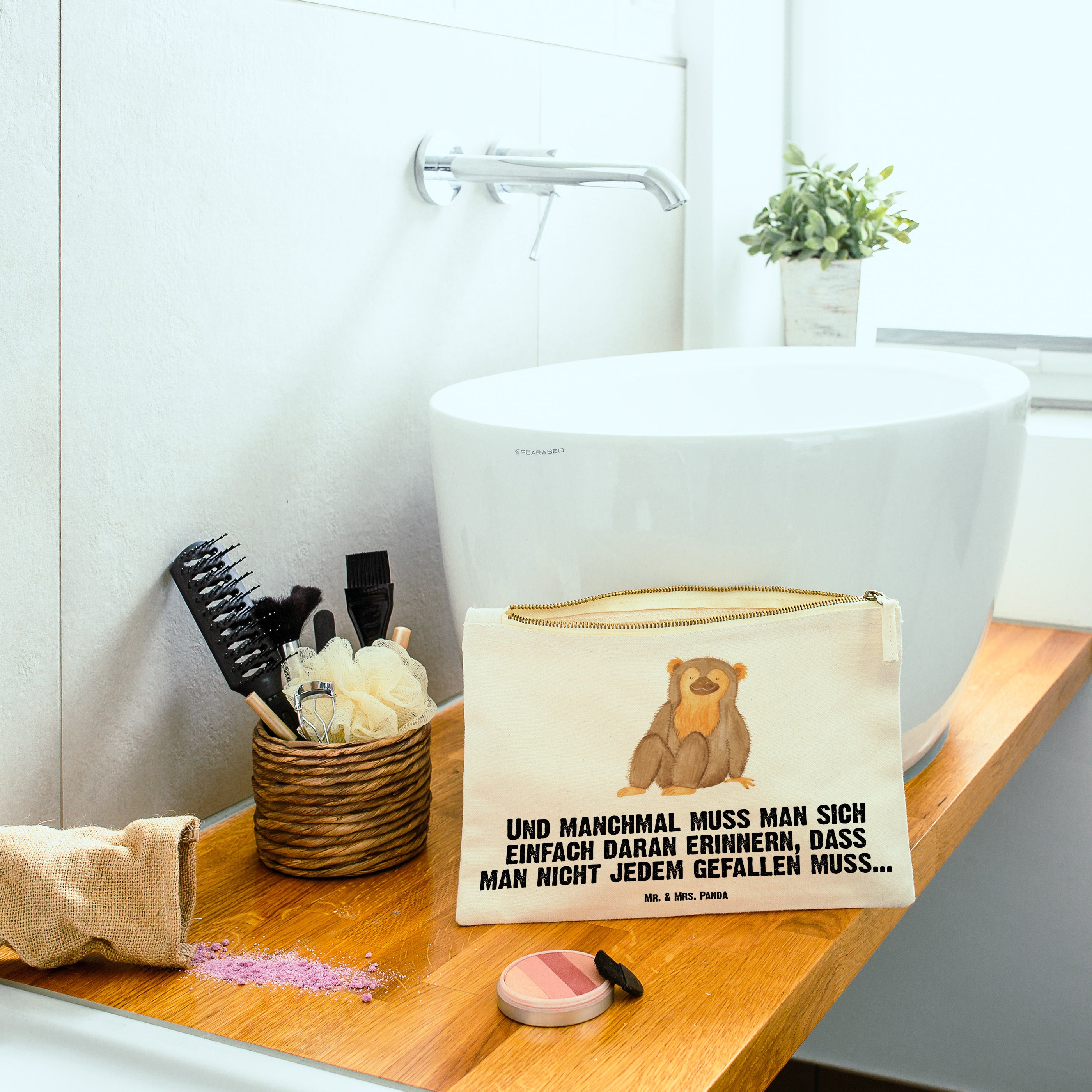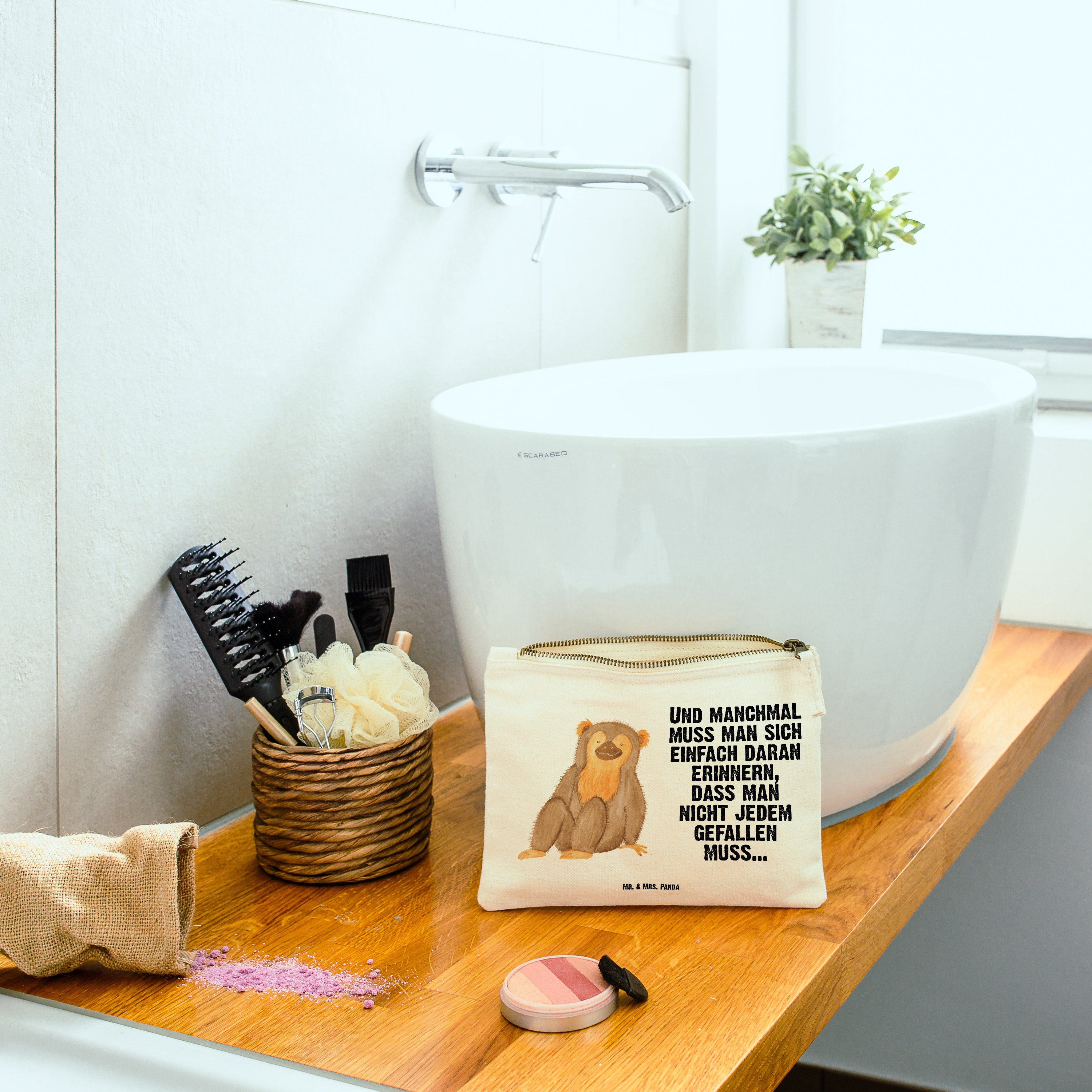 Schminktasche Affe - Grösse XL Große - mit Spruch