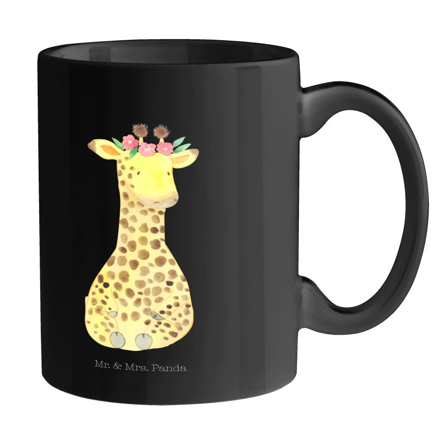 Tasse Giraffe Blumenkranz - ohne Spruch - Schwarz