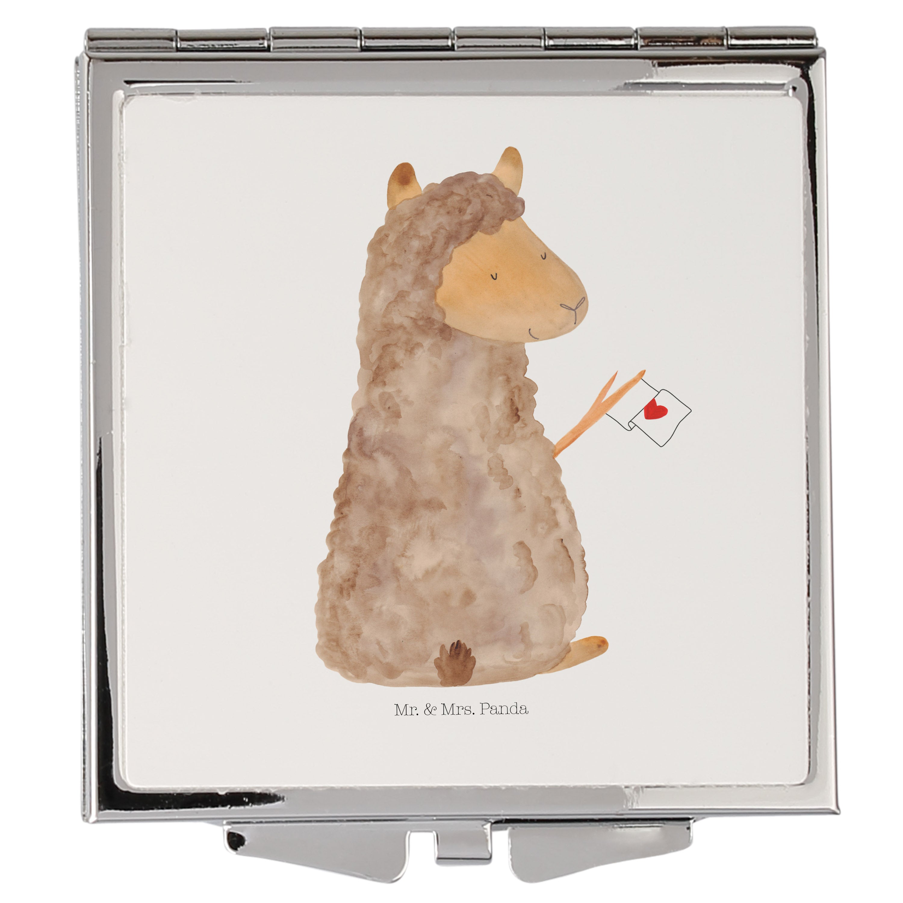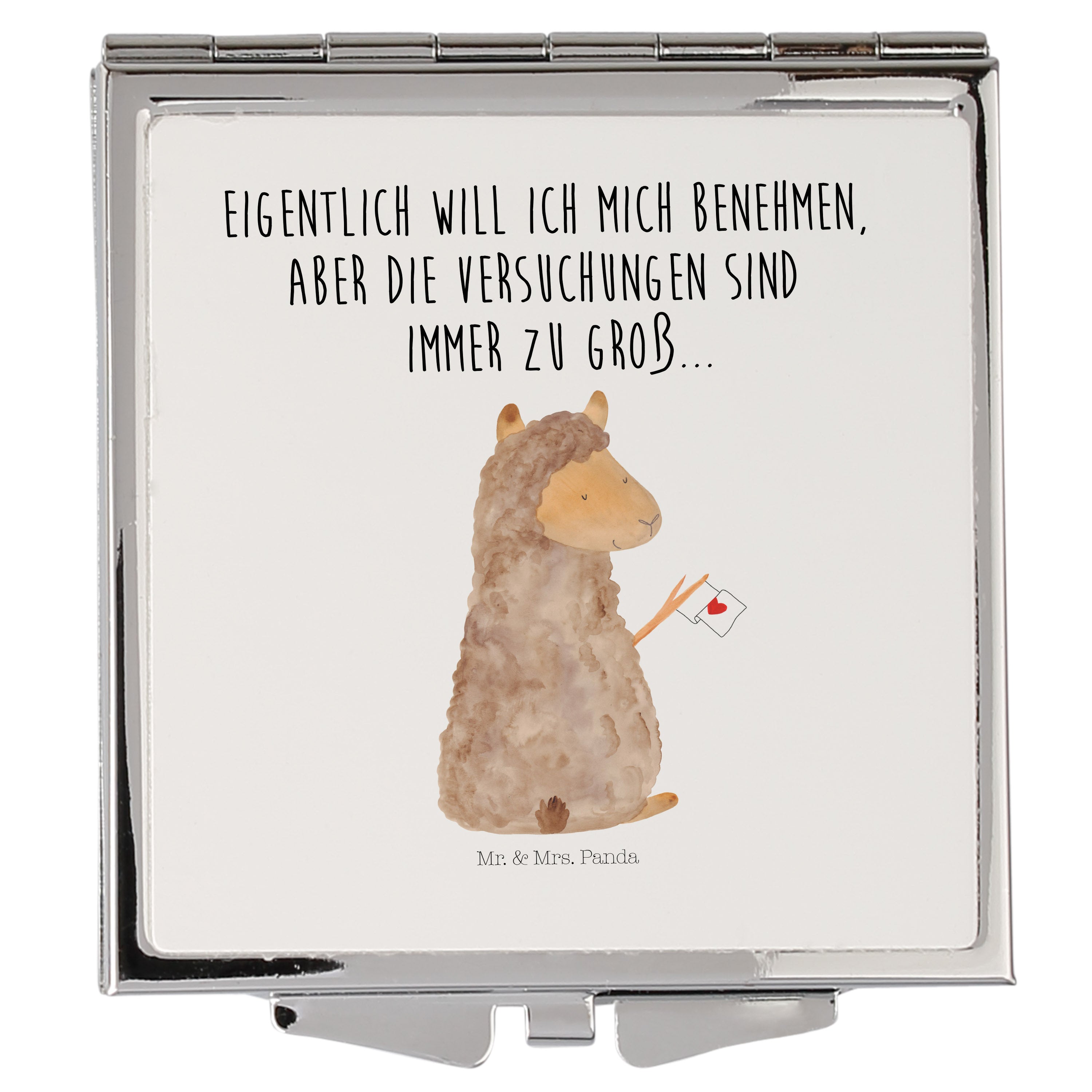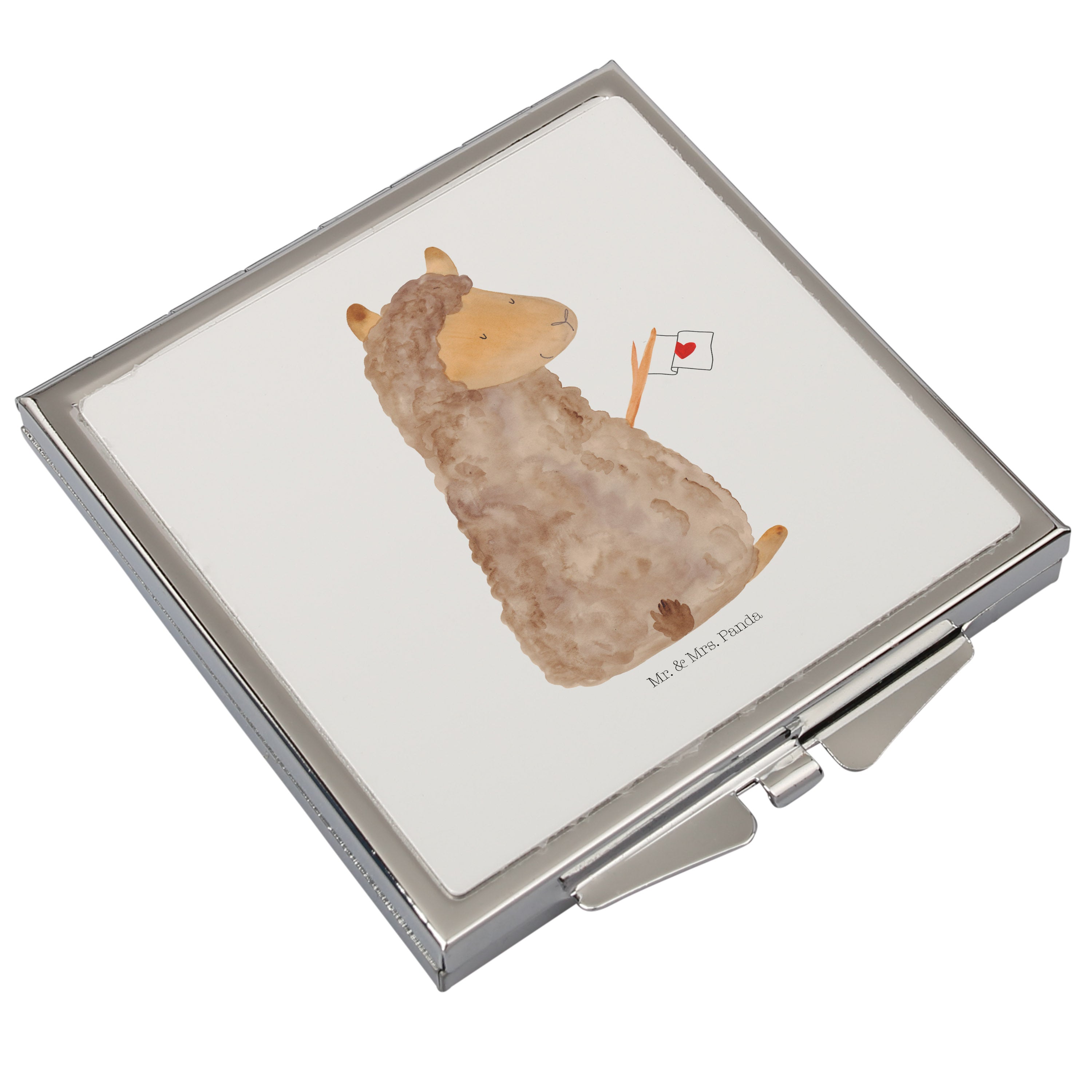 Handtaschenspiegel quadratisch Alpaka Fahne - mit Spruch - Weiß