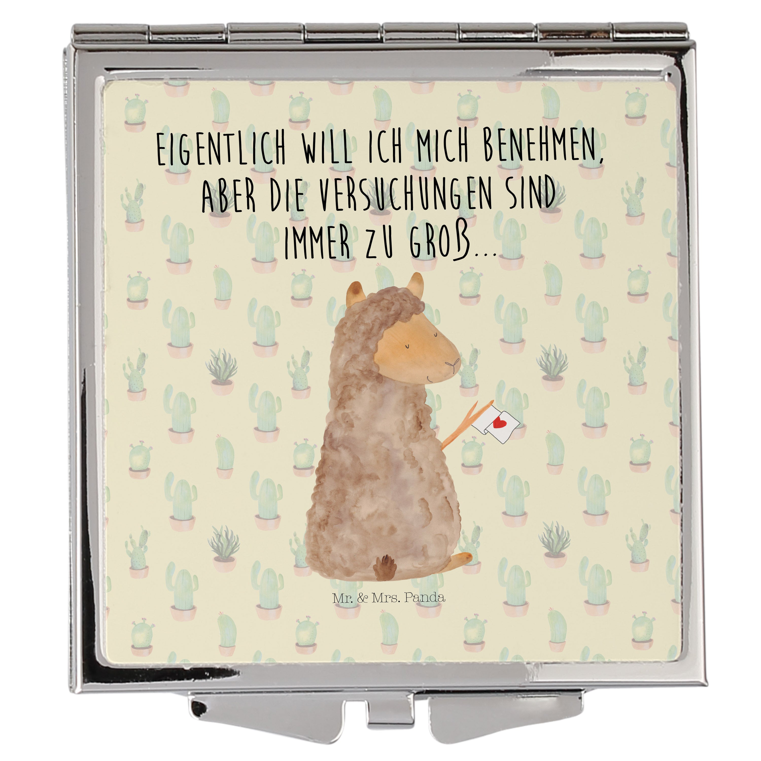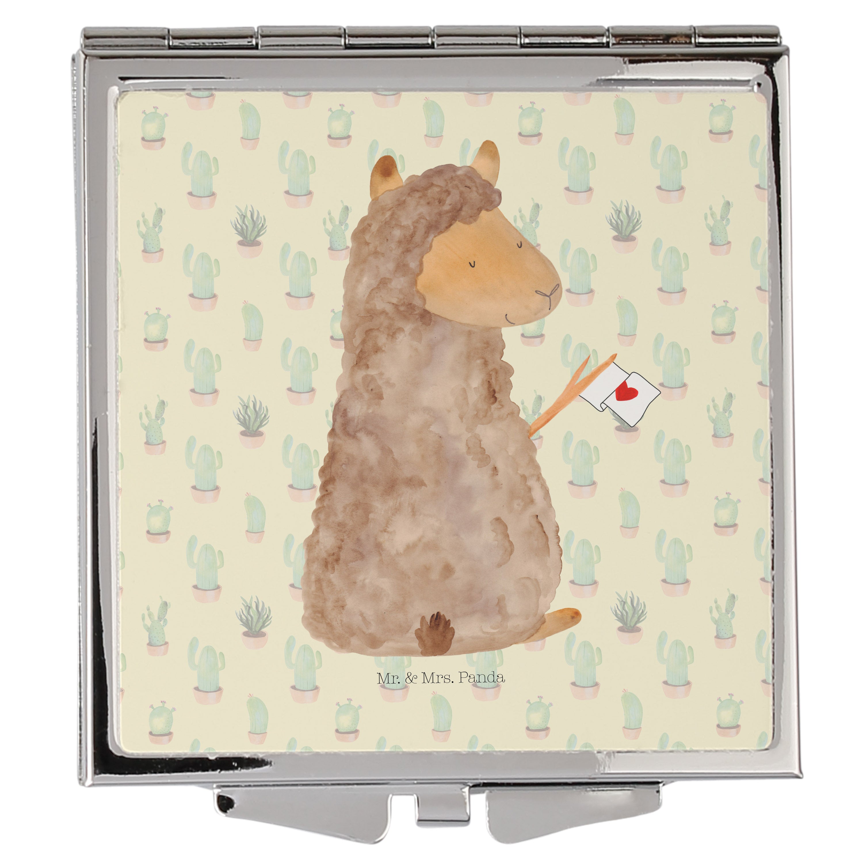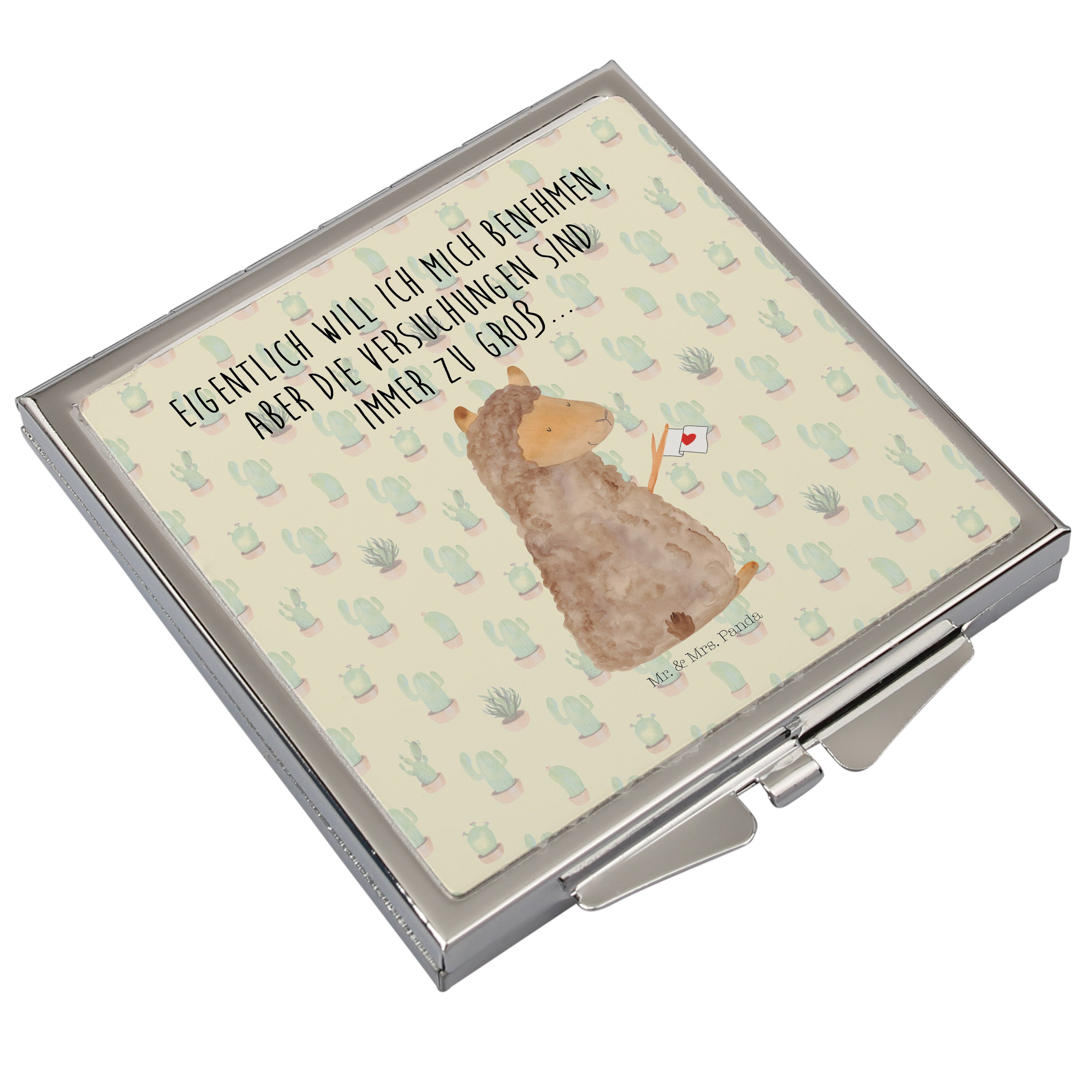 Handtaschenspiegel quadratisch Alpaka Fahne - mit Spruch - Weiß