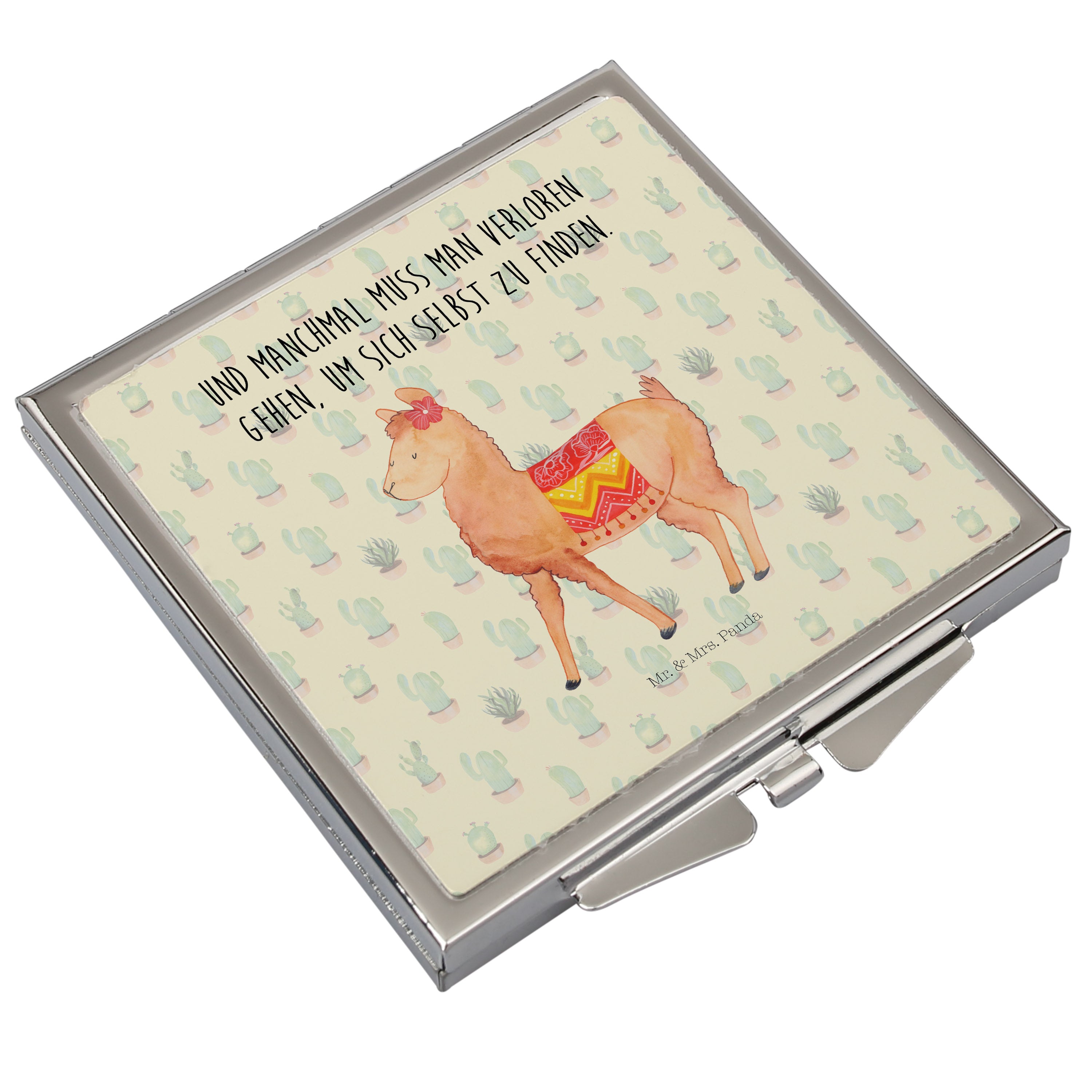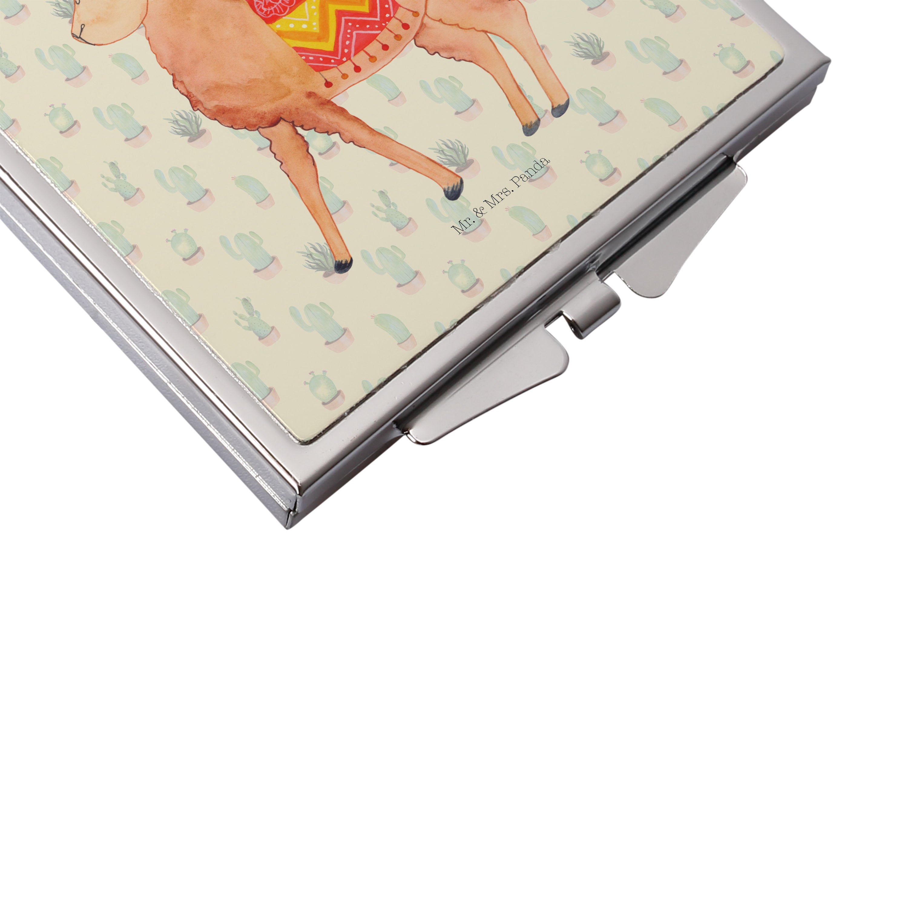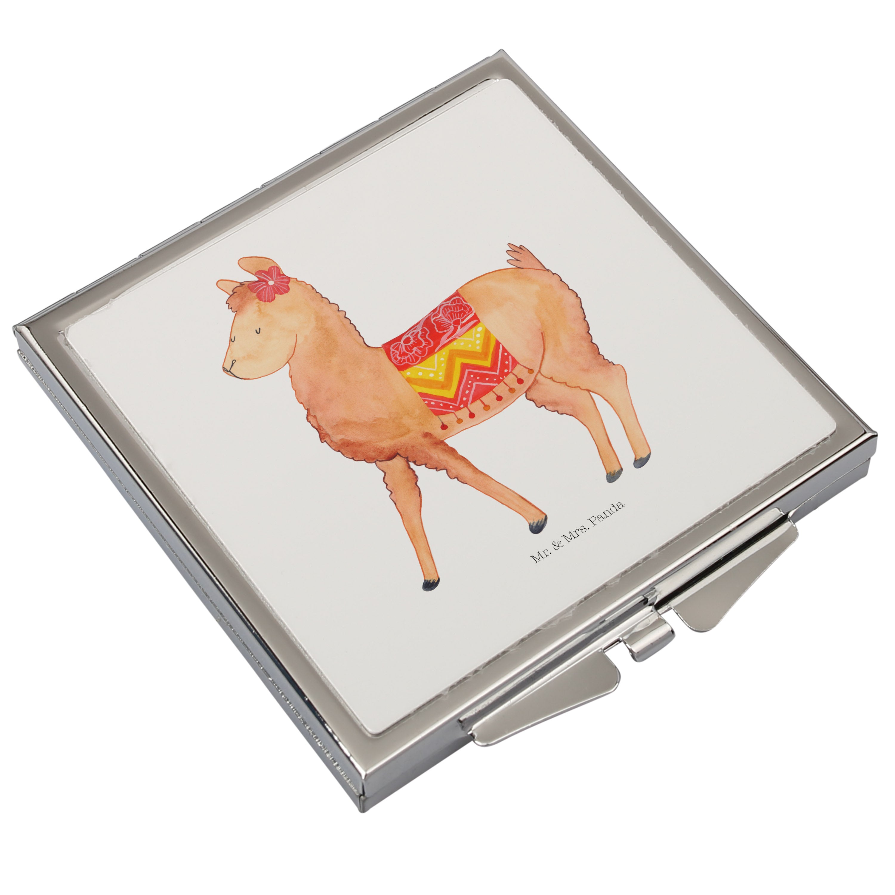 Handtaschenspiegel quadratisch Alpaka stolz Spiegel, Handtasche, Quadrat, silber, schminken, Schminkspiegel, Alpaka, Lama
