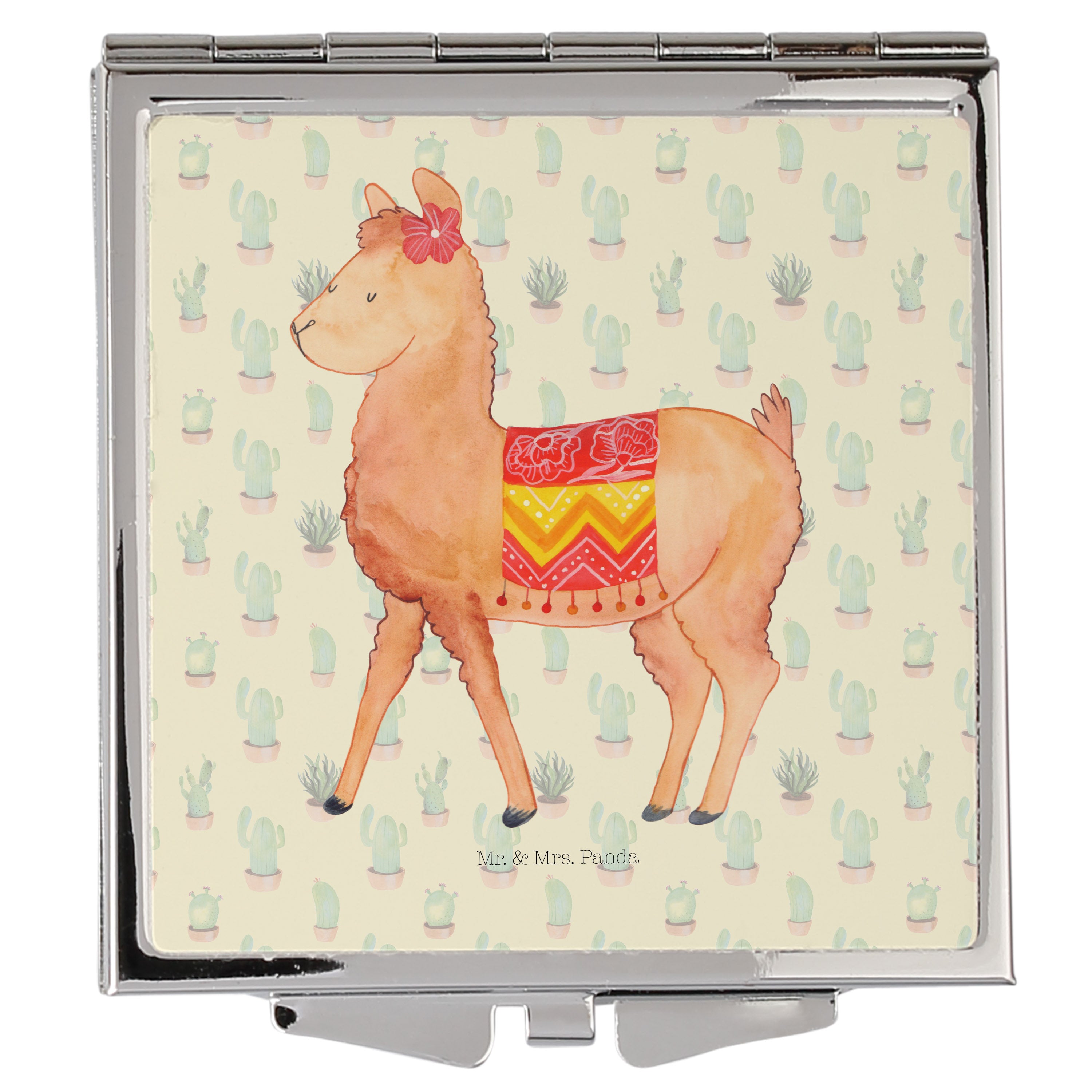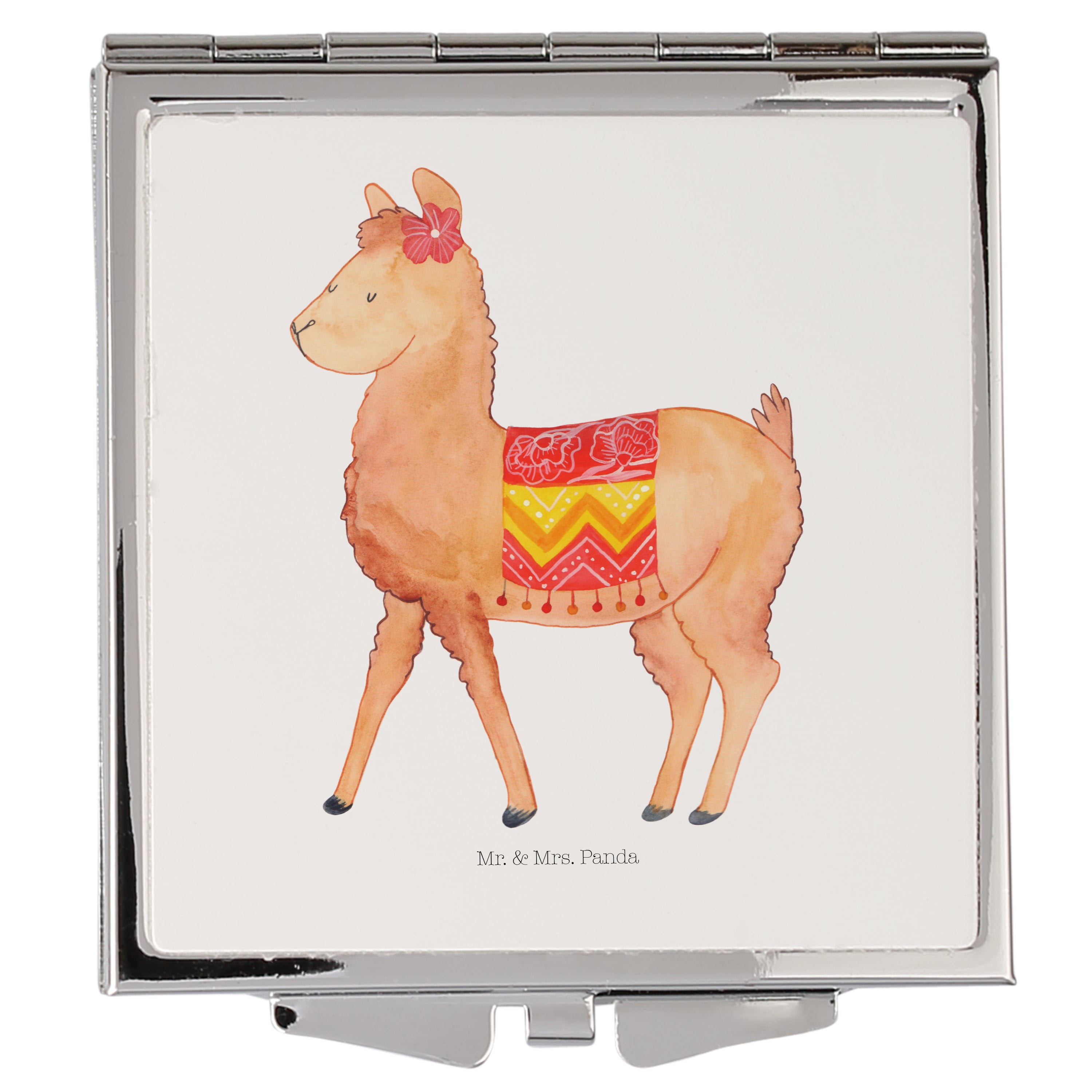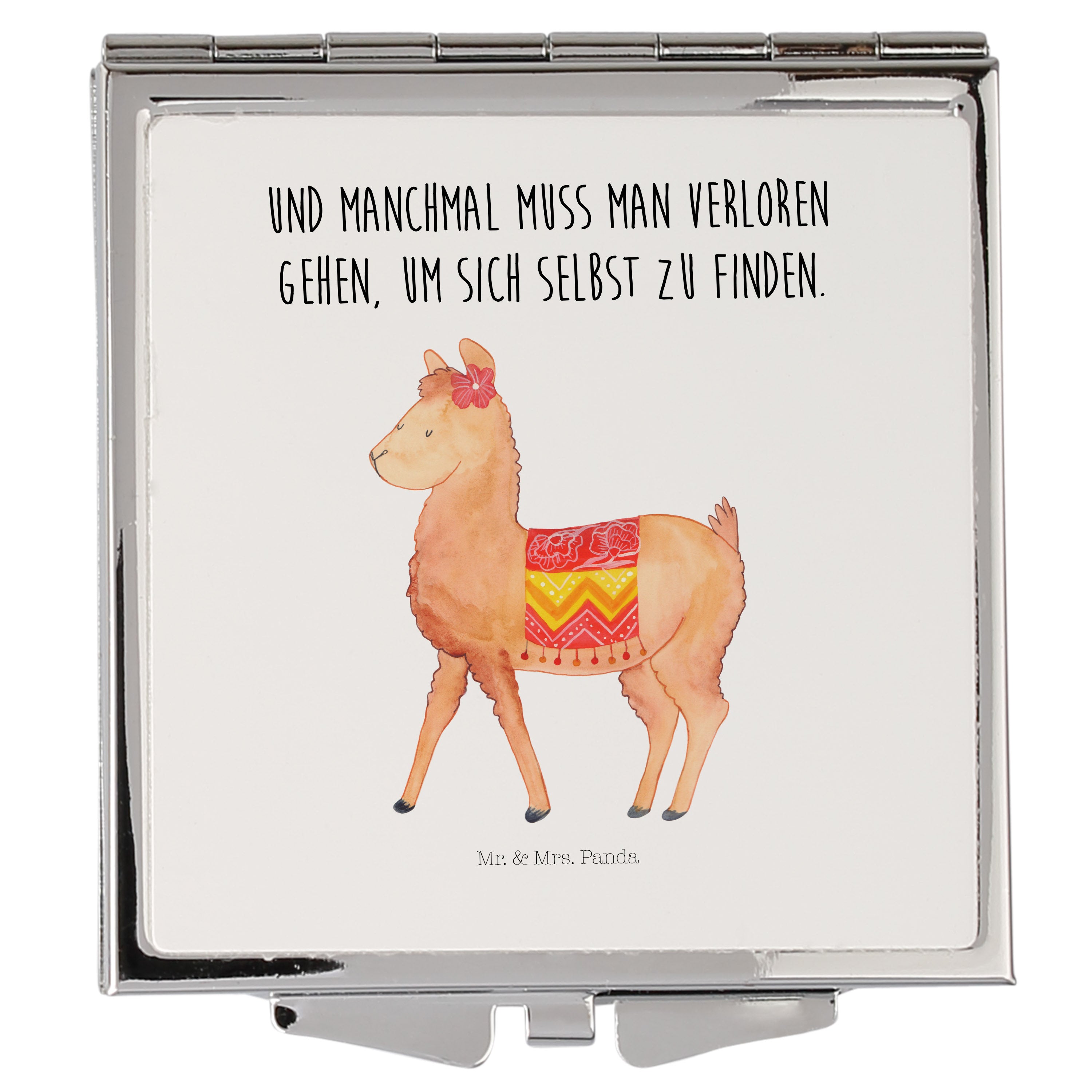 Handtaschenspiegel quadratisch Alpaka stolz Spiegel, Handtasche, Quadrat, silber, schminken, Schminkspiegel, Alpaka, Lama