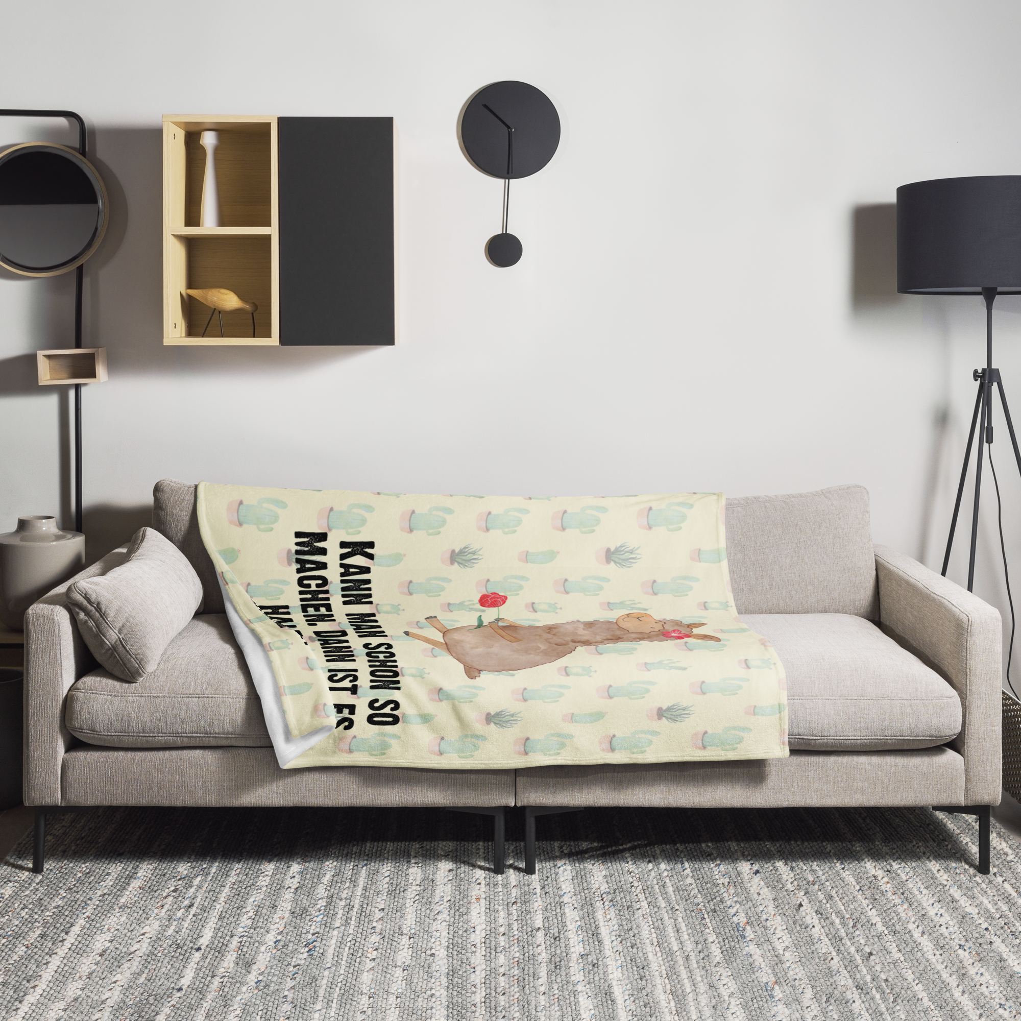 Die super flauschige Kuscheldecke von Mr. & Mrs. Panda, ist ideal für kalte Monate und Tage. Die Größe der Kuscheldecke beträgt 127 x 153 cm und ist somit perfekt, um es sich im Wohnzimmer auf dem Sofa oder im Schlafzimmer auf dem Bett gemütlich zu machen.Die Sofadecke besteht aus Kuschel Fleece Mikrofaser und ist extrem flauschig. Die fellartige Kuscheldecke schmiegt sich herrlich weich an deinen Körper und wärmt außerordentlich gut, so wirst du sicherlich nicht frieren. Die Decke zeichnet sich durch ihre hochwertige und strapazierfähige Qualität aus. Alternativ kannst du die Decke auch 140x200 cm kaufen. Sie eignet sich auch optimal als Tagesdecke für Kinder und Erwachsene.