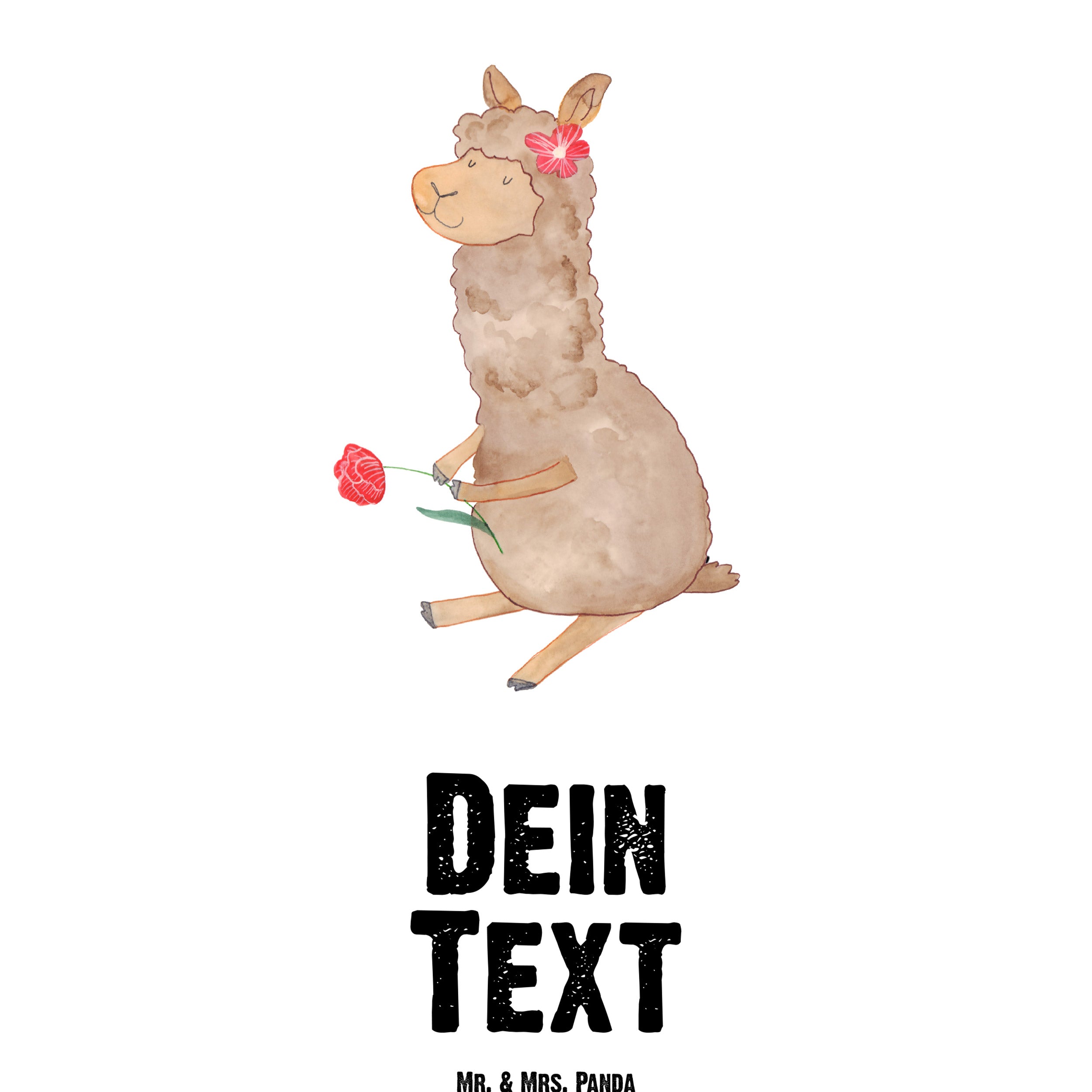 Mit dem Alpaka Blume Motiv von Mr. & Mrs. Panda hast du immer ein süßes Tier an deiner Seite. Das flauschige Alpaka mit der hübschen Blume im Haar und einer weiteren Blume in der Hand erinnert dich stets daran, die Schönheit der Natur zu genießen.