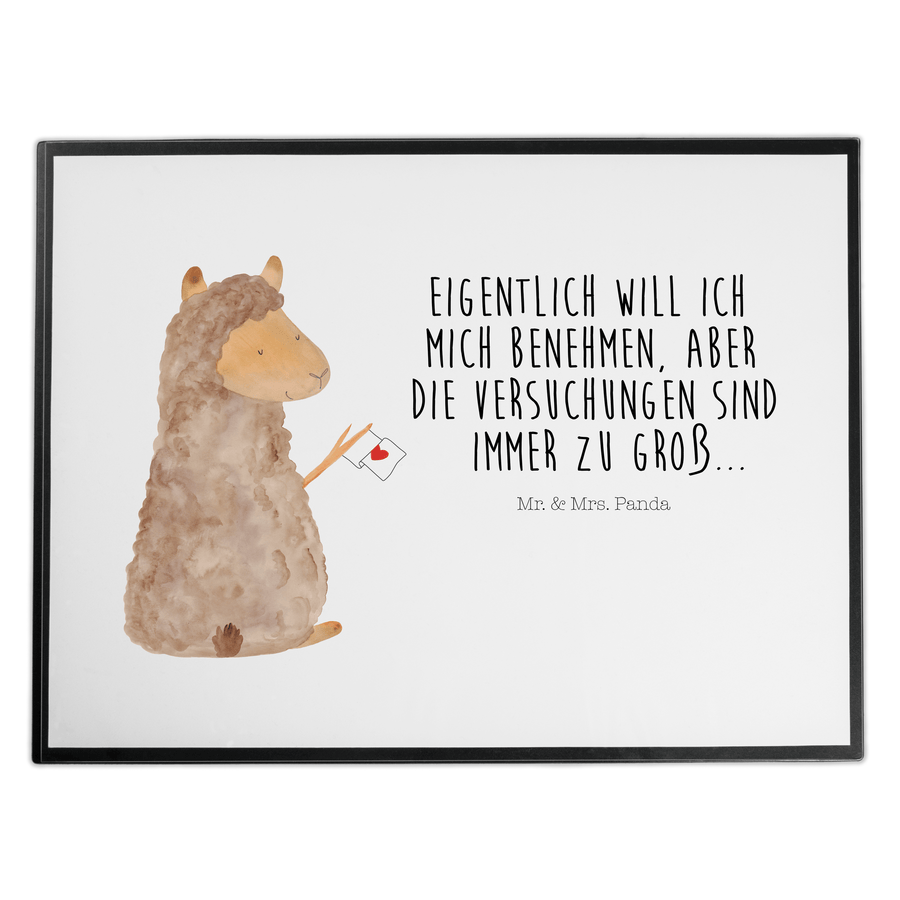 Schreibtischunterlage Alpaka Fahne - mit Spruch - Weiß